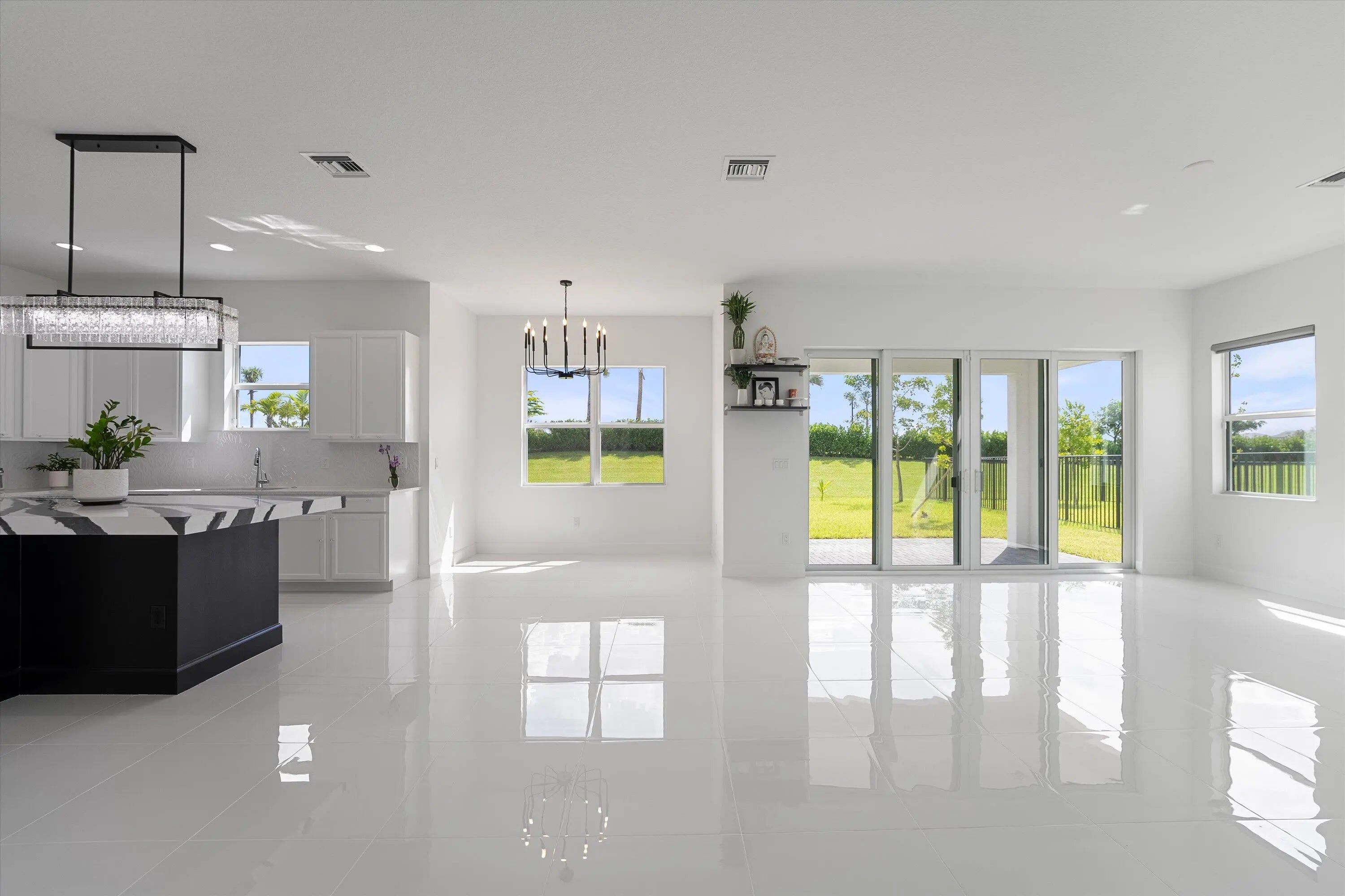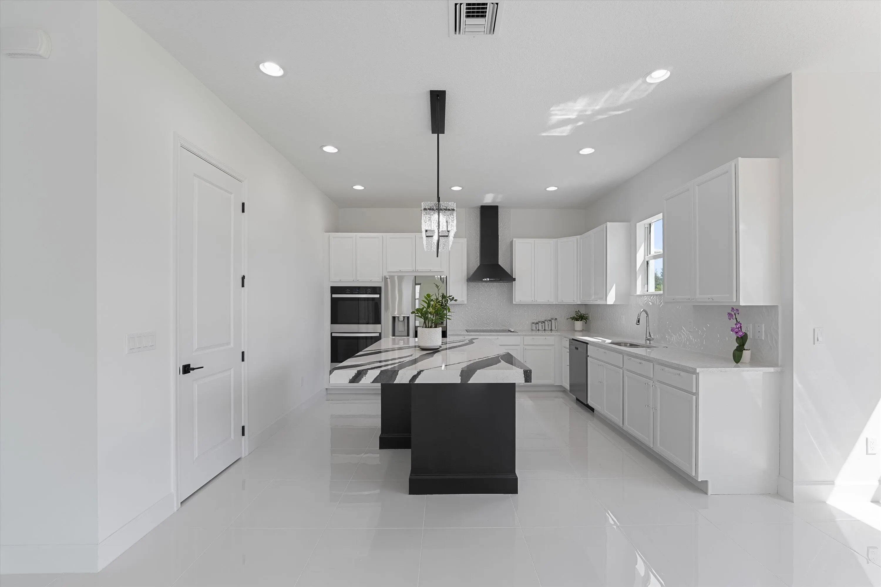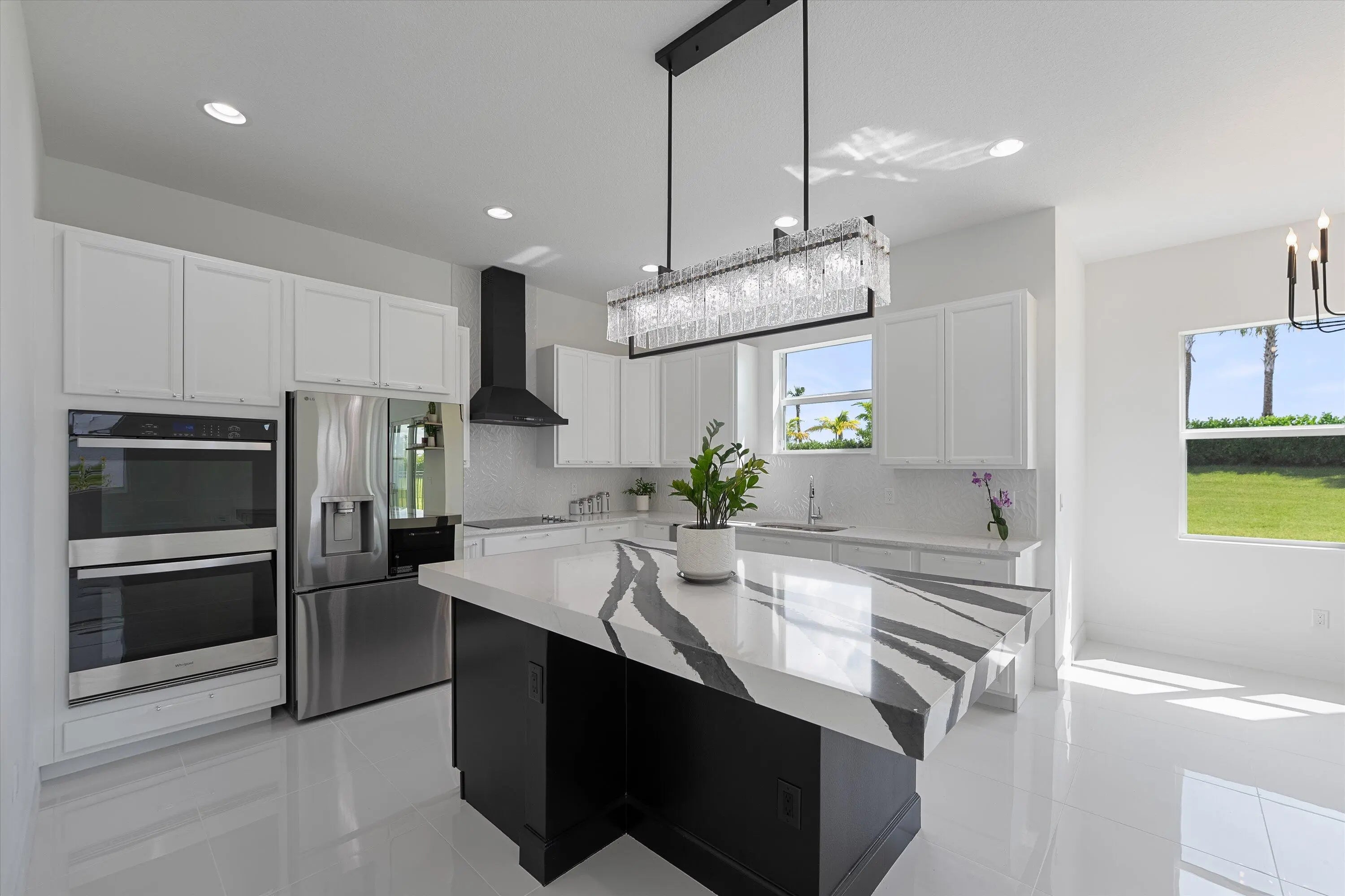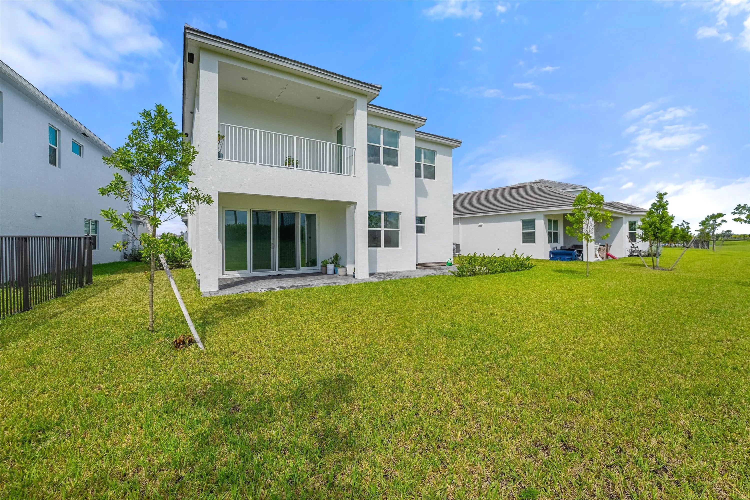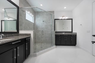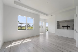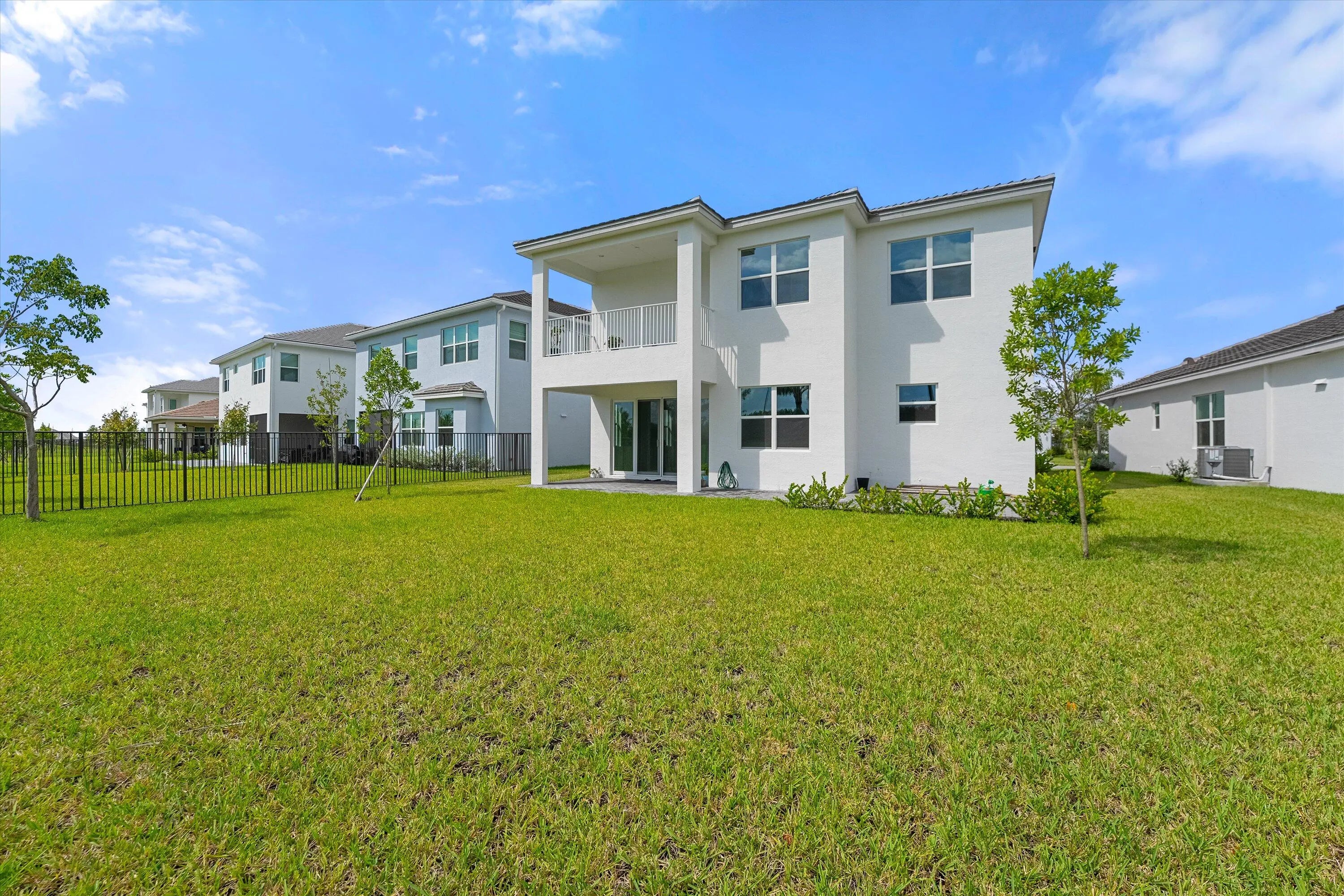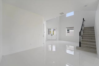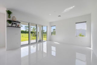 Welcome to this stunning Laurel Model two-story home with a balcony in the highly sought-after Orchards community in Westlake, Florida. With four bedrooms + Loft , three bathrooms and a three-car garage, this residence is filled with numerous upgrades and exudes a clean, modern aesthetic. As you approach the striking black double entry doors, the sense of luxury is immediate. Inside, the living area greets you with glossy white floors, soaring ceilings, and an abundance of natural light, enhancing the open and airy feel. The kitchen is a chef's dream, featuring white shaker cabinets with sleek white quartz countertops along the perimeter, a large closet pantry, and black shaker cabinets on the island for a dramatic contrast. Equipped with all-new stainless steel appliances, including a double wall oven and microwave complemented by a striking black hood, it epitomizes modern elegance. A spacious kitchen island, topped with a contemporary black and white quartz countertop, offers additional seating, while the kitchen also allows for a cozy breakfast area with a window view. The ample dining space and large family room with sliding glass doors provide seamless indoor-outdoor living, overlooking a vast backyard with extended pavers, perfect for relaxation or entertaining. Downstairs, you'll find a spacious bedroom with a walk-in closet, offering flexibility for guests or home office needs. Adjacent to this bedroom is a well-appointed full bathroom featuring black cabinets with upgraded pulls, a granite countertop with sleek silver fixtures, a beautifully framed mirror, and a seamless glass shower with elegant white tiles. Upstairs, grey wood grain ceramic tile extends throughout the entire level, leading you to a versatile loft area and the luxurious master suite. The master bedroom, with a tray ceiling, boasts a sitting area with impressive 10-foot ceilings. From the master suite, step out onto a covered balcony that overlooks the serene backyard. The master bathroom is spacious and stylish, offering dual sinks separated by a corner shower, black cabinets, sleek silver fixtures, and gray shower tiles with matching floor tiles. Its clean white tile flooring adds a touch of sophistication. Two additional bedrooms upstairs include a walk-in closet and another with a standard closet, both offering comfort and ample space. The upstairs bathroom features white shaker cabinets, gray granite countertops with black pulls, silver fixtures, and a white framed mirror, with a separate tub and toilet room. The shower is beautifully tiled in a horizontal pattern, with a clean white tile floor. The conveniently located laundry room includes brown shaker cabinets, granite countertops, and an upgraded washer and dryer. Experience the perfect blend of modern design and comfortable living in this exceptional rental home.