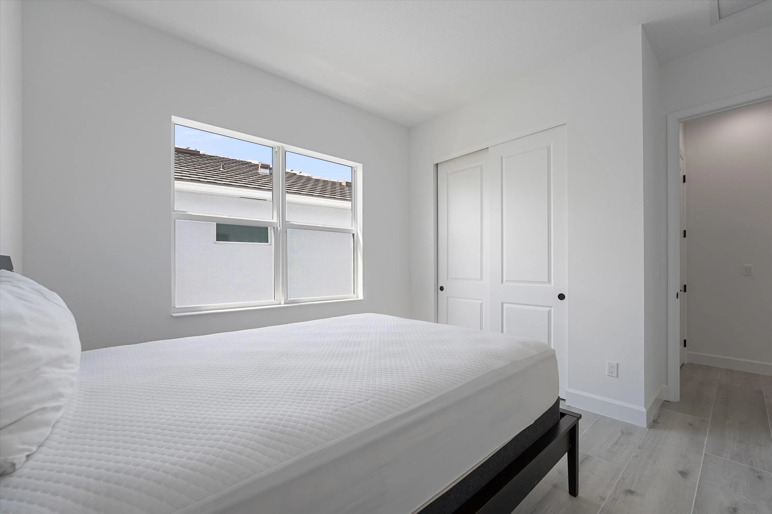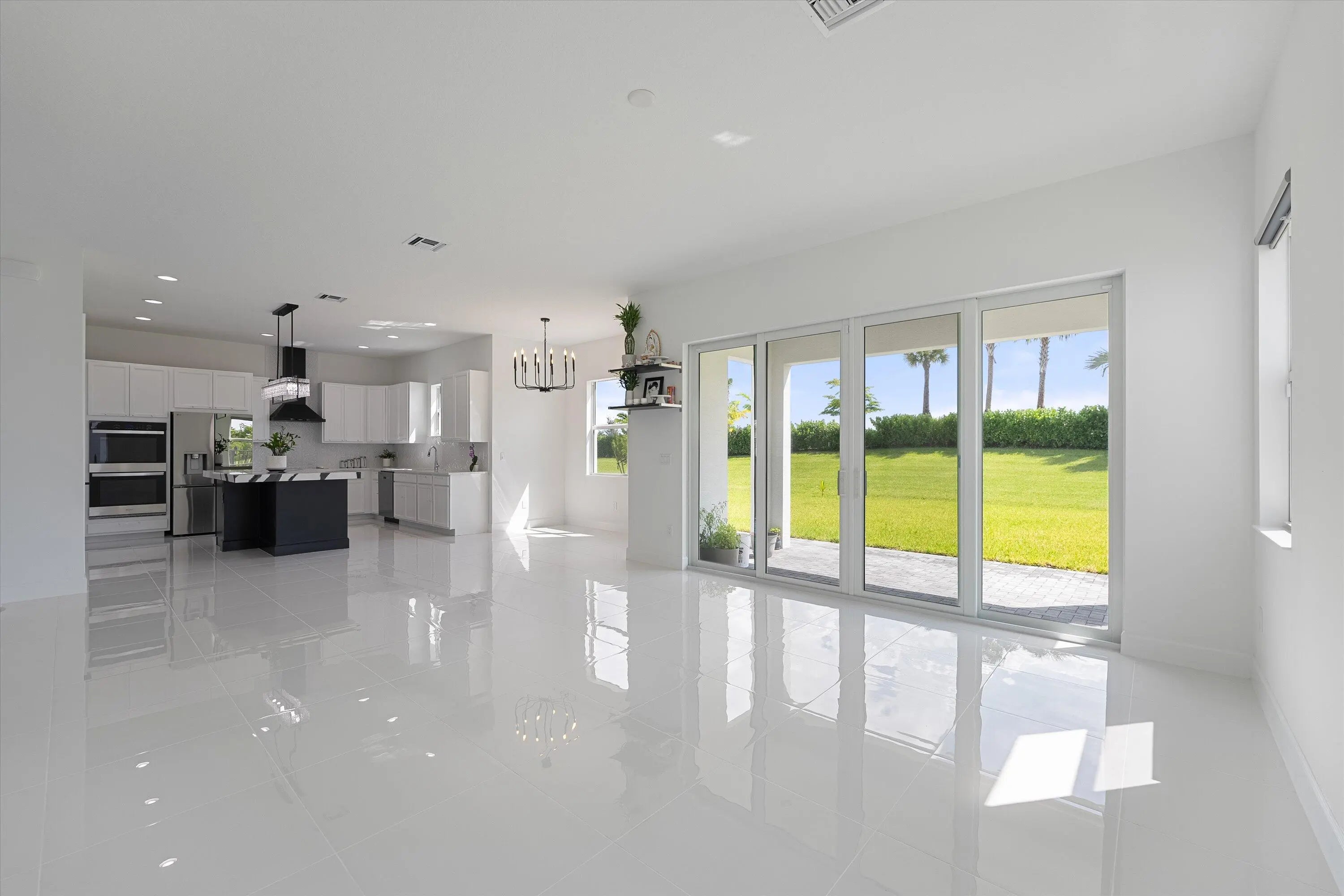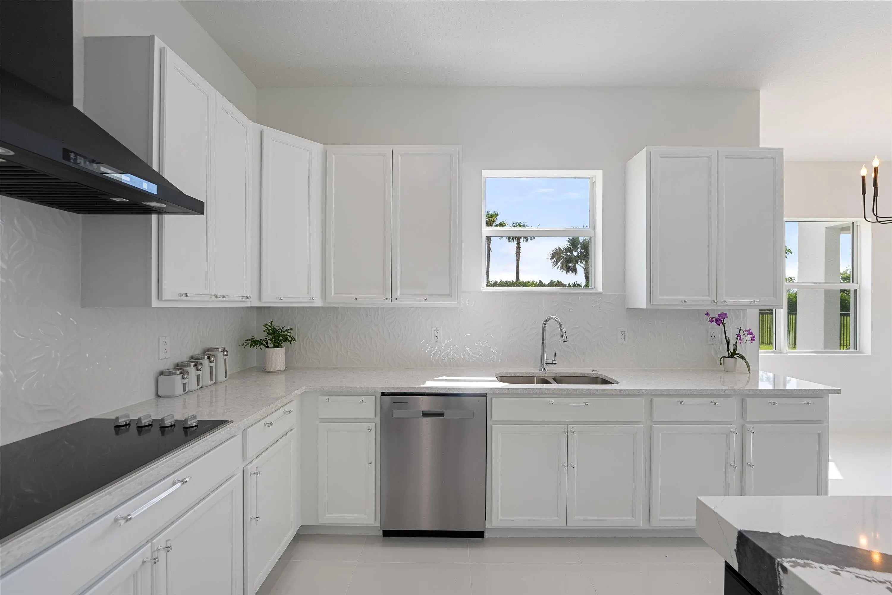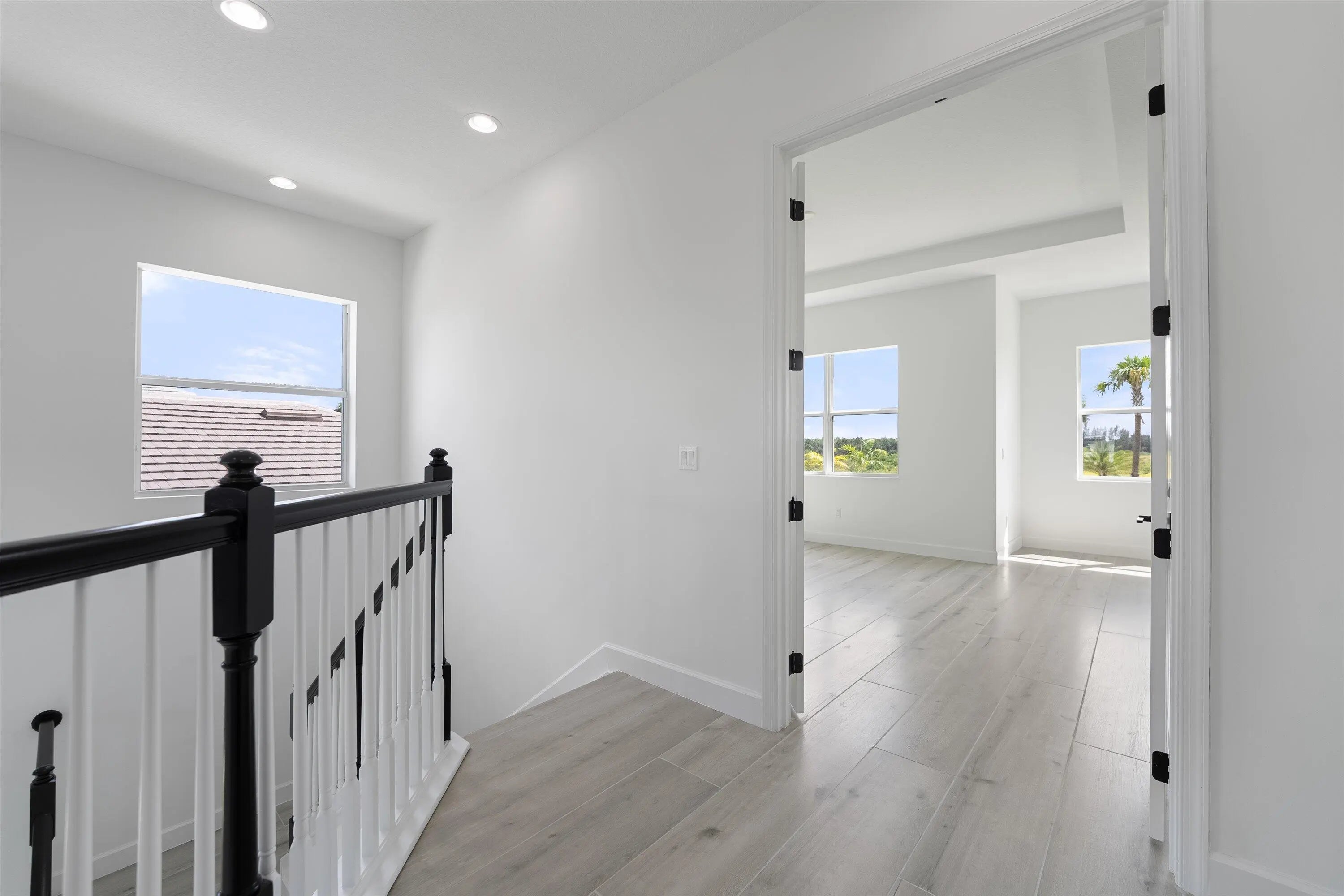 Welcome to this stunning Laurel Model two-story home with a balcony in the highly sought-after Orchards community in Westlake, Florida. With four bedrooms + Loft , three bathrooms and a three-car garage, this residence is filled with numerous upgrades and exudes a clean, modern aesthetic. As you approach the striking black double entry doors, the sense of luxury is immediate. Inside, the living area greets you with glossy white floors, soaring ceilings, and an abundance of natural light, enhancing the open and airy feel. The kitchen is a chef's dream, featuring white shaker cabinets with sleek white quartz countertops along the perimeter, a large closet pantry, and black shaker cabinets on the island for a dramatic contrast. Equipped with all-new stainless steel appliances, including a double wall oven and microwave complemented by a striking black hood, it epitomizes modern elegance. A spacious kitchen island, topped with a contemporary black and white quartz countertop, offers additional seating, while the kitchen also allows for a cozy breakfast area with a window view. The ample dining space and large family room with sliding glass doors provide seamless indoor-outdoor living, overlooking a vast backyard with extended pavers, perfect for relaxation or entertaining. Downstairs, you'll find a spacious bedroom with a walk-in closet, offering flexibility for guests or home office needs. Adjacent to this bedroom is a well-appointed full bathroom featuring black cabinets with upgraded pulls, a granite countertop with sleek silver fixtures, a beautifully framed mirror, and a seamless glass shower with elegant white tiles. Upstairs, grey wood grain ceramic tile extends throughout the entire level, leading you to a versatile loft area and the luxurious master suite. The master bedroom, with a tray ceiling, boasts a sitting area with impressive 10-foot ceilings. From the master suite, step out onto a covered balcony that overlooks the serene backyard. The master bathroom is spacious and stylish, offering dual sinks separated by a corner shower, black cabinets, sleek silver fixtures, and gray shower tiles with matching floor tiles. Its clean white tile flooring adds a touch of sophistication. Two additional bedrooms upstairs include a walk-in closet and another with a standard closet, both offering comfort and ample space. The upstairs bathroom features white shaker cabinets, gray granite countertops with black pulls, silver fixtures, and a white framed mirror, with a separate tub and toilet room. The shower is beautifully tiled in a horizontal pattern, with a clean white tile floor. The conveniently located laundry room includes brown shaker cabinets, granite countertops, and an upgraded washer and dryer. Experience the perfect blend of modern design and comfortable living in this exceptional rental home.