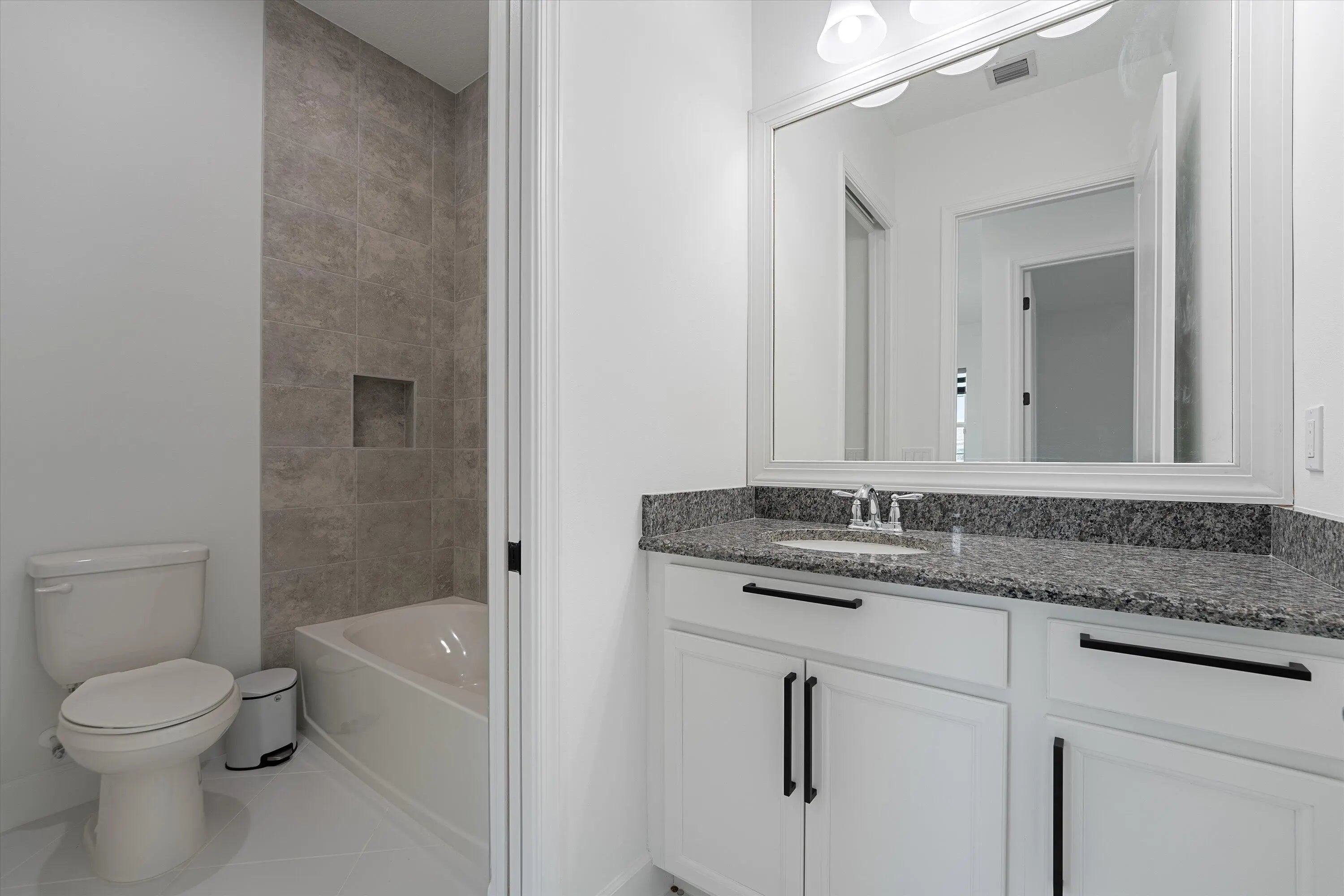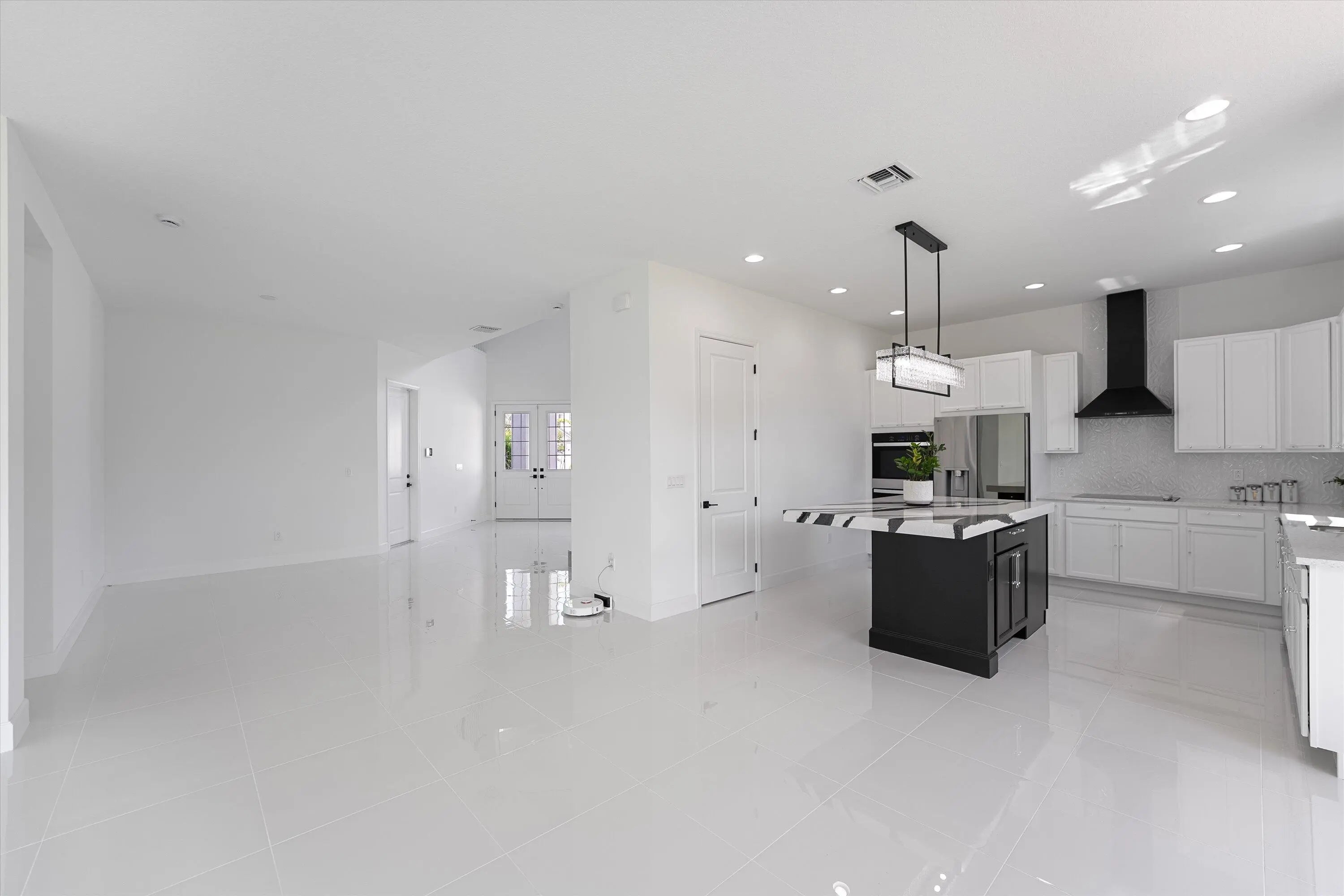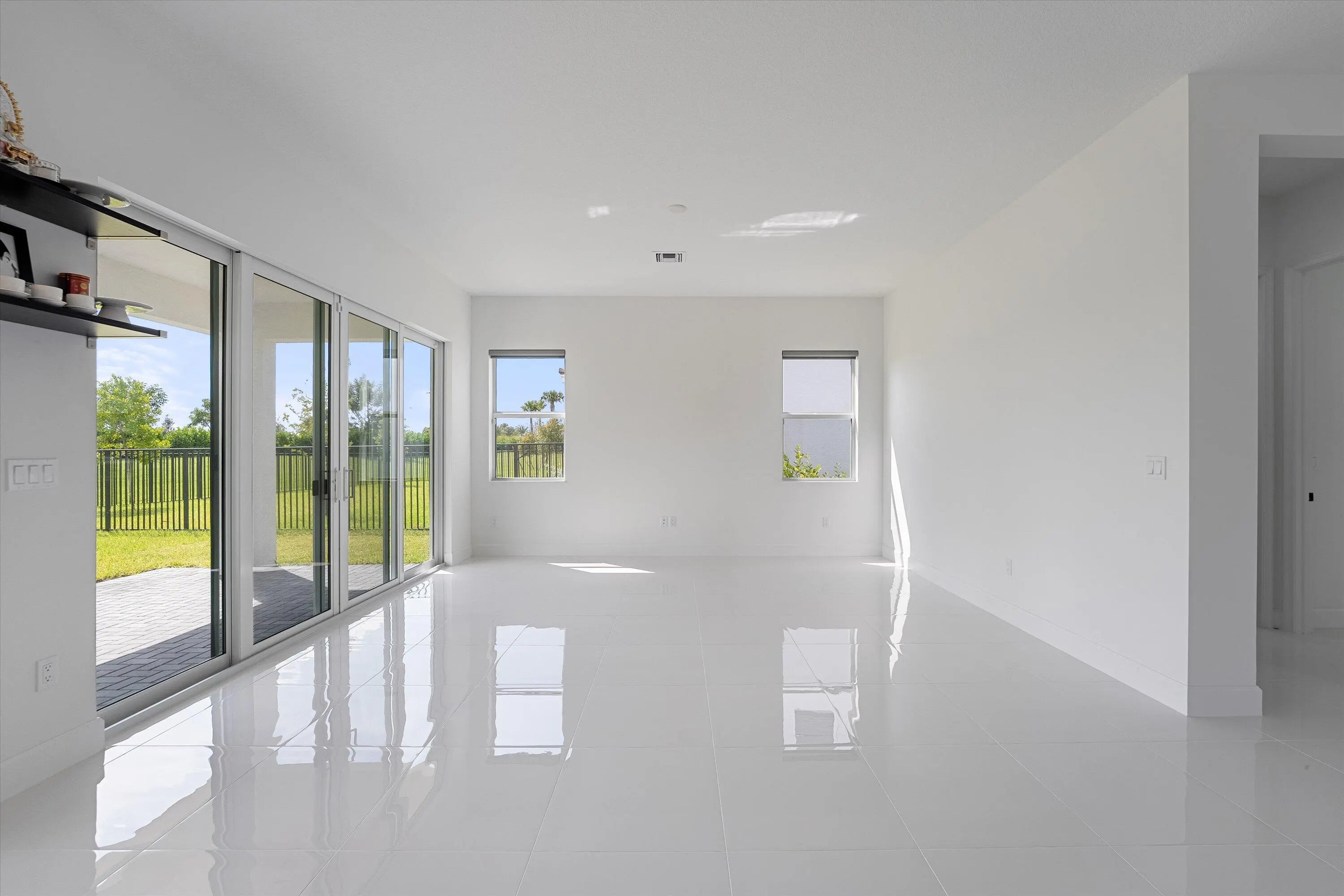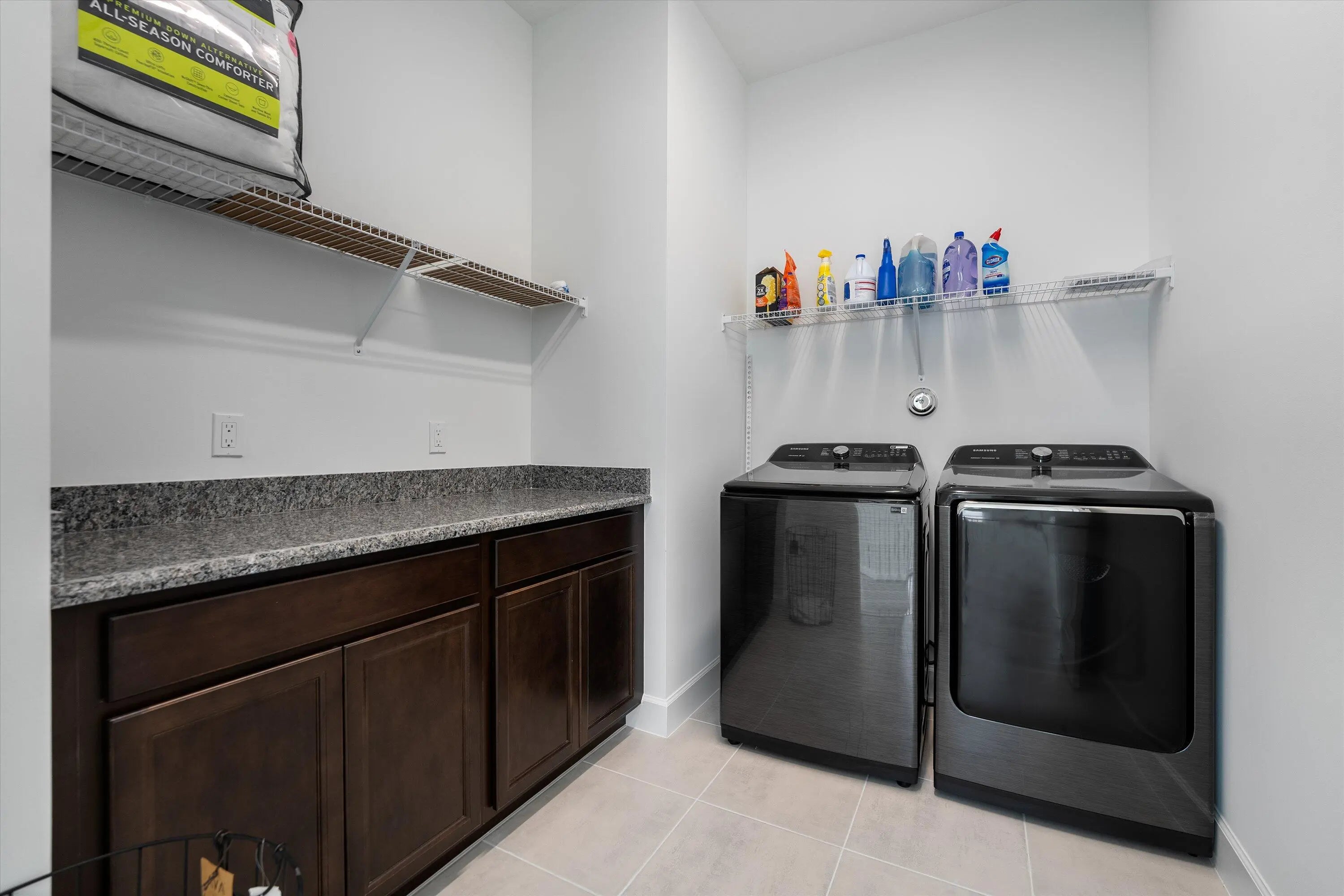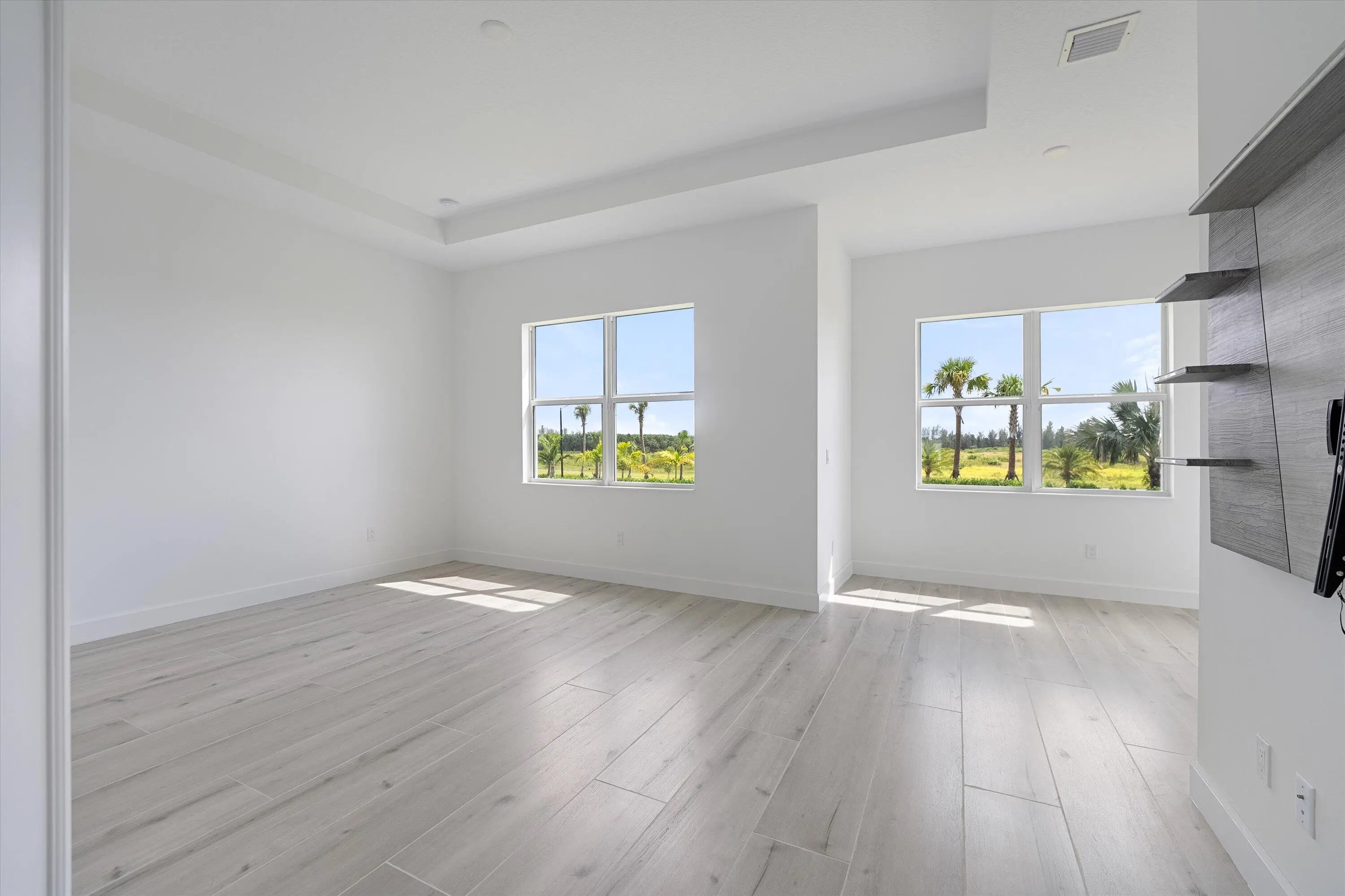 Welcome to this stunning Laurel Model two-story home with a balcony in the highly sought-after Orchards community in Westlake, Florida. With four bedrooms + Loft , three bathrooms and a three-car garage, this residence is filled with numerous upgrades and exudes a clean, modern aesthetic. As you approach the striking black double entry doors, the sense of luxury is immediate. Inside, the living area greets you with glossy white floors, soaring ceilings, and an abundance of natural light, enhancing the open and airy feel. The kitchen is a chef's dream, featuring white shaker cabinets with sleek white quartz countertops along the perimeter, a large closet pantry, and black shaker cabinets on the island for a dramatic contrast. Equipped with all-new stainless steel appliances, including a double wall oven and microwave complemented by a striking black hood, it epitomizes modern elegance. A spacious kitchen island, topped with a contemporary black and white quartz countertop, offers additional seating, while the kitchen also allows for a cozy breakfast area with a window view. The ample dining space and large family room with sliding glass doors provide seamless indoor-outdoor living, overlooking a vast backyard with extended pavers, perfect for relaxation or entertaining. Downstairs, you'll find a spacious bedroom with a walk-in closet, offering flexibility for guests or home office needs. Adjacent to this bedroom is a well-appointed full bathroom featuring black cabinets with upgraded pulls, a granite countertop with sleek silver fixtures, a beautifully framed mirror, and a seamless glass shower with elegant white tiles. Upstairs, grey wood grain ceramic tile extends throughout the entire level, leading you to a versatile loft area and the luxurious master suite. The master bedroom, with a tray ceiling, boasts a sitting area with impressive 10-foot ceilings. From the master suite, step out onto a covered balcony that overlooks the serene backyard. The master bathroom is spacious and stylish, offering dual sinks separated by a corner shower, black cabinets, sleek silver fixtures, and gray shower tiles with matching floor tiles. Its clean white tile flooring adds a touch of sophistication. Two additional bedrooms upstairs include a walk-in closet and another with a standard closet, both offering comfort and ample space. The upstairs bathroom features white shaker cabinets, gray granite countertops with black pulls, silver fixtures, and a white framed mirror, with a separate tub and toilet room. The shower is beautifully tiled in a horizontal pattern, with a clean white tile floor. The conveniently located laundry room includes brown shaker cabinets, granite countertops, and an upgraded washer and dryer. Experience the perfect blend of modern design and comfortable living in this exceptional rental home.