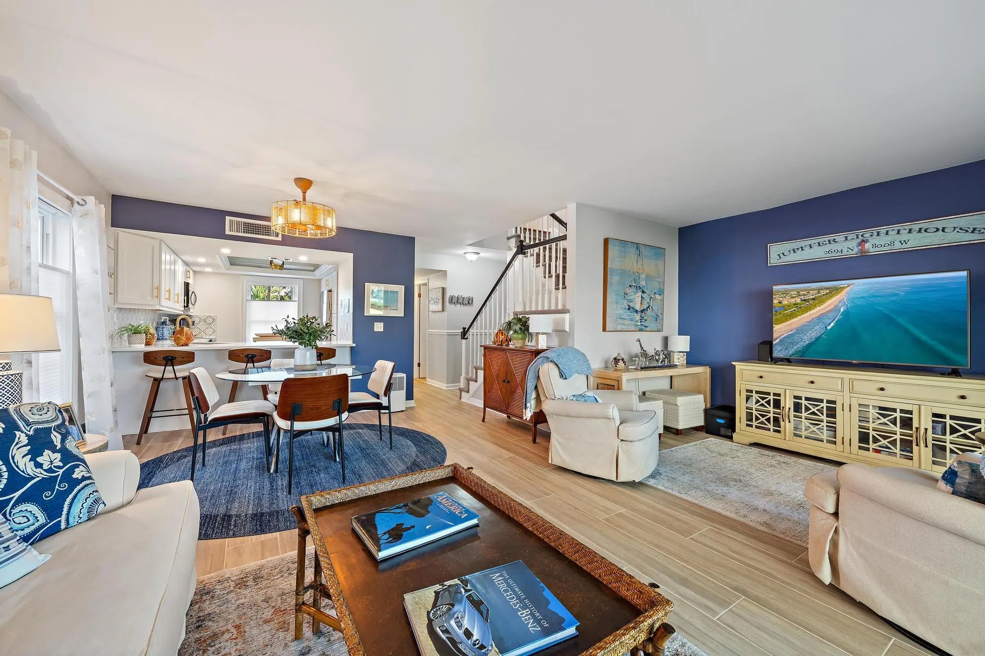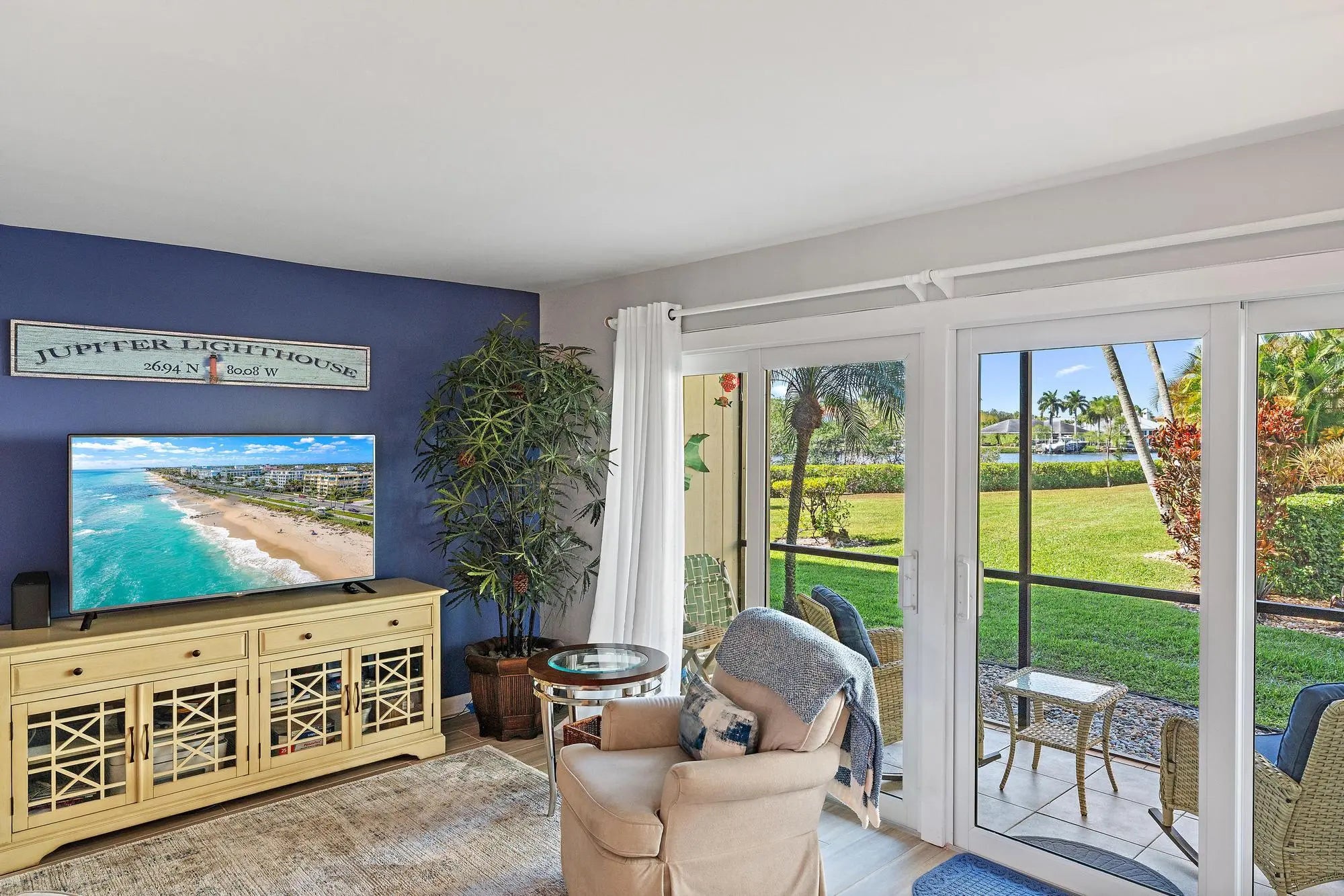 Looking for the perfect 6 month furnished rental in Jupiter? YOU FOUND IT! Welcome to 9170 SE Riverfront Terrace Unit H in Jupiter, FL! This STUNNING and just REMODELED two-story 2-bedroom, 2.5-bathroom condo has over 1,200 square feet and is situated in the prestigious Riverbend Country Club. Boasting IMPACT sliders, stainless steel appliances and breathtaking views of the Loxahatchee River. As you step inside, you'll be immediately struck by the spaciousness and overload of natural light! Continue into your new home, you have a half bath to your left and to your right you have a GORGEOUS renovated kitchen. The kitchen also features ample storage throughout, and a passthrough window where you can see through to your dining and living areas and out to one of your two screened-in patios. Your beautiful outdoor space provides a tranquil and serene living environment overlooking the beautiful blue water from the Loxahatchee River and is the perfect place to enjoy your morning cup of coffee or a glass of wine at the end of the day. Head upstairs to find the primary suite, guest bedroom and second full bathroom. Your LARGE primary suite offers TWO large closets, a generous sized and newly remodeled ensuite with a built-in vanity and a bath/shower combo, as well as a PRIVATE screened-in balcony overlooking lush greenery and the beautiful blue water. The guest bedroom is generously sized offering a sufficient amount of storage and letting in an abundant amount of natural light. As a tenant of Riverbend Country Club, you'll also have access to a variety of luxury amenities, including a golf course, tennis courts, pool, library, community room and much more! Located just a short drive from world-class dining, shopping, and entertainment in Jupiter and Palm Beach Gardens, this condo is perfectly situated for upscale living in one of South Florida's most sought-after locations. This TURN-KEY unit is ready for its new tenant and is being offered fully-furnished and available May-October. Don't miss out on this incredible opportunity to enjoy the upscale living environment of Riverbend Country Club.