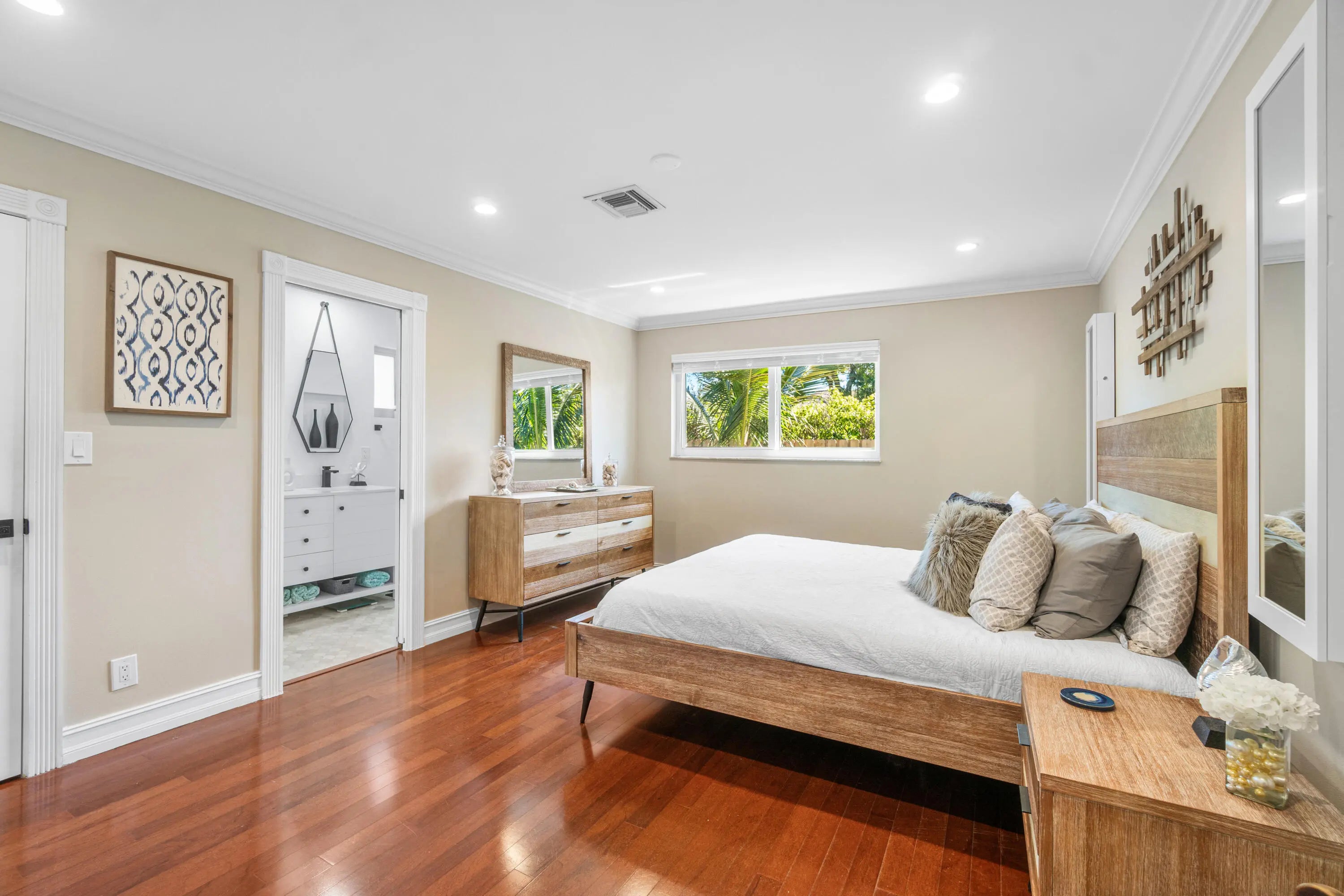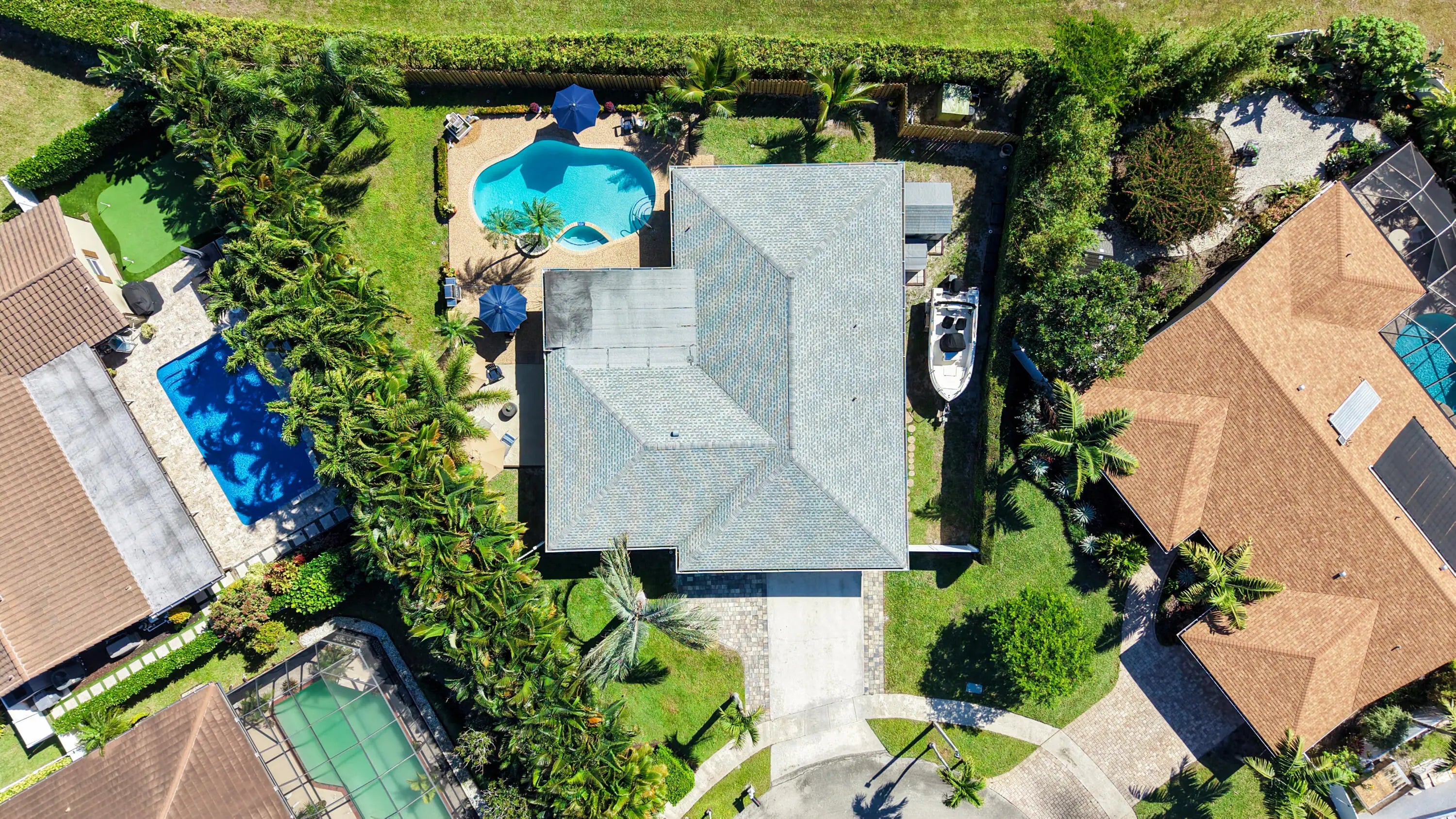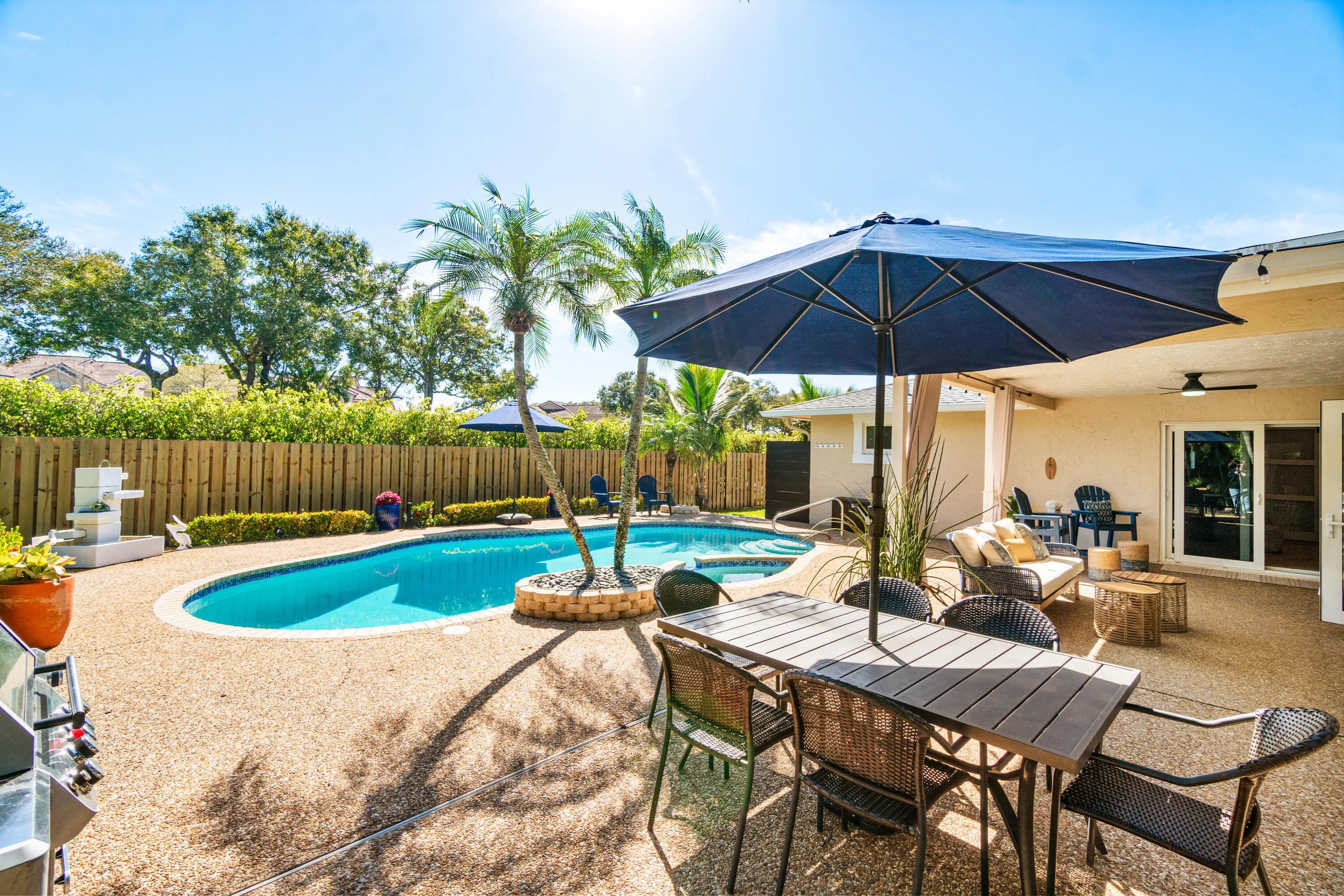 True indoor/outdoor living awaits! 6094 Royal Lytham is a rare opportunity to own a very private single-family home in this highly sought-after Central Boca community, ideally situated at the end of a cul-de-sac on an oversized lot. This prime location is within walking distance to The Village Shops, featuring eight full-service restaurants, hair and nail salons, a bagel shop, ice cream and yogurt shops, pizza, dry cleaners, a daycare center, and more. Just outside your gate, enjoy walking and biking paths that wind around the community's lakes and green spaces. Meticulously maintained by the same owner for 30 years, this home has been completely renovated. Pride of ownership is evident throughout, with recent upgrades including new ; a new kitchen with quartz countertops and 36" cabinets; complete impact windows and doors; new appliances; upgraded handles and pulls; a new primary bathroom; single-panel interior doors with black hardware and a barn door; LED lighting with dimmers; an upgraded GE front-loading washer and dryer; new fencing; and a Nest thermostat. The oversized two-car garage features a new epoxy floor, new garage door opener, a hurricane-rated insulated garage door with a large window, a separate A/C unit, and an upgraded electrical panel. Outside, enjoy a newly renovated pool and spa surrounded by mature, lush tropical landscaping and accent lighting, creating a true resort-style private oasis. A double-wide gate offers ample space for all your toys. Conveniently located just minutes from Town Center Mall, I-95, the Turnpike, Boca's beautiful beaches, Mizner Park, and Downtown Boca. This NO HOA home is Zoned for A-rated schools, including Verde Elementary and Middle School and Boca Raton High School. Don't miss this rare opportunity to own a turnkey home in an exceptional locationhomes with these features at this price point are truly hard to find.