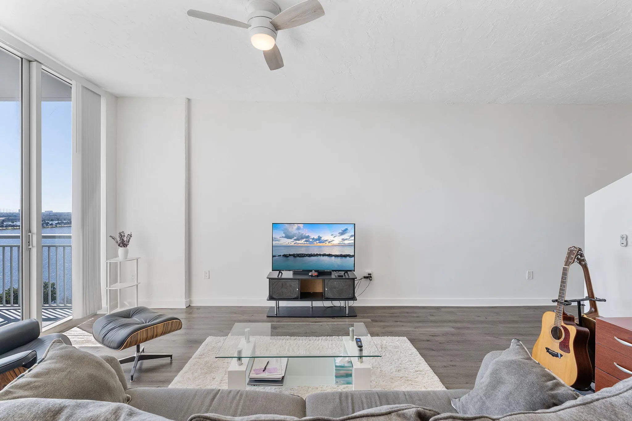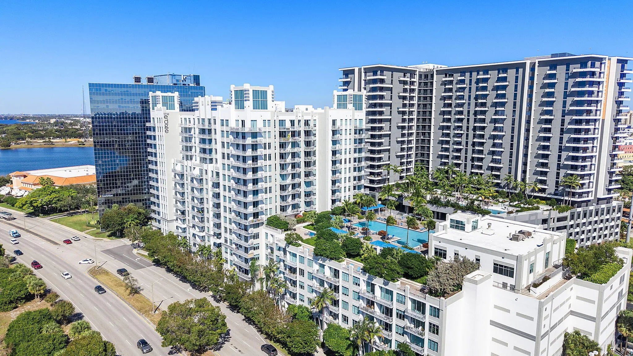 Discover the height of urban coastal elegance in this breathtaking high-rise residence, which boasts spectacular views of the Intracoastal Waterway and the city skyline. This meticulously maintained home combines style and functionality, featuring impressive floor-to-ceiling windows, stylish wide-plank flooring, and a spacious private balcony that overlooks a tropical resort-style oasis.