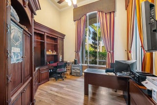 Set within the exclusive, gated club community of Breakers West—one of Palm Beach County's most prestigious private enclaves—this property embodies prestige, privilege, and privacy. Residents can enjoy a refined, low-density lifestyle anchored by 2 Championship designed gold golf courses, an elegant clubhouse, fine dining, tennis, fitness, and a highly social private-club atmosphere, available through a Sports & Social membership. Renowned for its manicured grounds, privacy, and understated luxury, Breakers West offers the Palm Beach lifestyle just minutes from the island, world-class beaches, Worth Avenue, private aviation, and Palm Beach International Airport—delivering exceptional value at this level. Located in the coveted Estate Section, 1811 Breakers West Court is tucked away on a quiet cul-de-sac and sits on one of the largest lots in the entire community approximately 0.85 acres where luxury living is framed by sweeping golf course views and complete privacy. This impeccably maintained one-story residence offers four en-suite bedrooms, a large custom-built private office, soaring ceilings, and exceptional natural light, creating an effortless flow ideal for both everyday living and elegant entertaining. In addition to the four suites, the home also features a well-appointed powder room. Members enjoy the privileges associated with access to The Breakers Hotel. The home has been thoughtfully updated throughout, reflecting hundreds of thousands of dollars in renovations, beginning with a fully remodeled chef's kitchen featuring all-new Thermador appliances, a dramatic marble center island, custom cabinetry, marble countertops, and premium water filtration. Living areas are enhanced by custom built-ins and a statement chandelier, while the oversized primary suite provides a true retreat with serene views and spa-like comfort. Outdoor living is a standout, featuring a heated saltwater pool and spa-one of the largest pools in the enclave-a screened enclosure, electric patio partitions, a newly updated pool deck with artificial turf, and expansive grounds ideal for entertaining or relaxation. Along the side of the home, a private dog park and training area offers a rare, thoughtfully designed space for pets, while golf course views remain unobstructed and privacy is exceptional throughout. Additional features include a three-car garage plus golf cart space, upgraded to a true car-enthusiast's standard with a professionally installed resin floor, custom cabinetry, a dedicated workbench, and pre-wiring for an electric vehicle charger; a whole-house Kohler generator (2022); select impact windows, with the remainder of the home protected by accordion hurricane shutters; an Italian-made reinforced entry door; whole-home potable water filtration; electric window shades; smart irrigation; a new roof (2020); refreshed exterior paint; and recent driveway upgrades. This is a rare opportunity to own a move-in-ready estate home in one of West Palm Beach's most sought-after gated communities offering space, security, refined luxury, and the Palm Beach lifestyle at a compelling value.