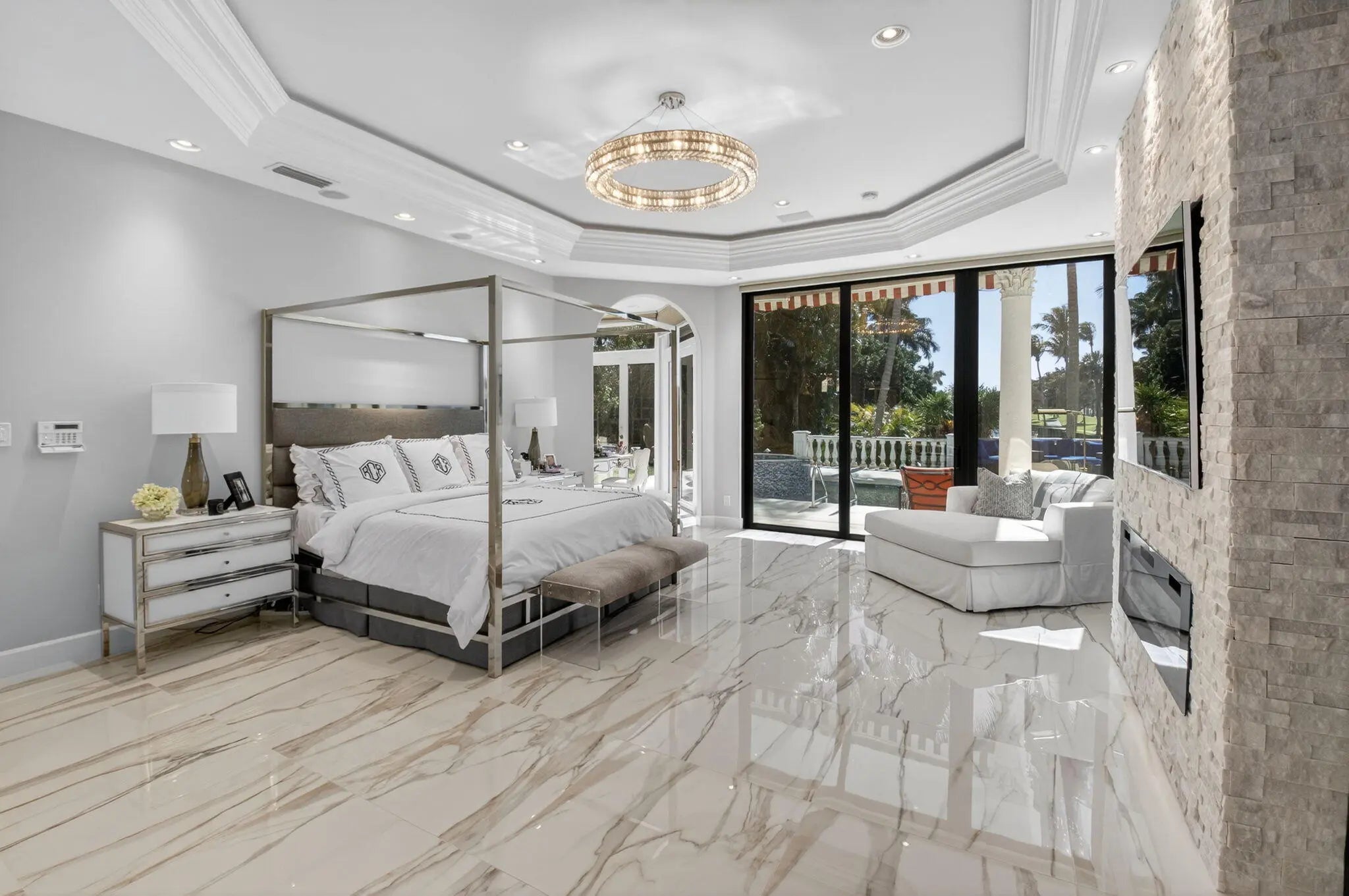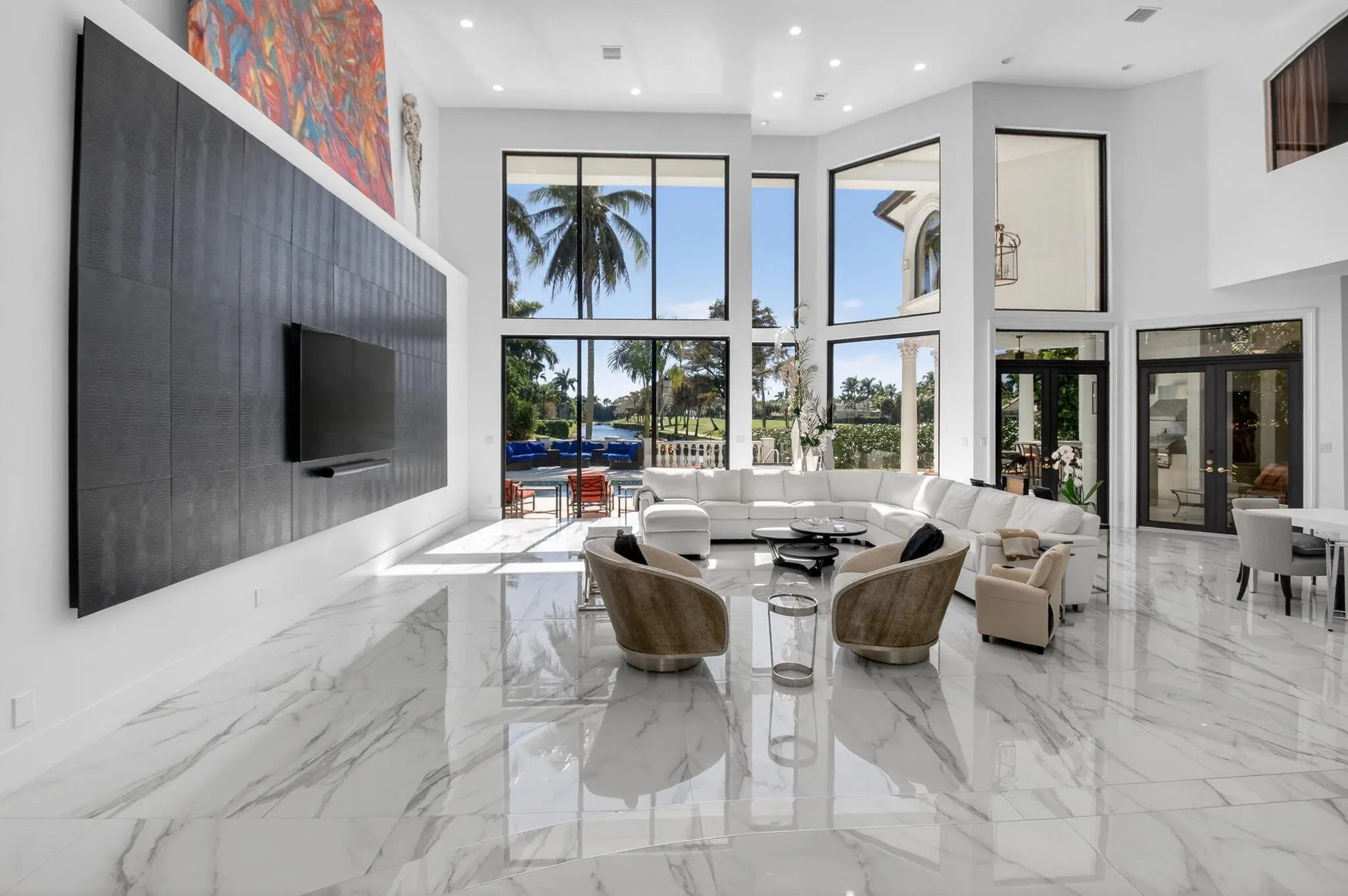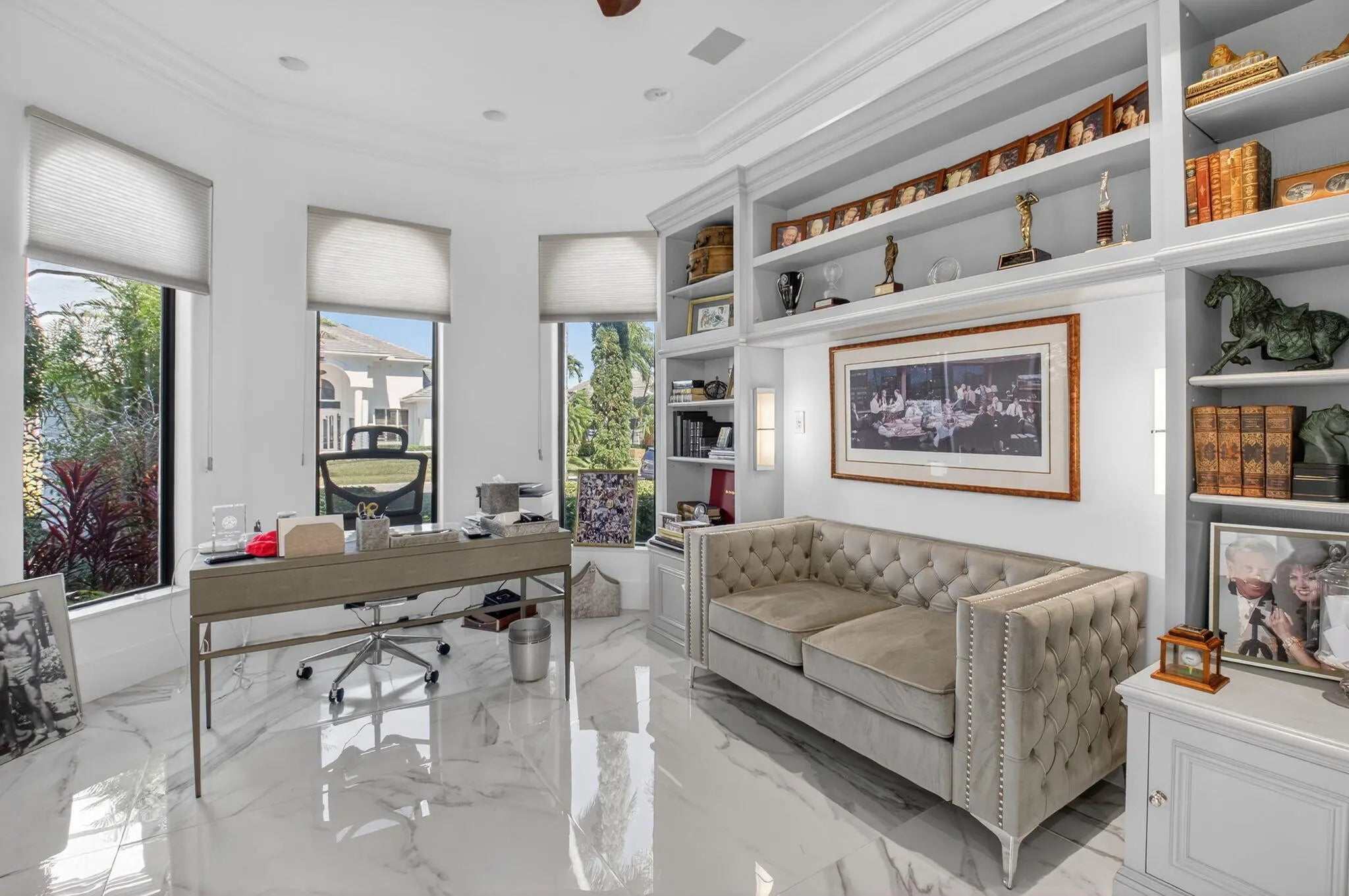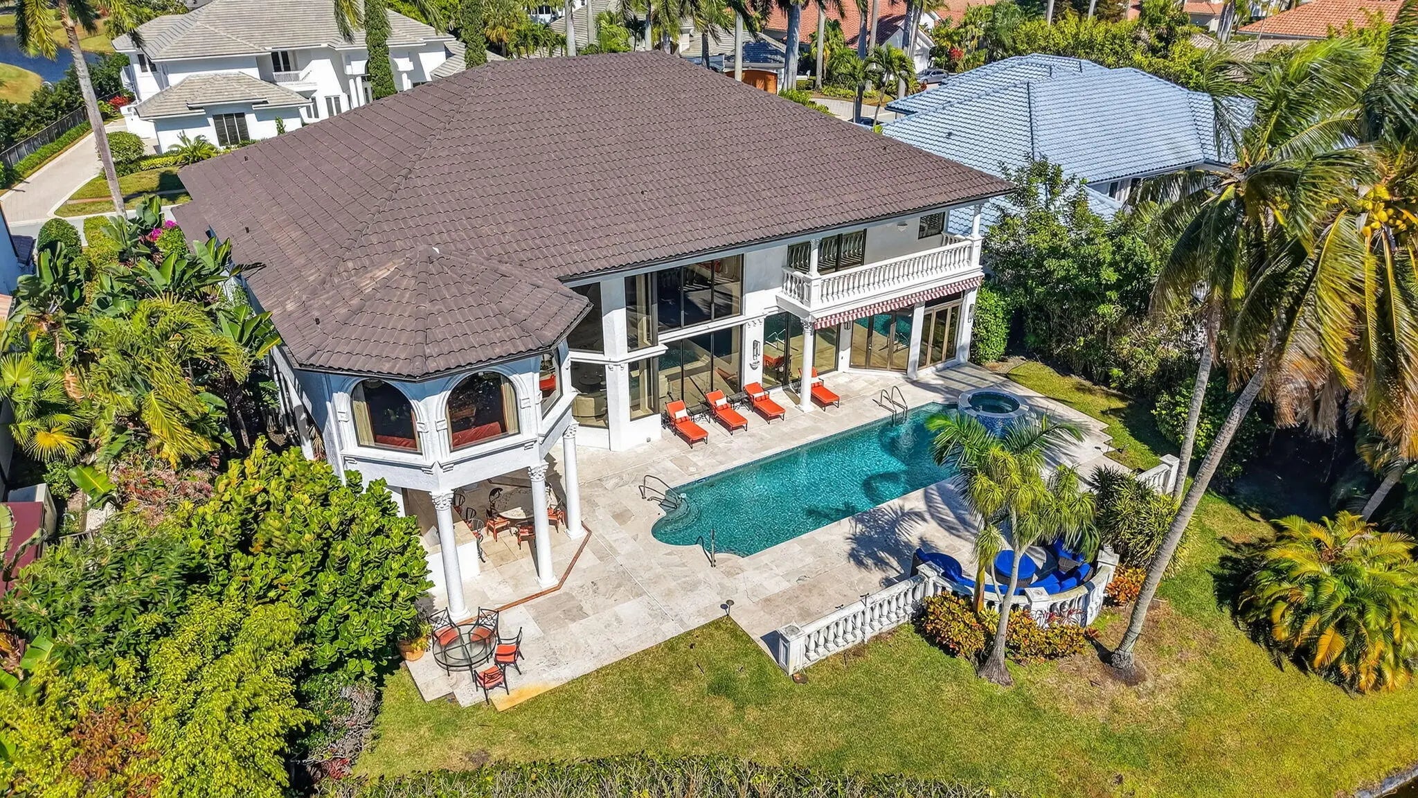 Renovated luxury estate home in St. Andrews Country Club, with long lake and golf course views! The home features 5 bedrooms + office + theater + exercise room, elevator, full-house generator, hurricane impact doors and windows, and more! The gourmet kitchen has Wolf ovens and gas cooktop. The huge master suite has a separate sitting room/office, custom walk-in closets, and his & her bathrooms. All guest bedrooms are ensuite. Outside is a spacious patio with oversized lap pool and spa, summer kitchen with built-in BBQ, and desirable Southern exposure with sprawling lake and golf course views.