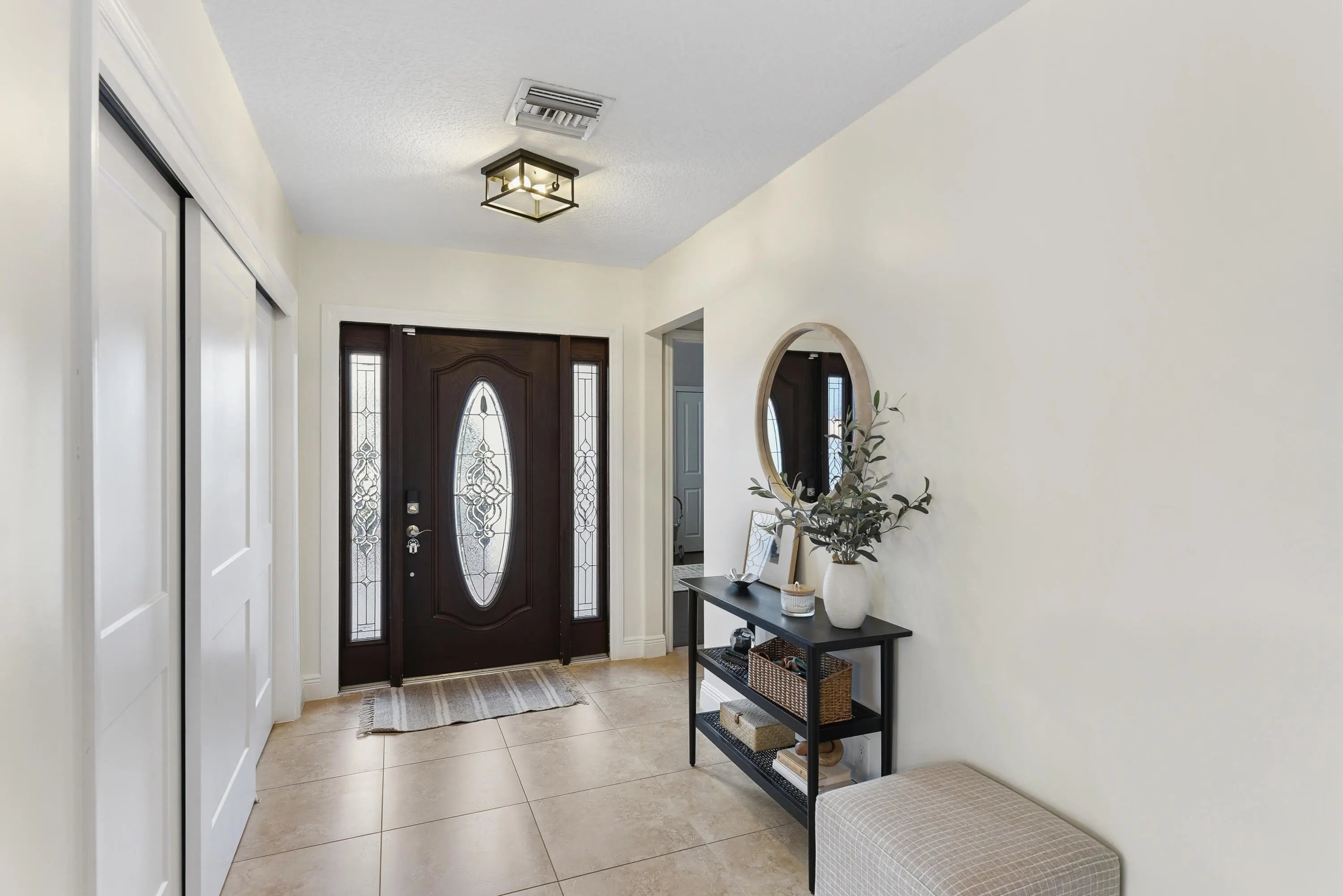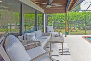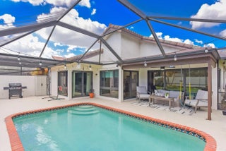 This exquisite home is wonderfully remodeled to modern standards, and located in the highly sought-after community of Solimar in Boca. There are 3 bedrooms and 2 full bathrooms, spread over a bright and open floor plan with vaulted ceilings in the main living areas and a fully-upgraded kitchen with stainless steal appliances. An outdoor atrium is included but can be enclosed. The lot the most desirable in the community, and features a private pool, large lanai space, and pristine backyard which can be perfectly utilized for entertaining or a family. The home has been upgraded with full impact windows and doors, custom closets, high capacity laundry appliances, and more (see highlight sheet). Won't last long!