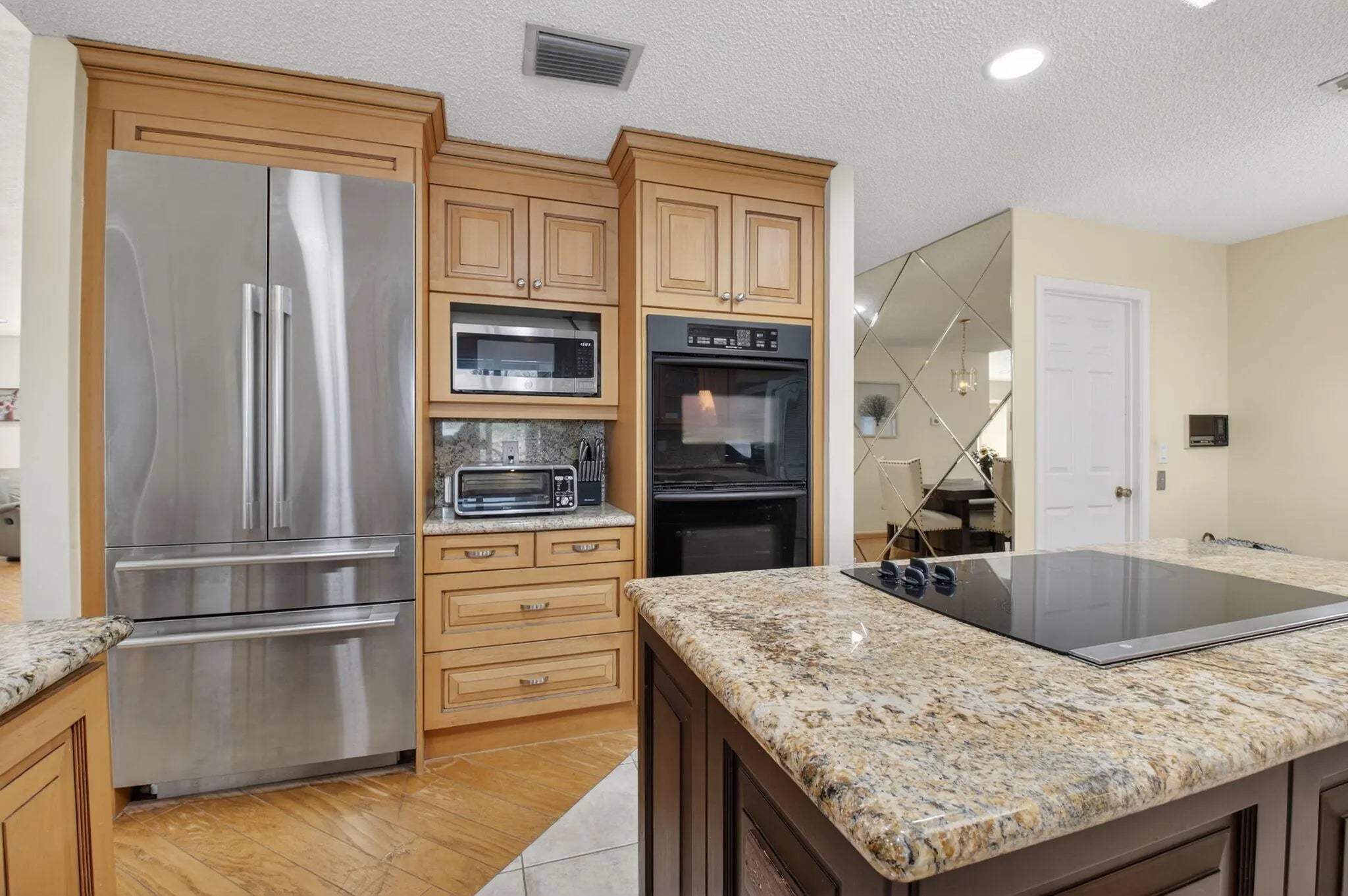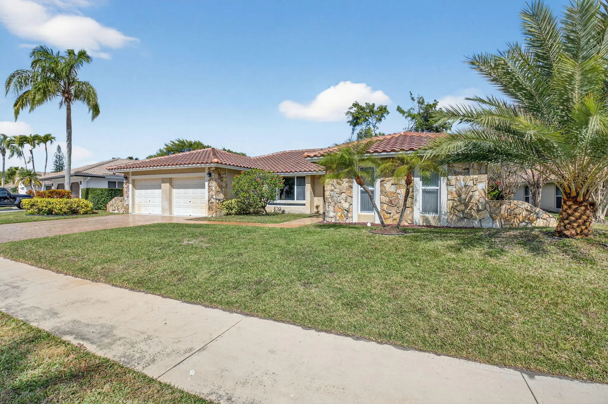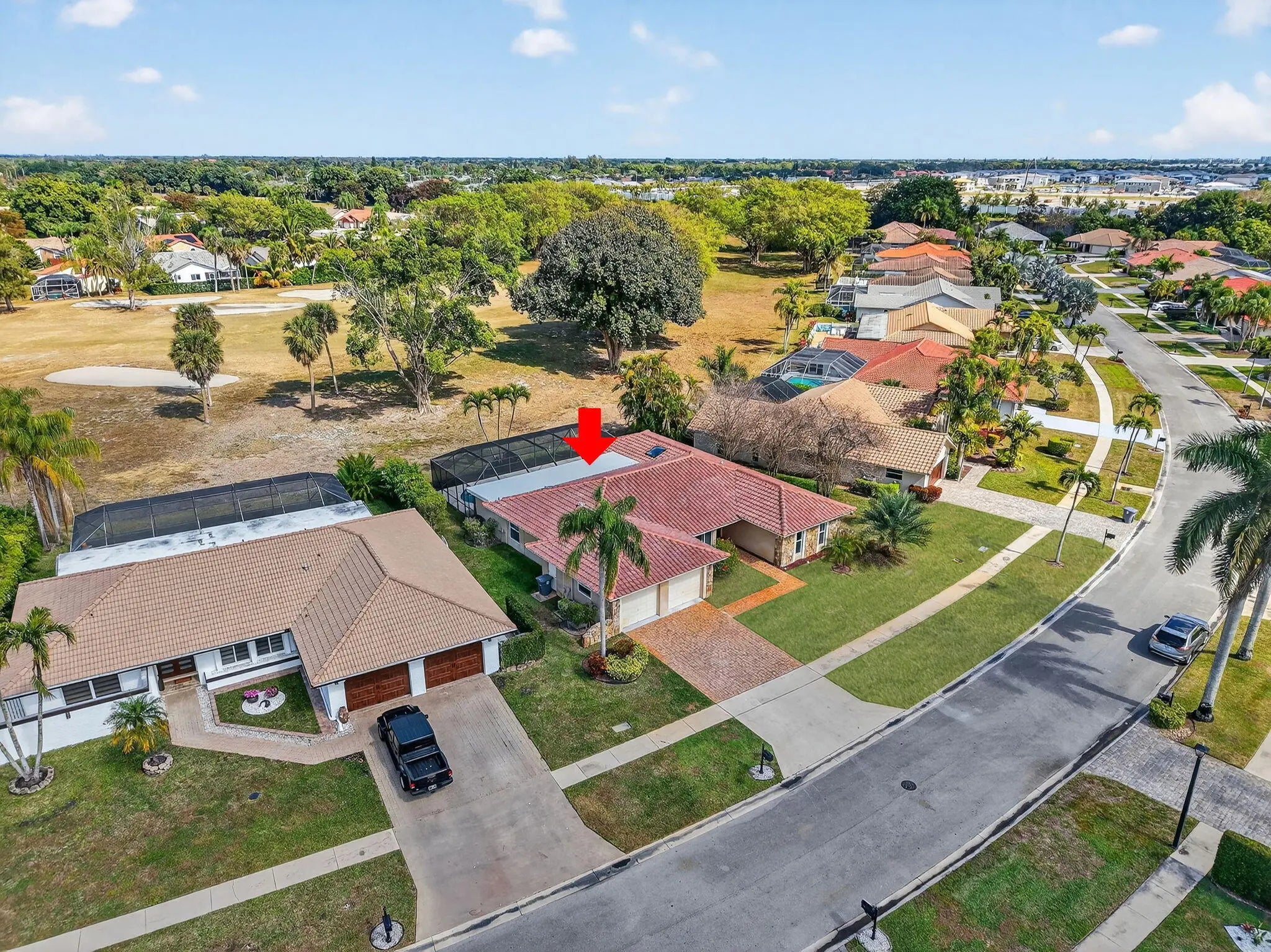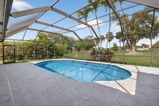 HOUSE IS PRICED TO SELL. Fabulous 1-story pool home with 2-car garage located on private lot in gated golf course community. NEW ROOF JUST INSTALLED. Home features include updated kitchen with custom cabinets, granite countertops, stainless steel LG Signature refrigerator and KitchenAid double oven. Bonus room off kitchen used as home office. Primary bedroom features tile floors, walk-in closet, and ensuite updated primary bathroom that also serves as cabana bathroom. Wood flooring in the main living areas, tile flooring in 2nd bedroom and new carpet just installed in 3rd bedroom. Large, screened pool and patio area overlooking the golf course. All residents can play the Boca Greens County Club golf course on a pay to play basis. No membership is required.