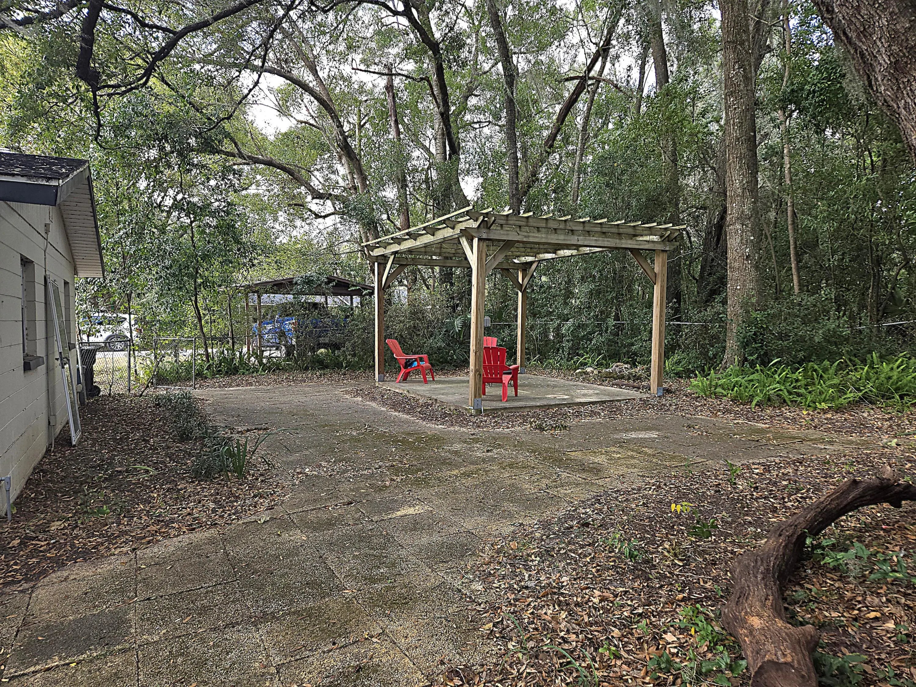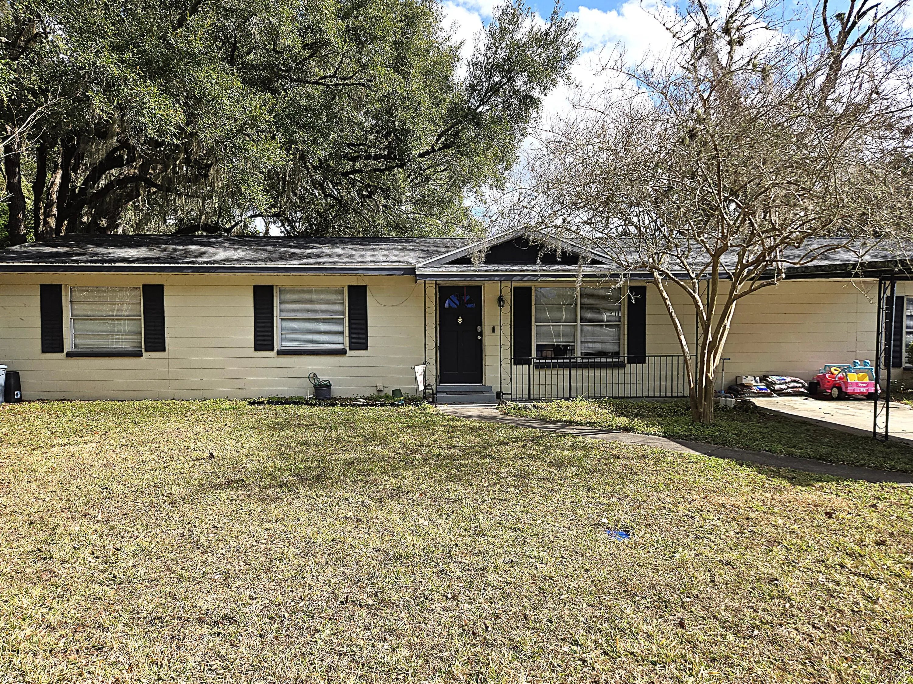 WILLISTON-Inviting 3 bdrm, 1.5 ba home offers 1,728 sf under air & 2,208 sf total. Major updates include new roof, new flooring throughout, tiled kitchen backsplash, countertops, fixtures, paint, HWH & SS Appliances (all approx. 6 yrs old). A spacious, versatile family room offers cozy family gatherings, home office reading nook or multi-purpose area. Gas-burning fireplace is the focal point of this space. Bay window floods the space with natural light. Kitchen is complete with pantry and easy flow into adjacent dining area with French Doors leading to outdoors. Indoor laundry room. Screened patio overlooks private retreat under majestic oak canopy, stone pavers and pergola with power. Fenced yard. Utility Shed. Two Carports. Quiet neighborhood. List agent is related to seller-