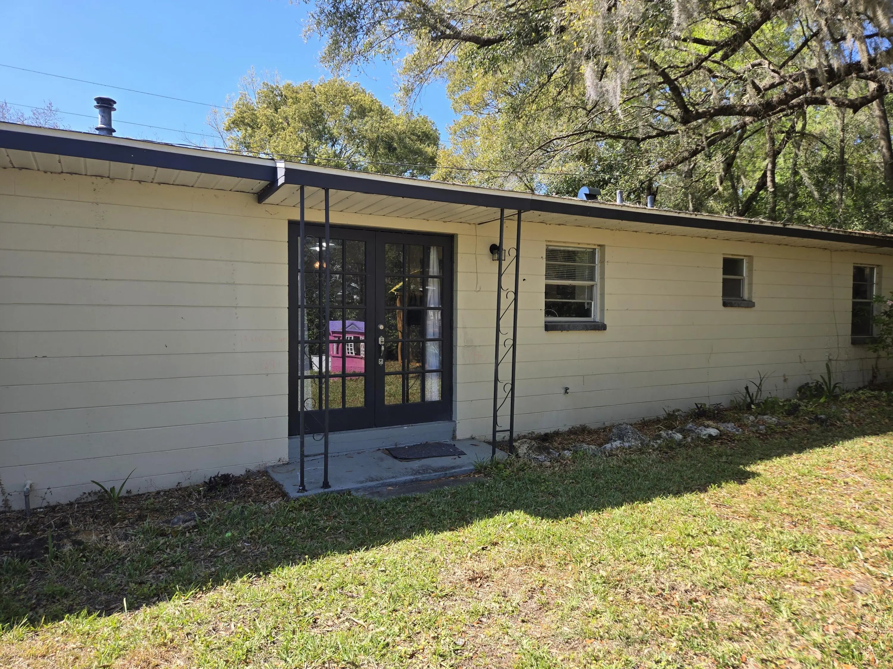 WILLISTON-Inviting 3 bdrm, 1.5 ba home offers 1,728 sf under air & 2,208 sf total. Major updates include new roof, new flooring throughout, tiled kitchen backsplash, countertops, fixtures, paint, HWH & SS Appliances (all approx. 6 yrs old). A spacious, versatile family room offers cozy family gatherings, home office reading nook or multi-purpose area. Gas-burning fireplace is the focal point of this space. Bay window floods the space with natural light. Kitchen is complete with pantry and easy flow into adjacent dining area with French Doors leading to outdoors. Indoor laundry room. Screened patio overlooks private retreat under majestic oak canopy, stone pavers and pergola with power. Fenced yard. Utility Shed. Two Carports. Quiet neighborhood. List agent is related to seller-