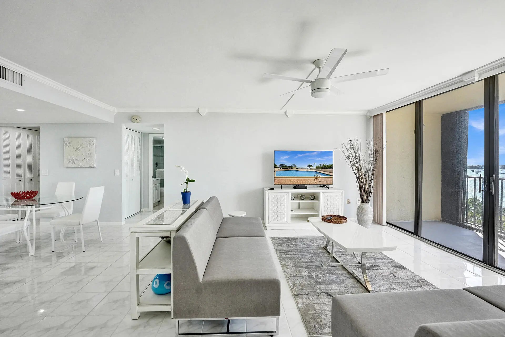 INVESTOR OPPORTUNITY ON THE WEST PALM BEACH WATERFRONT! 2 bedroom/2 bath split floor plan.Waterfront building with private beach and resort style amenities.Salt water heated pool, tiki hut, day dock, gazebo, beachside grills. Fish, snorkel or kayak. Fitness center, meeting rooms, sauna, pool table. 24 hour manned gate and front desk. Impact windows, hurricane protection. Washer/dryer January 2024. AC October 2022. Water heater December 2022.Spectacular views from sunrise to sunset. Furnishings, 3 TV'S in unit washer/dryer. Minutes to restaurants, shopping & Palm Beach International Airport. ALL ASSESSMENTS PAID.Garage parking for 1 car and 1 additional assigned open space.Be part of the West Palm Beach excitement. An ideal turnkey investment opportunity.Enjoy sunsets from your privat balcony.A coastal setting and the amenities provide a serene backdrop from morning to night.