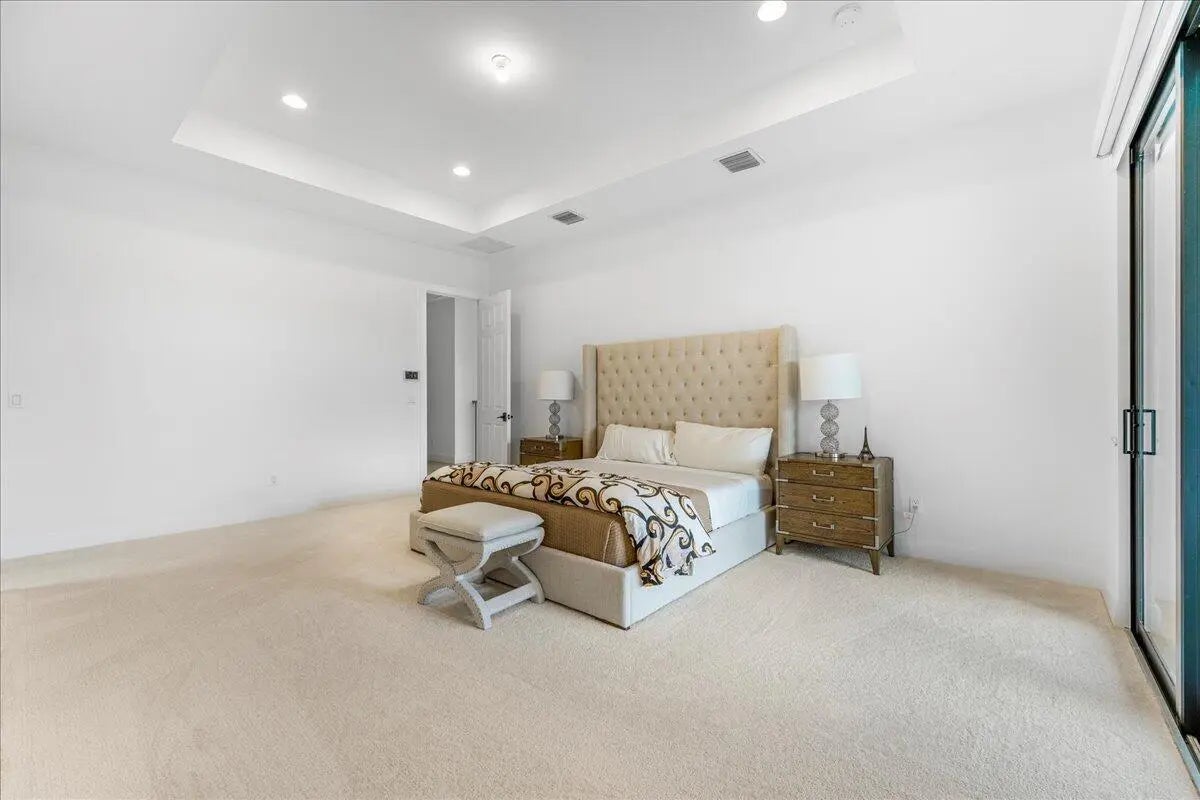 Modern 4-bedroom, 5-bath home with loft and media room that can be converted into a 5th bedroom. The open-concept design features a spacious great room, family dining area, and chef's kitchen with ample cabinetry and a large island. A mudroom with cabinetry off the 3-car garage provides extra storage. Each bedroom includes an en-suite bath, while the primary suite offers dual bathrooms and French doors opening to a covered veranda with pool and lake views. Upstairs, the loft connects to the veranda, and the media room provides flexible space for family gatherings or an additional bedroom. Sliding glass doors lead from the family room to a covered patio, overlooking the inviting pool and lake.