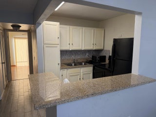 1 bed 1 bath, updated kitchen tile & laminate floors, No Pet, Clubhouse - pool - fitness center - Theater-Buses Gated security and First floor unit, Screen Patio, pickleball, work / wood shop, unfurnished.