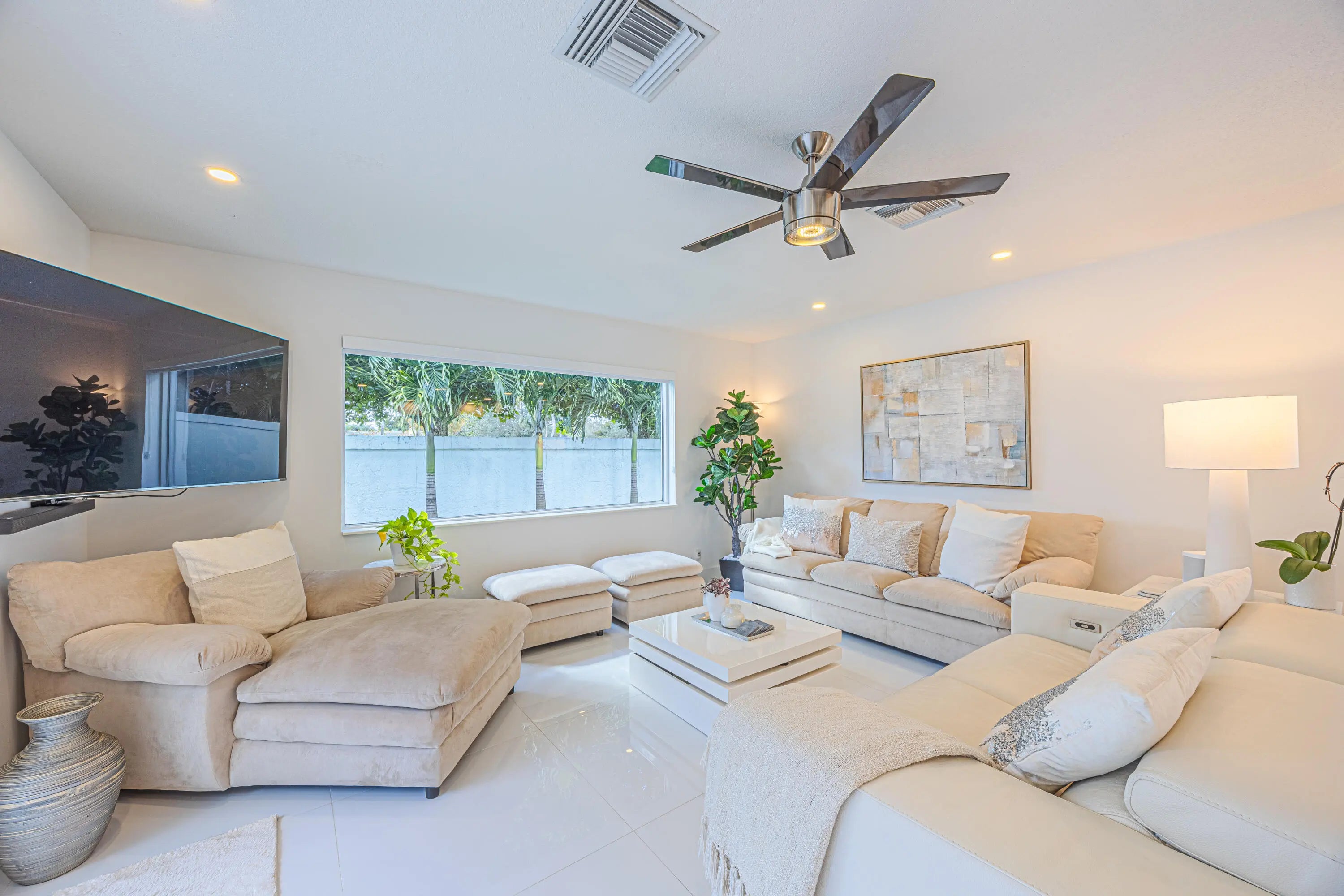 Welcome to this perfectly renovated, modern fully furnished home in a highly sought after gated community. Light, bright and beautifully finished, this open and airy home is designed for both comfort and style. The home offers impeccable finishes with seamless indoor-outdoor living. The chef's kitchen is truly an entertainer's delight, complete with sleek black granite countertops, high end GE appliances, and countertop seating. Hosting gatherings or enjoying casual meals. The living spaces flow effortlessly to a screened-in patio. Outside enjoy the fenced in, turfed backyard. The pool and tennis court are located steps away. Minutes from 95, the beach, upscale shopping and dining. Enjoy modern comfort, privacy, and prime location all in one exceptional rental opportunity.