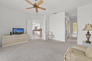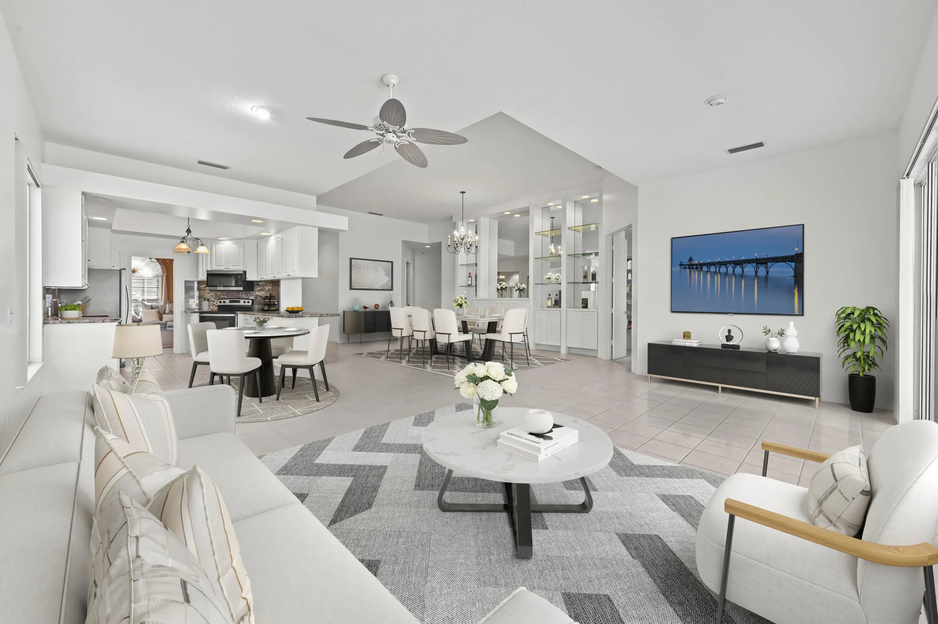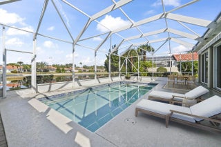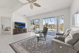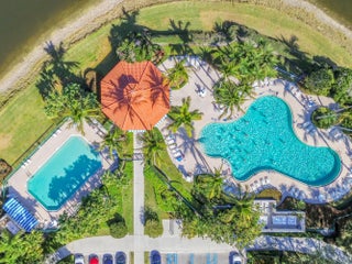 Enjoy resort-style living in this expanded four-bedroom, two-bath home set on an oversized, upgraded lakefront lot with breathtaking sunset views. This home offers a screened lakefront pool, vaulted ceilings, a private split floor plan, open-concept kitchen and living areas, and newer appliances throughout. The spacious primary suite features three closets including a generous walk-in, dual vanities, a split bath with two private toilets, an adjoining shower, and a separate soaking tub. Community amenities include three heated pools, tennis and pickleball courts, a new fitness center, clubhouse restaurant, library, salon, playground, bocce courts, post office, and 12 miles of scenic bridges & walkways. HOA includes cable, internet, landscaping, pest control, and a $120 restaurant credit.