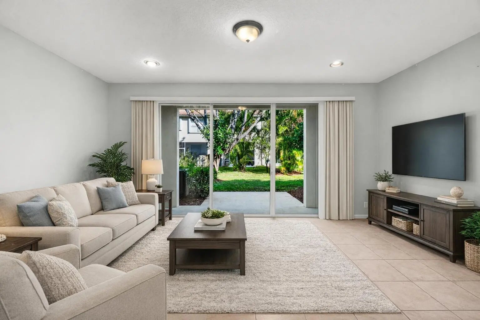 This bright and inviting 2-bedroom, 2.5-bath home also features a spacious loft that can easily function as a third bedroom, home office, or flexible bonus space. Surrounded by tropical landscaping and charming curb appeal, the property welcomes you inside to a light-filled, open-concept layout designed for both everyday living and easy entertaining. The kitchen flows effortlessly into the main living and dining areas, creating a comfortable, connected space for gathering with family and friends. Upstairs, the oversized loft offers endless possibilities to fit your lifestyle. The primary suite serves as a relaxing retreat with large windows, a walk-in closet, and a private bath with dual vanities and a sleek glass shower. The second bedroom is equally spacious and ideal for guests or family. Step outside to the covered patio and enjoy your backyardperfect for morning coffee or unwinding at the end of the day. Located in Verona Lakes, residents enjoy access to resort-style amenities including a large clubhouse, swimming pool, fitness center, playground, and tennis courts.