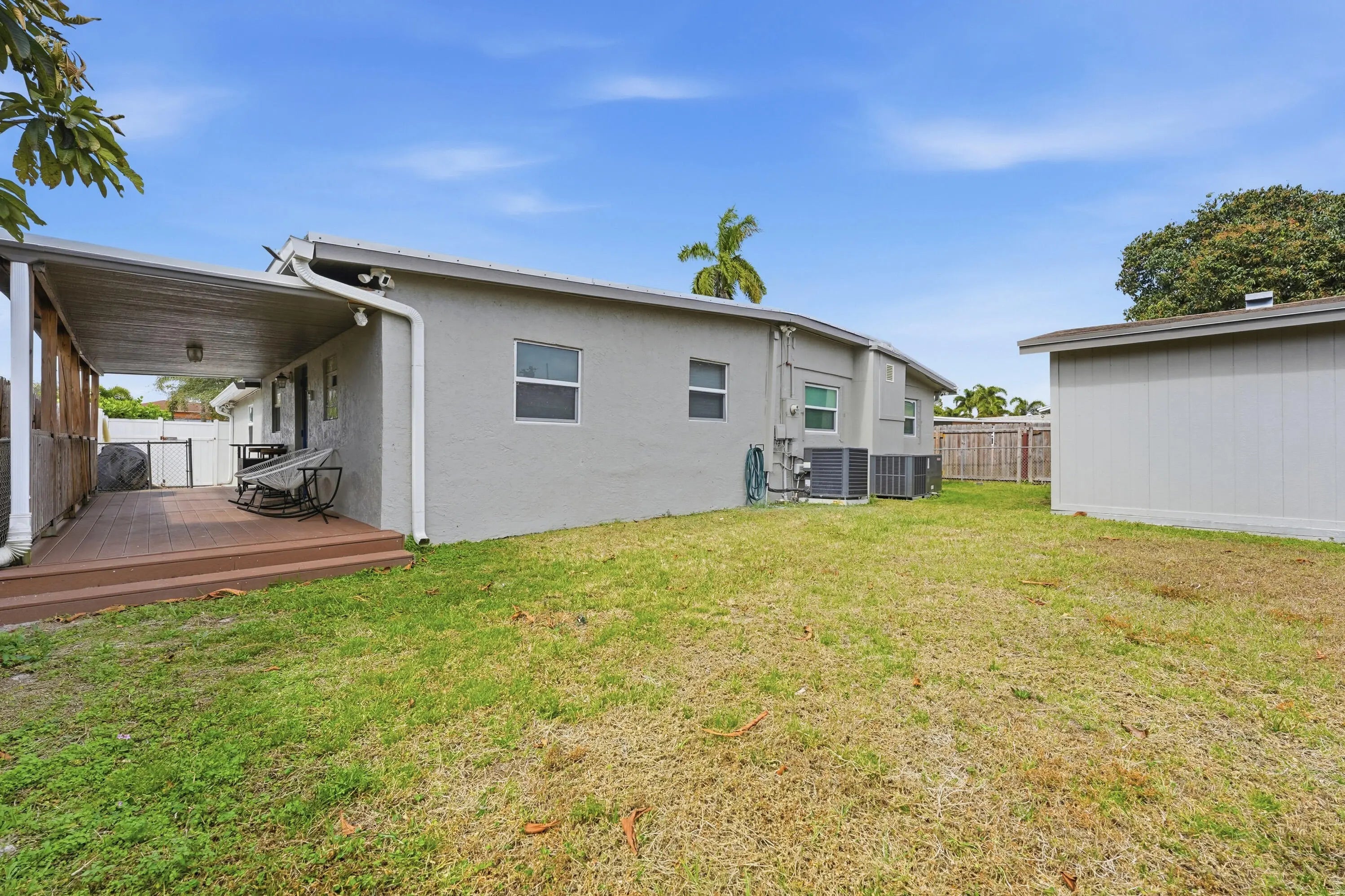 Beautifully renovated 4-bedroom, 3-bath single-family home in West Palm Beach with no HOA! This spacious layout features modern vinyl flooring throughout, a newly updated kitchen with stainless steel appliances, and contemporary finishes. Enjoy a formal living area, family/TV room, dedicated office space, and a luxurious primary suite. A new roof and installed security offer added peace of mind. Step outside to a covered patio overlooking a fully fenced, oversized backyard—perfect for entertaining or adding a future pool. Includes separate storage unit.