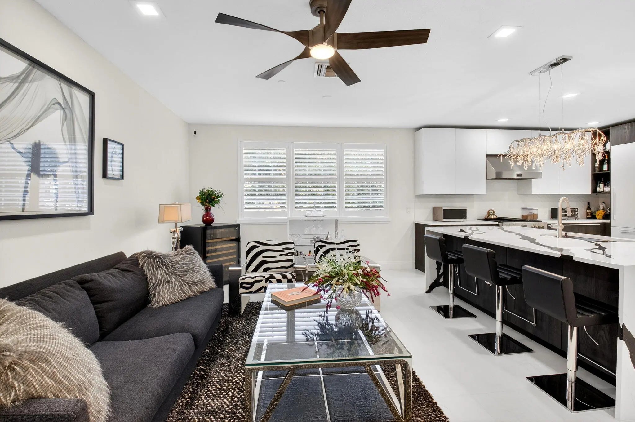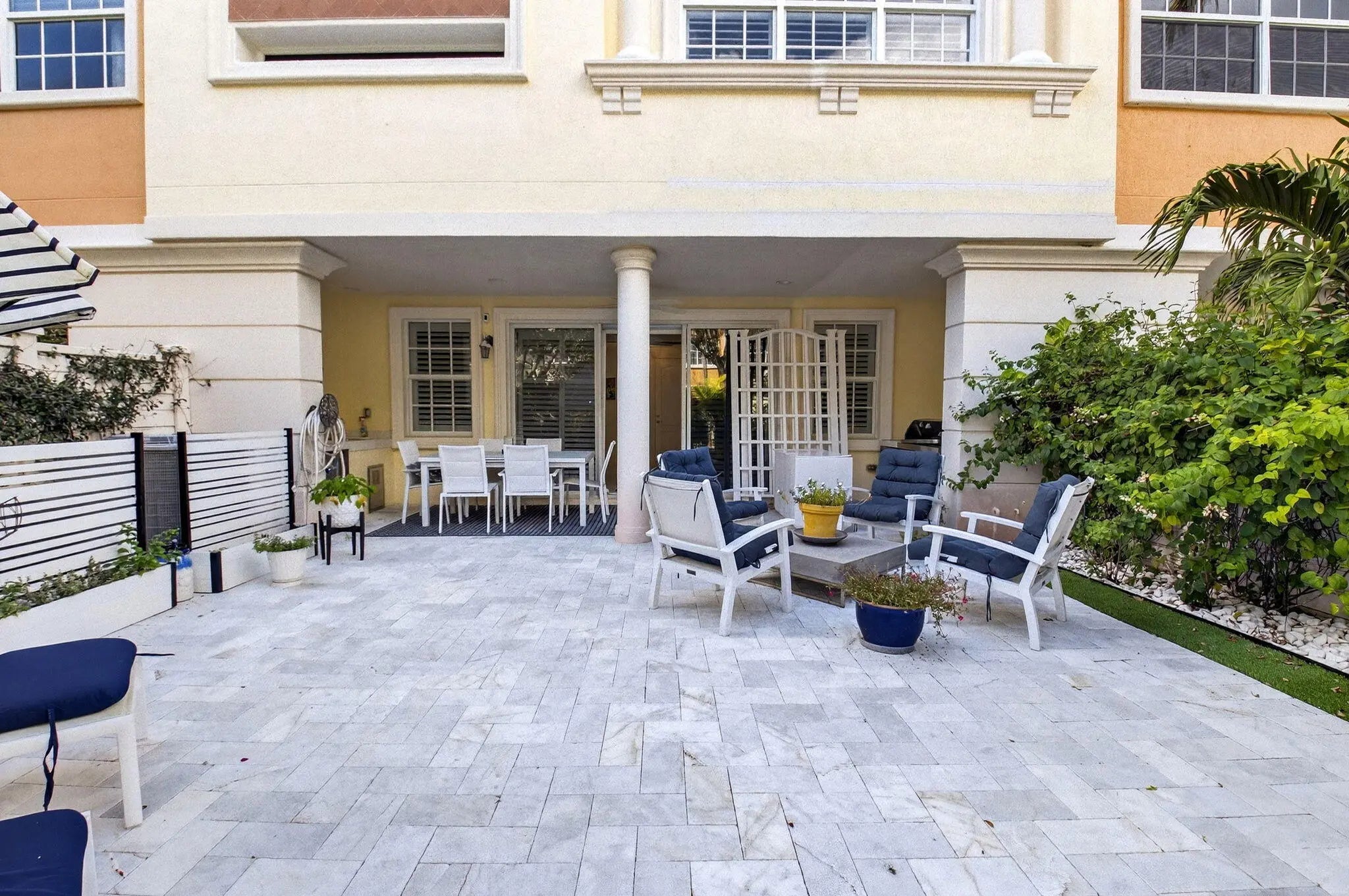 Tucked into the very heart of East Boca Raton is a strikingly designed, bright 3,244 sq.ft. townhouse offering 3 Bed/ 2 Full +2 Half Bath with a private office/den providing refined living in an unbeatable location. A private elevator connects to each level. The exclusive backyard is an exquisite, landscaped garden retreat perfect for relaxation or a family barbecue. The kitchen is the true heart of the home. A gourmet chef's dream designed to impress and perform. An oversized stone island anchors the space, complemented by sleek European contemporary cabinetry and top-of-the-line Miele appliances, including a speed oven/microwave. A gas range by Fulgor Milano elevates the culinary experience, while a dedicated coffee station invites you to slow down and savor life's daily rituals. Elegant plantation shutters frame the windows, allowing soft natural light to flow through the home. Downstairs, a custom-built office with tailored built-ins creates the perfect environment for working from home, peaceful, practical, and inspiring. Step outside to your own private garden oasis, where indoor-outdoor living truly comes to life. Marble pavers set the stage for effortless entertaining, from al fresco dinners to relaxed evenings by the grill with a perfectly cooked steak and a glass of wine. Lush, manicured landscaping provides privacy, color, and charm, so much so that butterflies frequently make their appearance, adding a touch of magic to the setting. Throughout the home, large rectified porcelain tile flooring offers a clean, modern aesthetic, complemented by plush bedroom floors and a striking staircase featuring a sleek metal handrail for a streamlined, contemporary look. All closets are fully fitted to maximize storage, and the finished garage with epoxy flooring adds both practicality and polish. The community is pet-friendly and ideally positioned near Boca Raton's most sought-after schools. From elementary through high school, an invaluable asset whether for daily living or long-term resale value. Just moments from the beach, Mizner Park, world-class dining, boutique shopping, and Boca's vibrant cultural scene, including the art museum. This residence places everything you love right at your doorstep. Move-in ready, impeccably designed, and perfectly located this is more than a townhouse. It's a lifestyle. The following items are excluded from the sale of the property: Dining room Chandelier, all of the TV's