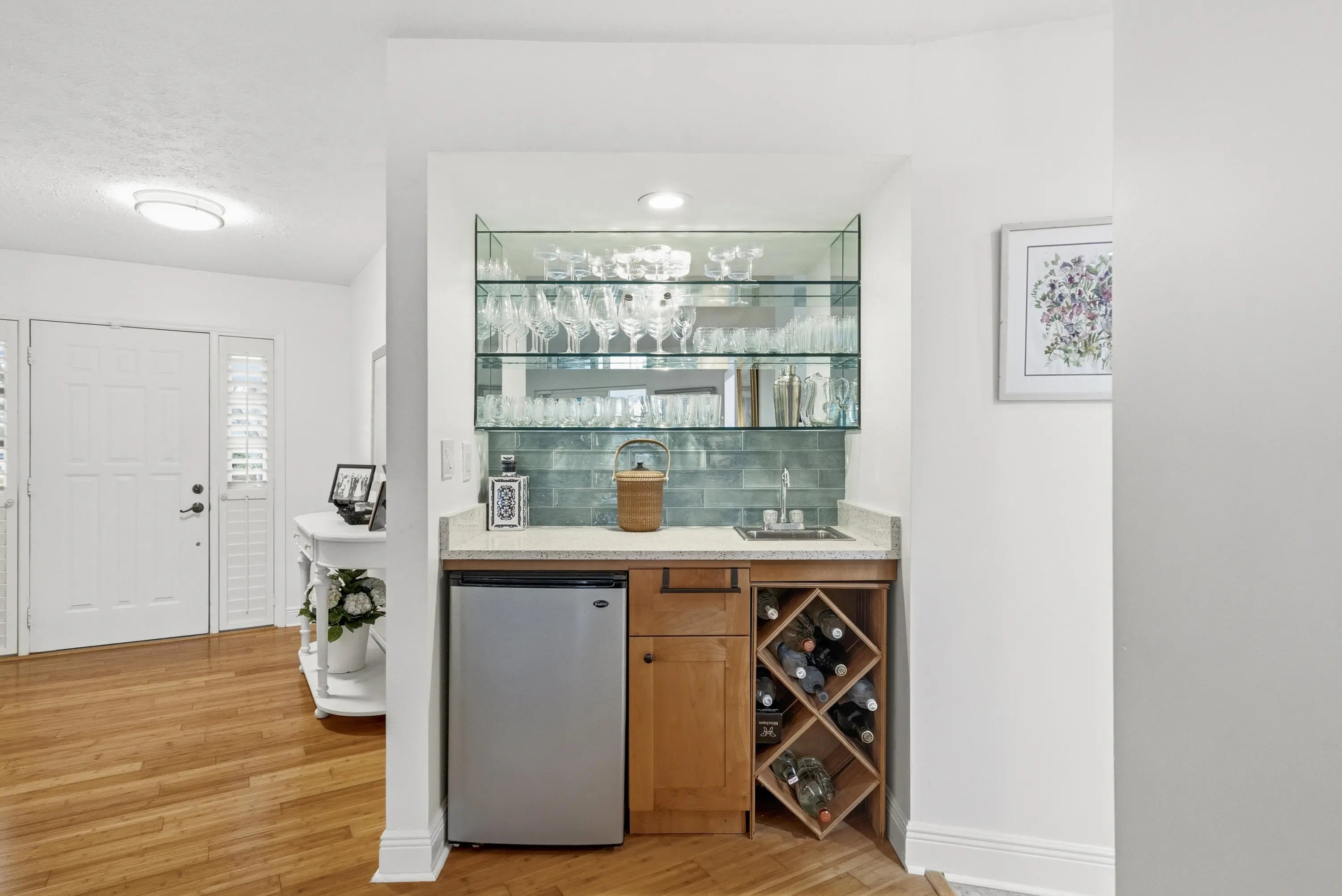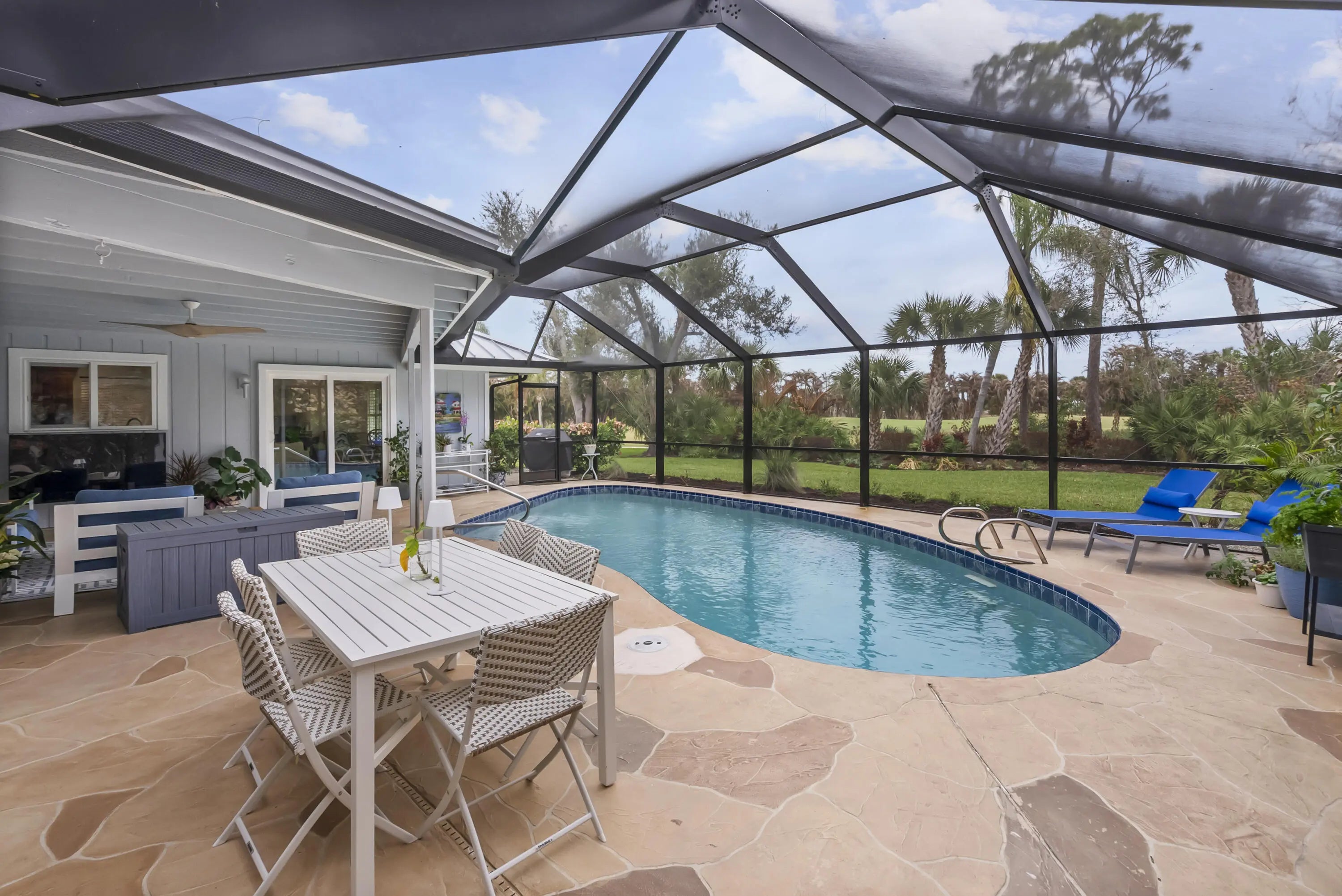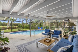 Located in the highly desirable Mariner Sands Country Club, this beautifully updated 3-bedroom, 3-bathroom single-family home offers comfort, style, and stunning views of the 6th hole green on the Blue Course. A 2024 metal roof and all impact windows and sliders provide peace of mind, while thoughtful interior updates make this property truly move-in ready. Inside, you'll find a fun Florida feel with colorful coastal wallpaper throughout, adding warmth and personality. The primary suite is a true retreat, featuring a spacious bedroom, walk-in closet, and a renovated bathroom with dual sinks and a walk-in shower. The layout is ideal for guests, as each bedroom offers its own full bathroom for privacy and convenience. The formal living room offers beautiful views of the outdoor space and features a charming wet bar, creating the perfect setting for entertaining. The spacious kitchen is equipped with stainless steel appliances, including a newer Frigidaire oven that reaches 700 degrees - ideal for pizza lovers. Just off the kitchen, the den provides additional living space and showcases a cozy wood-burning fireplace. Step outside to your private backyard oasis featuring a pool, covered patio space, and a large screened-in lanai overlooking the golf course with beautiful green views. This home offers the perfect blend of indoor comfort and outdoor Florida living in one of Stuart's premier golf communities. Mariner Sands Country Club offers 2 championship golf courses, tennis, pickleball, croquet, a world-class fitness center, resort-style pool, restaurant, and a new $35 million clubhouse.