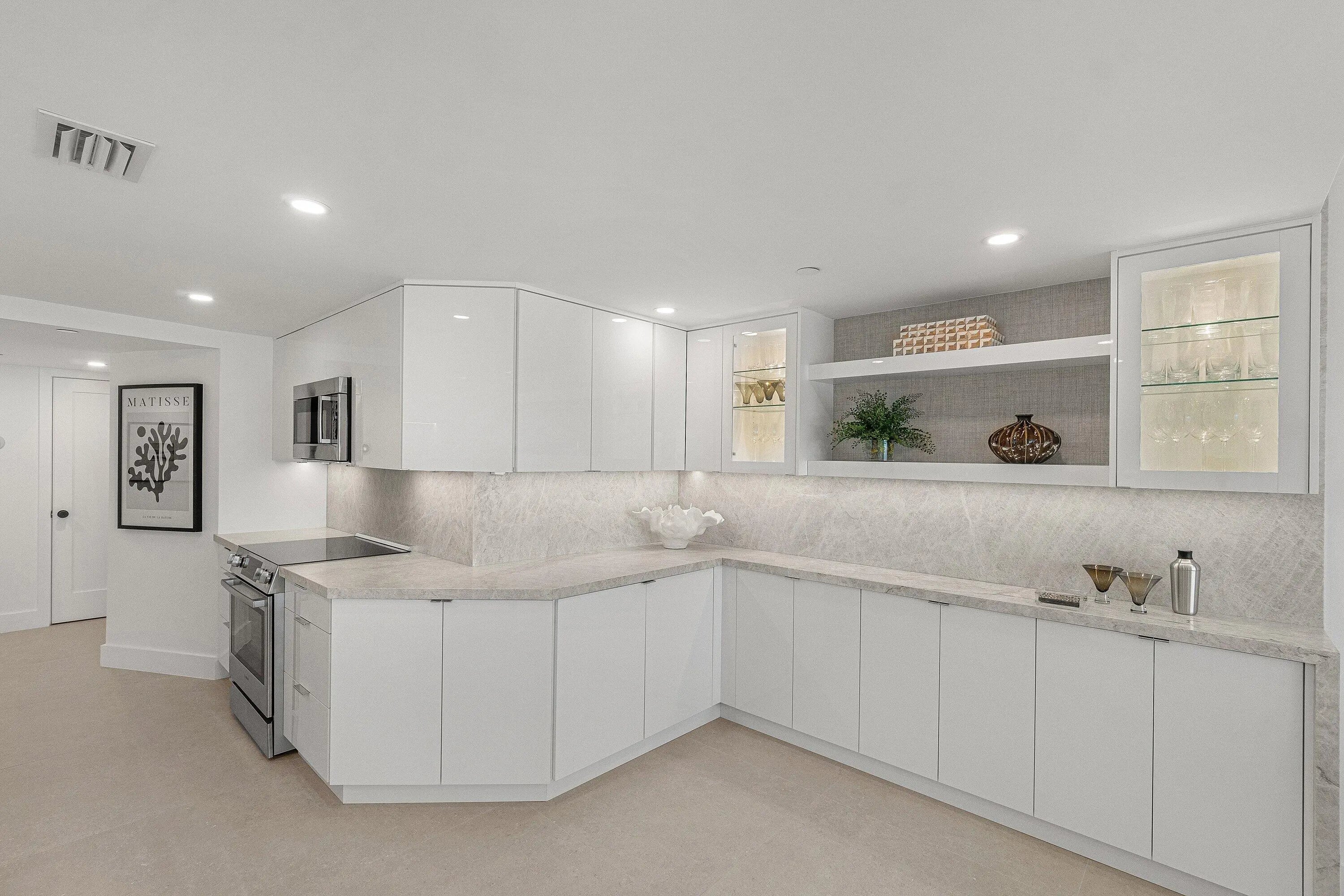 Welcome to luxurious beachfront living at 4301 N Ocean Blvd in Boca Raton, FL. Perched in a prestigious high-rise with eastern & western exposures, this fully furnished 3-bedroom, 3-bathroom condo offers the ultimate in comfort and style. Step inside to find a beautifully renovated space with a gourmet kitchen outfitted with Taj Mahal quartzite counter tops and Bosch appliances including dishwasher, stove/oven and refrigerator, perfect for preparing meals with ease. 36x36 porcelain tile floors flow throughout the living and sleeping space ensuring a streamlined contemporary aesthetic. The primary suite is a sanctuary, featuring a custom closet, a spa-like bath with a separate tub and shower, and contemporary finishes. Relax and soak up the ocean breeze on your private balcony or enjoy an array of exceptional amenities this building has to offer. Unwind by the heated pool, rejuvenate in the sauna, challenge yourself on the tennis or pickleball courts or practice on the putting green. Stay active in the state of the art gym, socialize in the common recreation room, or enjoy a game in the billiards room. Private beach access with beach pavilion and lounge chair set up allows easy going beach days. This residence also includes a full-time concierge, private storage, two garage parking spaces, and dedicated security with a gated entrance, security patrol and on-site staff. Dont miss this exceptional opportunity to experience resort-style living at its finest. Schedule your private showing today and make this exquisite Boca Raton condo your next home.