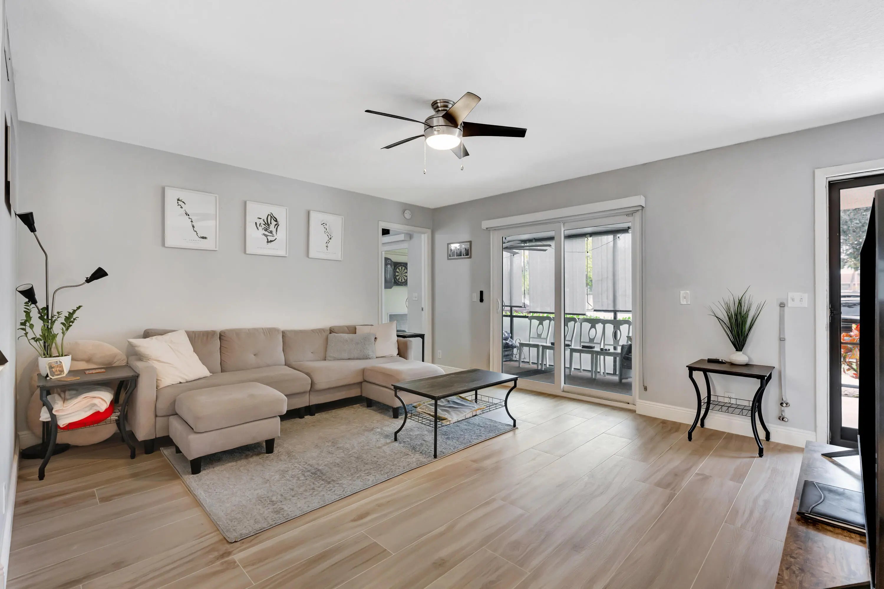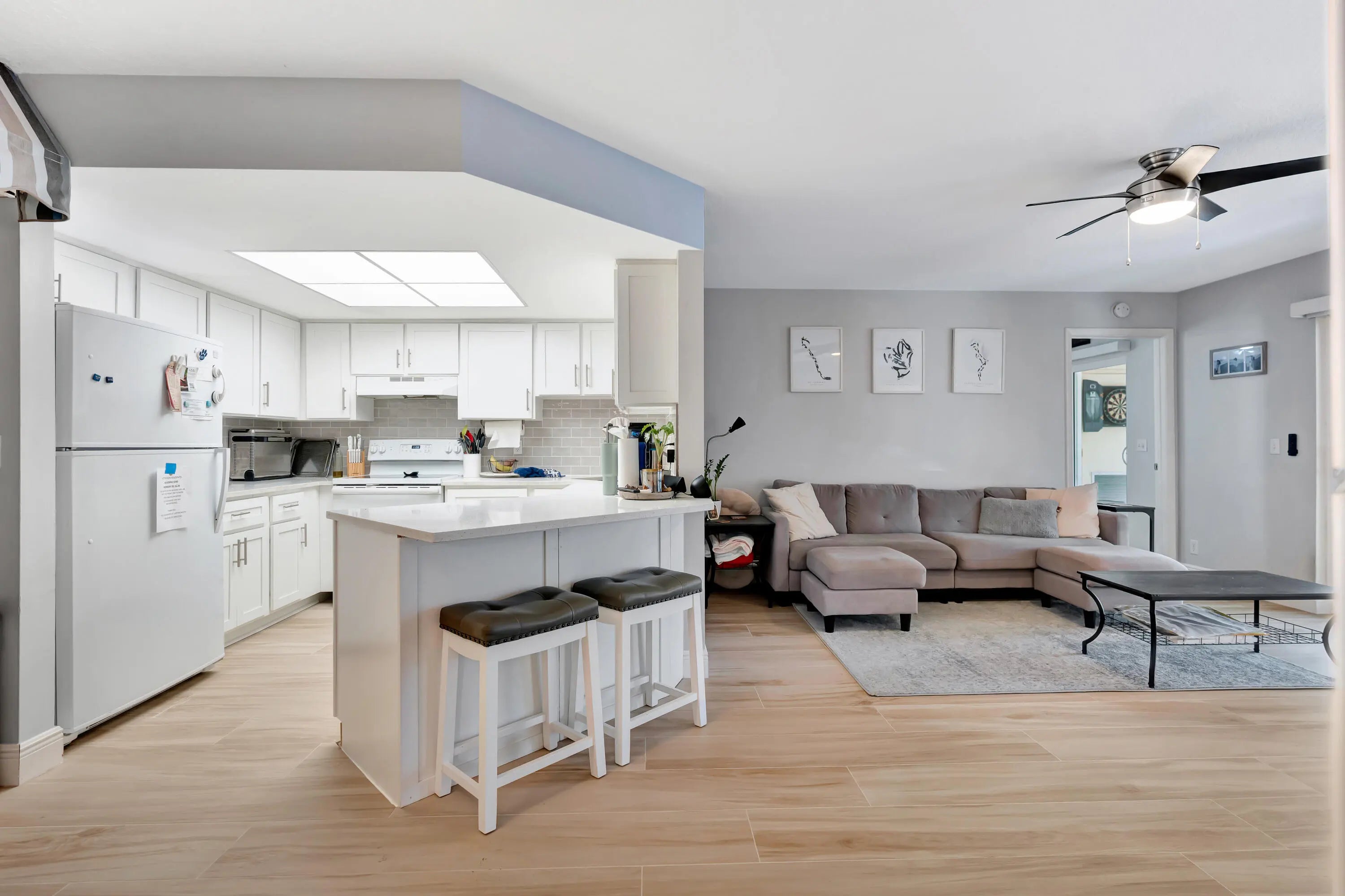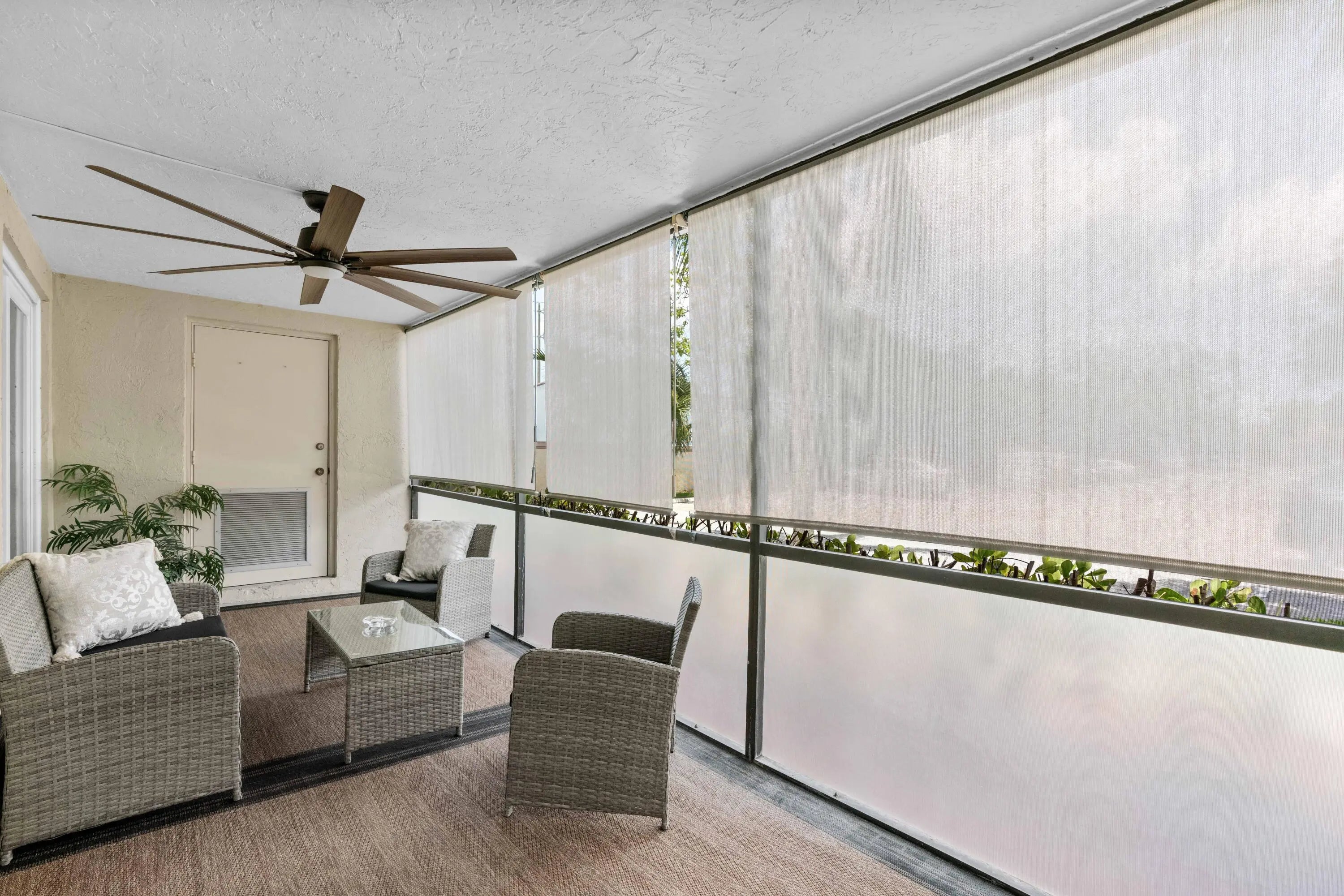 Freshly upgraded! Ground floor/end now available in Chasewood. Sophisticated 2 Bedroom/2 Bath Corner Unit turnkey move-in ready. New and upgraded open concept kitchen with quartz countertops and grey tile backsplash. Master Bedroom has a large Walk-in closet. Living/Dining room, All Hurricane Impact Windows and Doors, Light vinyl plank flooring and ceiling fans throughout, Newer appliances, Washer/Dryer in unit, Beautifully screened in porch with ceiling fan and roll down blinds for privacy, new patio furniture, and storage closet. Brand new window treatments throughout. Two close reserved parking spots and unit is very close to Community Pool, Clubhouse, Tennis Courts, BBQ and Picnic area, shopping, Publix, Beach and 1-95. Allowed 1 Dog up to 30 lbs. Boat Storage & Car Wash on property.