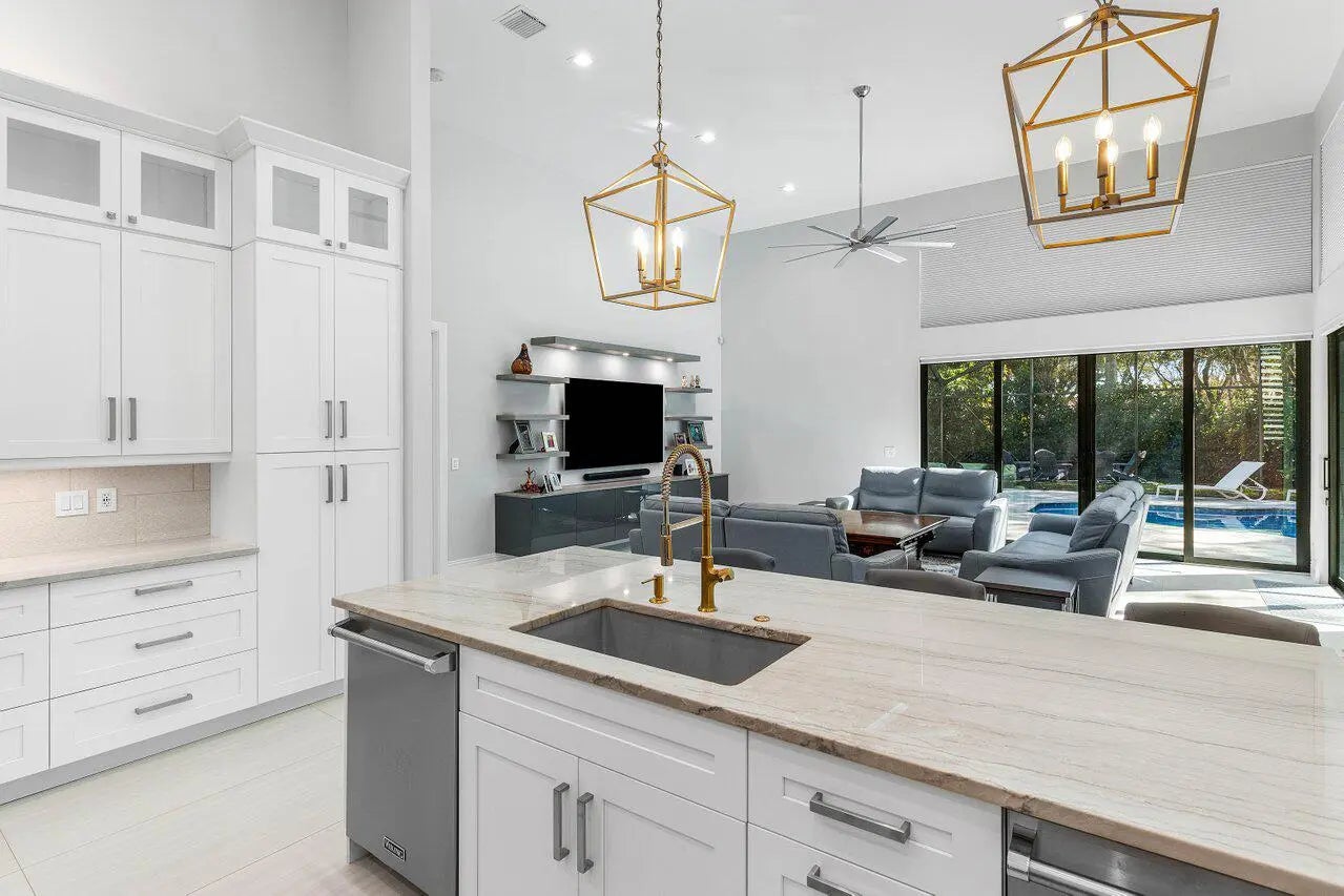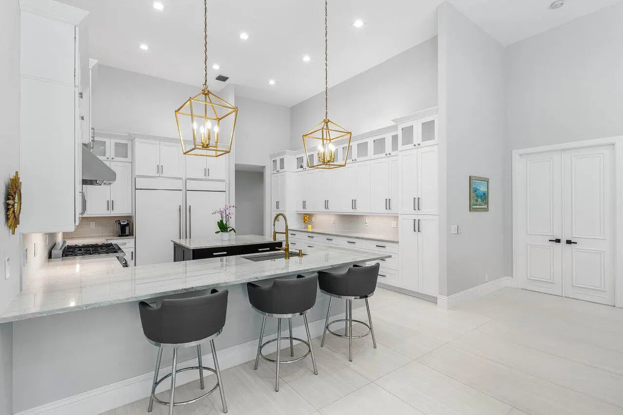 Welcome to an extraordinary, fully reimagined contemporary estate tucked away at the end of a quiet cul-de-sac in prestigious Bocaire Country Club. Set on nearly an acre of lush, newly resodded grounds with mature fruit trees, new hedges, and professionally designed landscaping, this private sanctuary has undergone a comprehensive full-property modernization blending architectural refinement, advanced safety features, and resort-style outdoor living. Engineered for strength and peace of mind, the home features a brand-new roof with new gutters and downspouts (Miami-Dade wind rated up to 175 MPH), approved hurricane impact windows and doors, and wind-rated impact garage doors with new tracks, ultra-quiet belt-driven motors, and MyQ WiFi smart control. Brand-new electrical panels, all new electrical panels, all new outlets, and full LED lighting upgrades enhance efficiency throughout. A hardwired security system with 10 wired digital exterior cameras, full CAT6 wiring with three WiFi access points, and new Nest thermostats provide modern smart-home integration. The outdoor setting is nothing short of spectacular. Approximately 3,000 square feet of new decking surrounds the brand-new pool featuring a state-of-the-art saltwater filtration system. Enjoy a new wind-rated screen enclosure, a fully equipped outdoor kitchen with propane grill and refrigerator, fire pit, 4-hole artificial putting green, full-perimeter LED landscape and soffit lighting, and a WiFi-enabled irrigation system with all-new underground piping. The expanded circular paver driveway accommodates 12+ vehicles, in addition to the spacious three-car garage. Inside, soaring ceilings and a refined neutral palette create a sophisticated yet inviting atmosphere. All interior walls and ceilings have been smoothed with knockdown texture removed, complementing modern porcelain tile flooring throughout the main living areas and brand-new carpet in all bedrooms. All plumbing fittings have been replaced, elevating both function and finish. The showpiece chef's kitchen is outfitted with a 72" Sub-Zero refrigerator/freezer, 48" Thermador range with double ovens and commercial-grade hood, two Viking dishwashers, microwave drawer, double countertops, and a walk-in pantry. An additional refrigerator in the laundry room adds further convenience. The flexible floor plan offers six spacious bedrooms, including one currently configured as a gym/playroom and another as a private home office, along with beautifully renovated spa-inspired bathrooms featuring new flooring, vanities, sinks, toilets, showers, and fixtures. Electric and manual blinds provide both comfort and design versatility. Surround sound flows throughout the home, completing the seamless indoor-outdoor lifestyle. Major mechanical upgrades include three brand-new Carrier air conditioning systems (compressors and air handlers) and tankless hot water systems for enhanced efficiency and comfort. Bocaire Country Club is a prestigious boutique mandatory membership community of just 239 homes offering a newly renovated clubhouse, championship golf course, tennis, pickleball, 24-hour fitness center, exceptional dining, and vibrant social programming for parents, children, and grandchildren alike. Ideally located among the easternmost country clubs, Bocaire is minutes to beaches, shopping, and dining, perfectly positioned between Mizner Park and Delray Beach's Atlantic Avenue. Zoned for A-rated public schools including Calusa, Omni, and Spanish River, with excellent private school options nearby. This is more than a renovation. It is a fully fortified, technologically advanced, resort-inspired estate delivering luxury, security, and modern sophistication at the highest level.