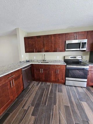 Looking for the perfect home that combines comfort, convenience, and style? Welcome to this beautifully renovated 3-bedroom, 2-bathroom townhouse offering 1,392 sq ft of modern living space. This home features a custom-designed kitchen with wood cabinets, stainless steel appliances, and granite countertops. Elegant laminate flooring runs throughout the entire home, and both bathrooms have been renovated with new vanities. Conveniently located just minutes from Palm Beach International Airport, I-95, Florida Turnpike, and major roads, making commuting a breeze. With its sleek design and prime location, this townhouse is perfect for homeowners or investors. Investor-friendly community with the ability to rent immediately; current market rent approximately $2,300. A great opportunity.