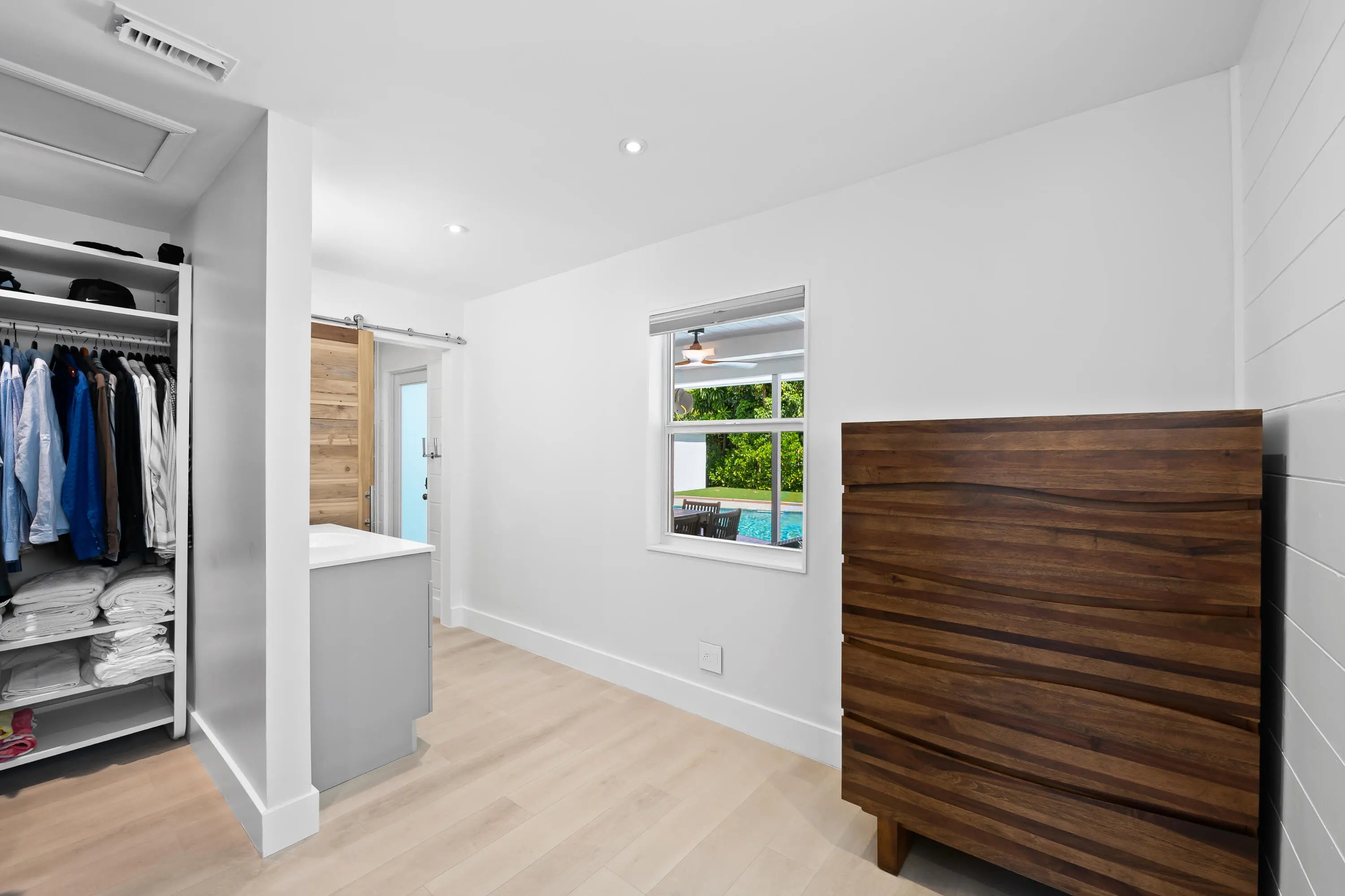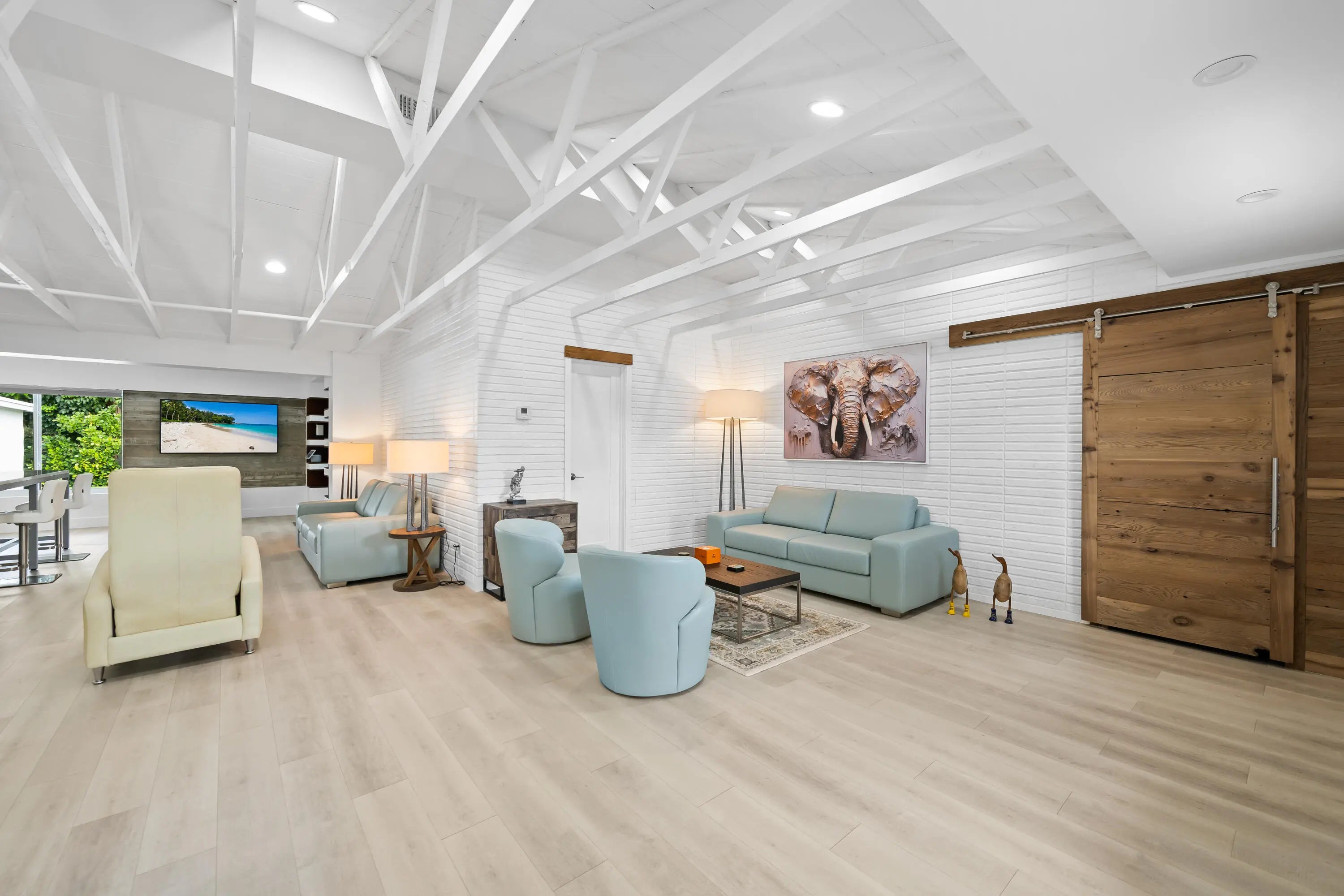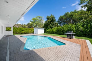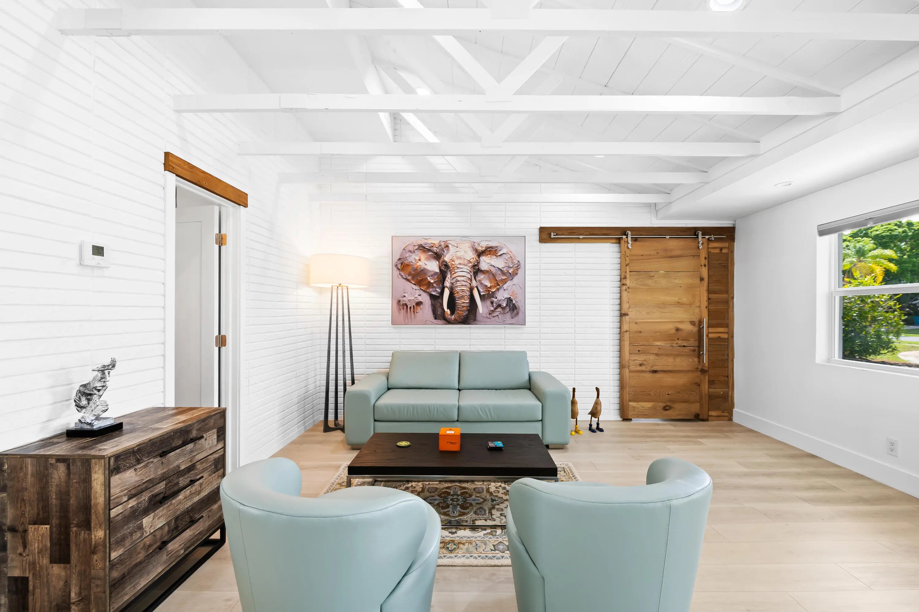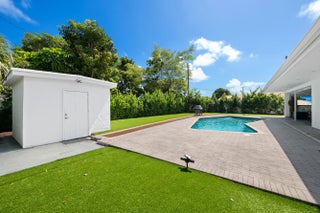 This newly custom designed pool home is an absolute MUST SEE! This home is perfect for a second/vacation home or HIGH earning potential AirBnb. Gulfstream Estates is situated in a highly desirable location, just minutes from beautiful beaches and the famed Atlantic Ave of Delray. Nestled on a large meticulously landscaped lot at the end of a peaceful cul-de-sac, bordered by the Seacrest Natural Preserve Area, privacy is assured. Upon entrance, you are greeted with a gorgeous open living area featuring vaulted ceilings, abundance of natural light, and top of the line finishes. The kitchen is equipped with quartz countertops, stainless steel appliances, and a tile backsplash, complemented by exposed brick walls and luxury vinyl flooring throughout. The backyard offers serene tranquility with an expansive saltwater pool, newly planted vegetation along the perimeter, open air patio with custom lighting and built-in sound system, and an outdoor shower. For those who love entertaining, the outdoor living and pool area is a guest's paradise. The home is complete with PGT impact glass windows and doors. All of the pool equipment and the pool heater are newer. The roof is 7 years old & Brand New AC . New sprinkler system that can be operated from your phone. Plenty of room to park a 30 foot boat or RV. Solar Panel's keep the average electric bill between $30-$50/m. Additional work shed and extra storage room.