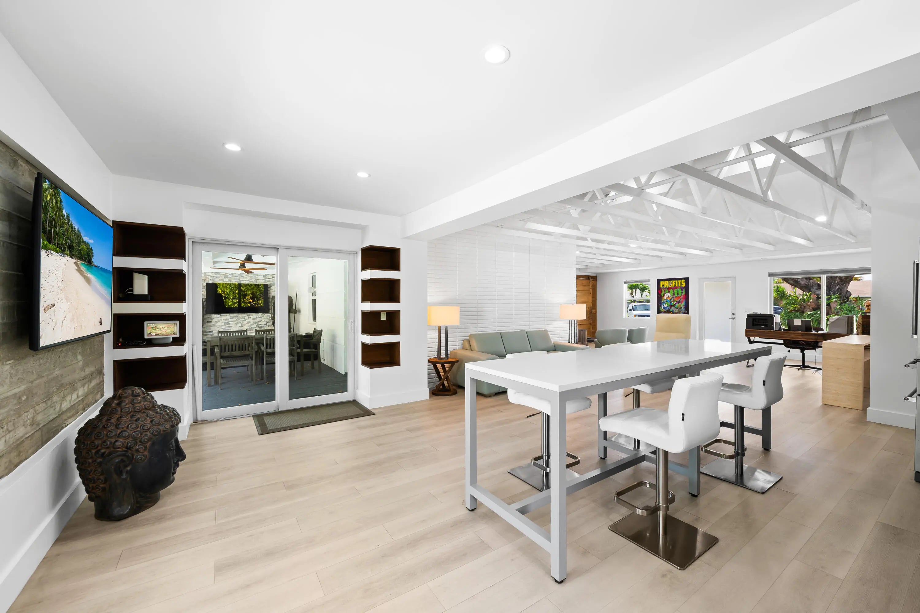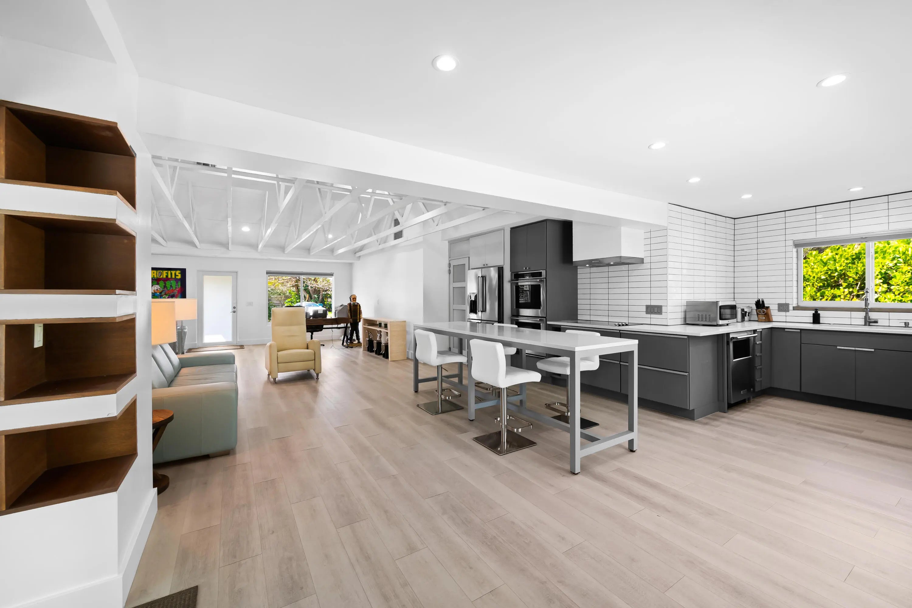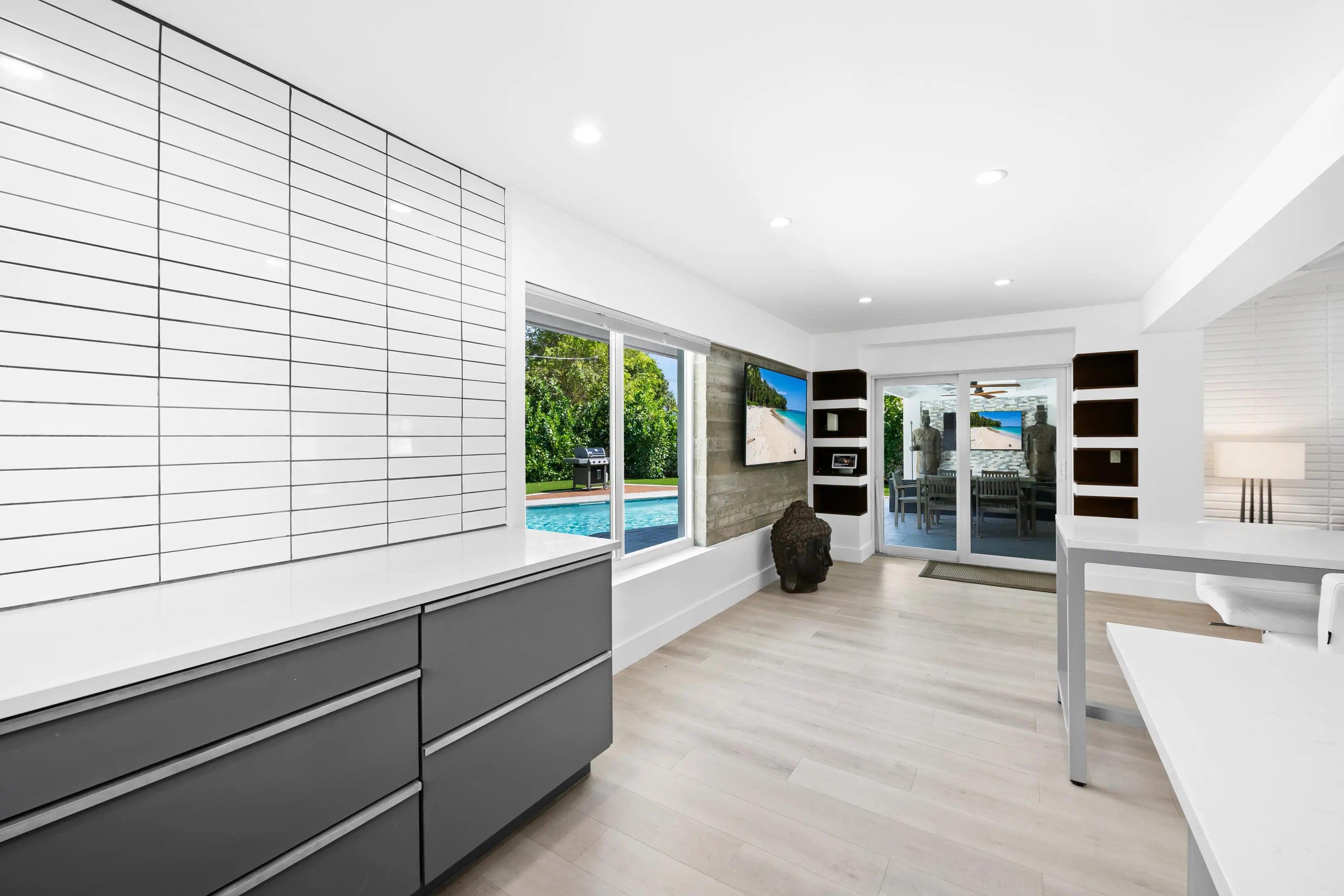 This newly custom designed pool home is an absolute MUST SEE! This home is perfect for a second/vacation home or HIGH earning potential AirBnb. Gulfstream Estates is situated in a highly desirable location, just minutes from beautiful beaches and the famed Atlantic Ave of Delray. Nestled on a large meticulously landscaped lot at the end of a peaceful cul-de-sac, bordered by the Seacrest Natural Preserve Area, privacy is assured. Upon entrance, you are greeted with a gorgeous open living area featuring vaulted ceilings, abundance of natural light, and top of the line finishes. The kitchen is equipped with quartz countertops, stainless steel appliances, and a tile backsplash, complemented by exposed brick walls and luxury vinyl flooring throughout. The backyard offers serene tranquility with an expansive saltwater pool, newly planted vegetation along the perimeter, open air patio with custom lighting and built-in sound system, and an outdoor shower. For those who love entertaining, the outdoor living and pool area is a guest's paradise. The home is complete with PGT impact glass windows and doors. All of the pool equipment and the pool heater are newer. The roof is 7 years old & Brand New AC . New sprinkler system that can be operated from your phone. Plenty of room to park a 30 foot boat or RV. Solar Panel's keep the average electric bill between $30-$50/m. Additional work shed and extra storage room.