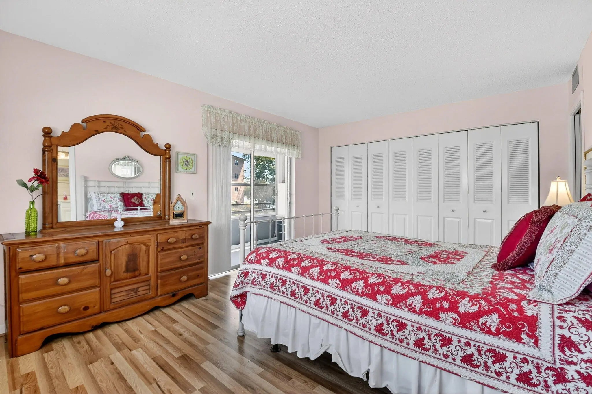 Welcome to this sun-filled corner unit in the active 55+ community of Century Village! This one bedroom, one and a half bath unit has central A/C, hardwood floors in the bedroom, and spacious porch to enjoy the many beautiful days South Florida has to offer. Plenty of natural light and an open floor plan makes this second story unit a bright and inviting space to call home. Located just one mile from I-75, three miles from I-95, and fifteen minutes to prestigious downtown West Palm Beach, this location is convenient yet tucked away in a quiet neighborhood. This is also a gated community with 24/7 security, ensuring a safe and private living experience. Nestled in the resort-style community of Century Village, you will enjoy endless amenities such as fifteen different pools including one indoor heated saltwater pool and sauna. You will never run out of fun activities with pickleball courts, tennis courts, numerous social clubs, shuffleboard, canoeing, and even sailing! There is also a newly remodeled 1,209-seat theater that hosts live entertainment and newly released movies. For extra convenience, there is a free, private bus service within the village that offers frequent trips to nearby shopping centers, restaurants, places of worship and more. Within the Village there is also an onsite drug store and limited medical services available. Don't miss out on the opportunity to live in this vibrant community at a great price!