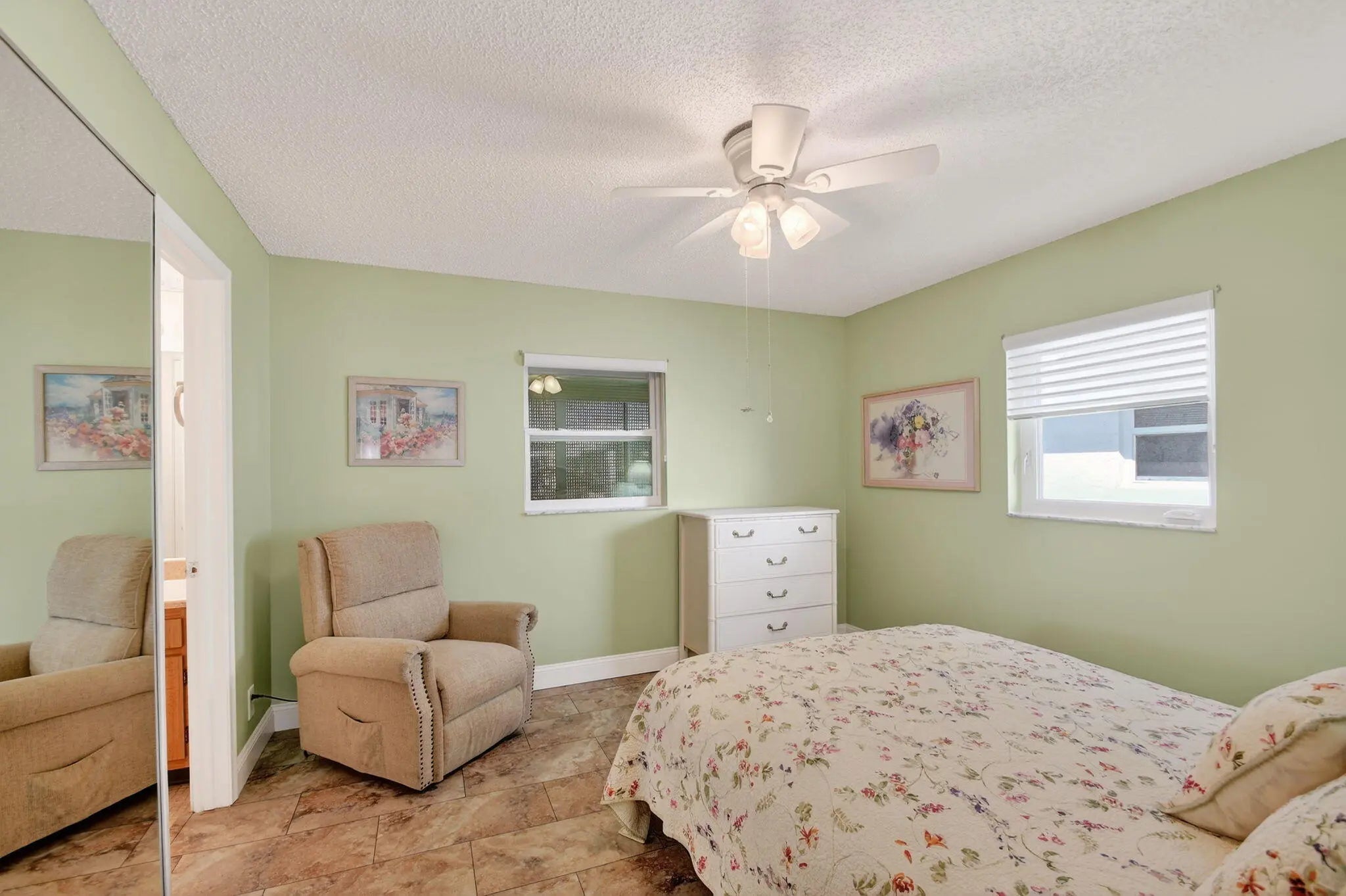 SPACIOUS & BRIGHT! 2BR/2BA Single Family Home in the Active 55+ community of Boynton Leisureville! Move-in ready, freshly painted, meticulously maintained! Popular Regis Model, 1-car garage & double driveway offering many upgrades. Luxury vinyl flooring, new baseboards and IMPACT WINDOWS throughout. Kitchen w/newer appliances, equipped w/extra cabinet space & new stainless farmer's sink. Upgraded window trmnts w/zebra & remote blinds allow for desired lighting. Walk-in closets w/custom built-ins. Primary features a luxurious walk-in Jacuzzi style bath for exceptional ease and comfort. Large screened-in lanai w/a wide open garden view, perfect for entertaining! Front patio is perfect for enjoying your morning coffee. Roof 2014/AC 2023/Tankless HWH. Two blocks to the clubhouse! Offered ... furnished/unfurnished to accommodate various needs. Boynton Leisureville offers an exceptional lifestyle with resort-style amenities and plenty of activities! Low HOA! Pets welcome. Minutes to the beach, Convenient to 95, Shopping, a vast array of Restaurants and vibrant Downtown Delray's Atlantic Ave. A must see!