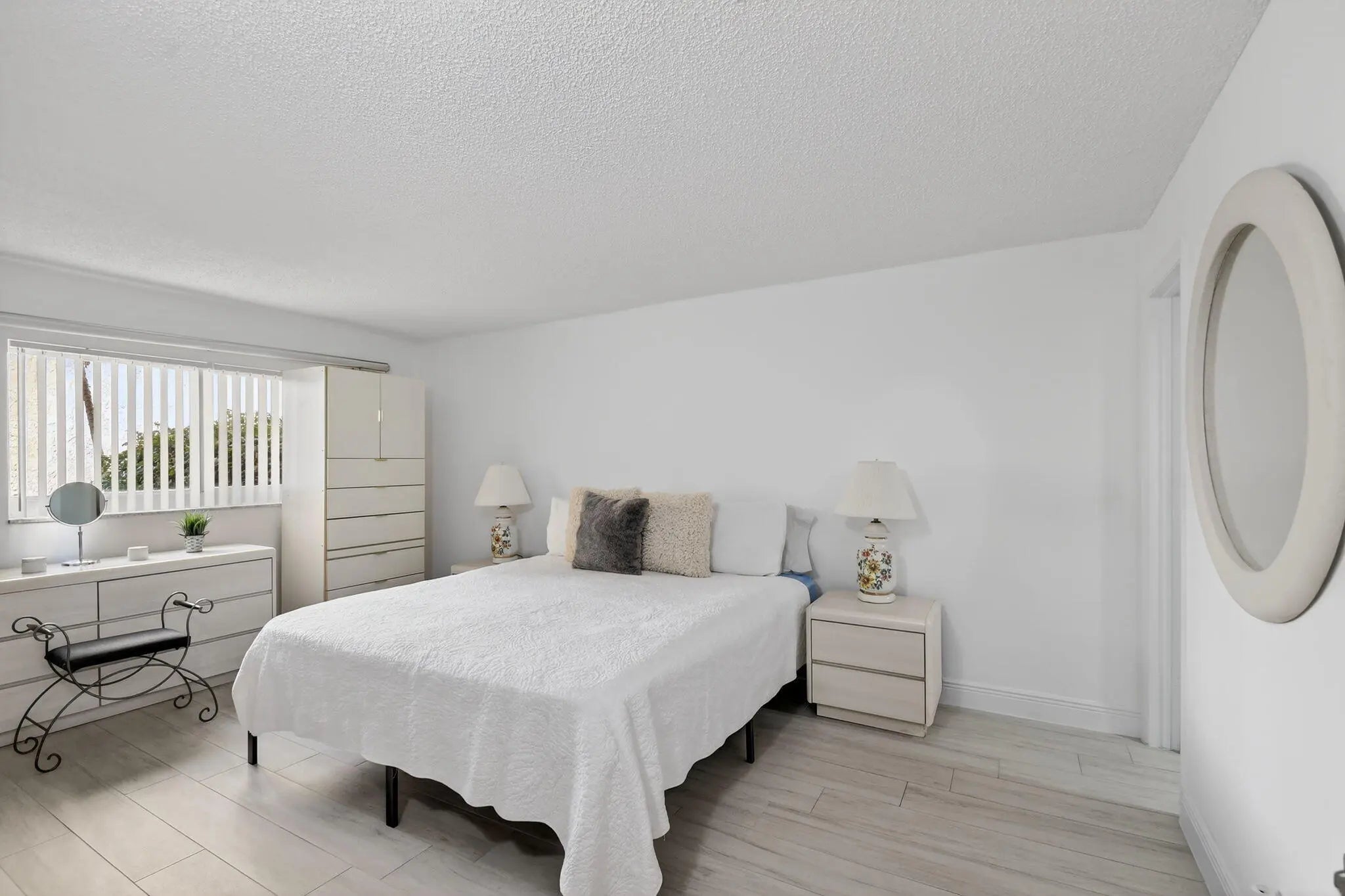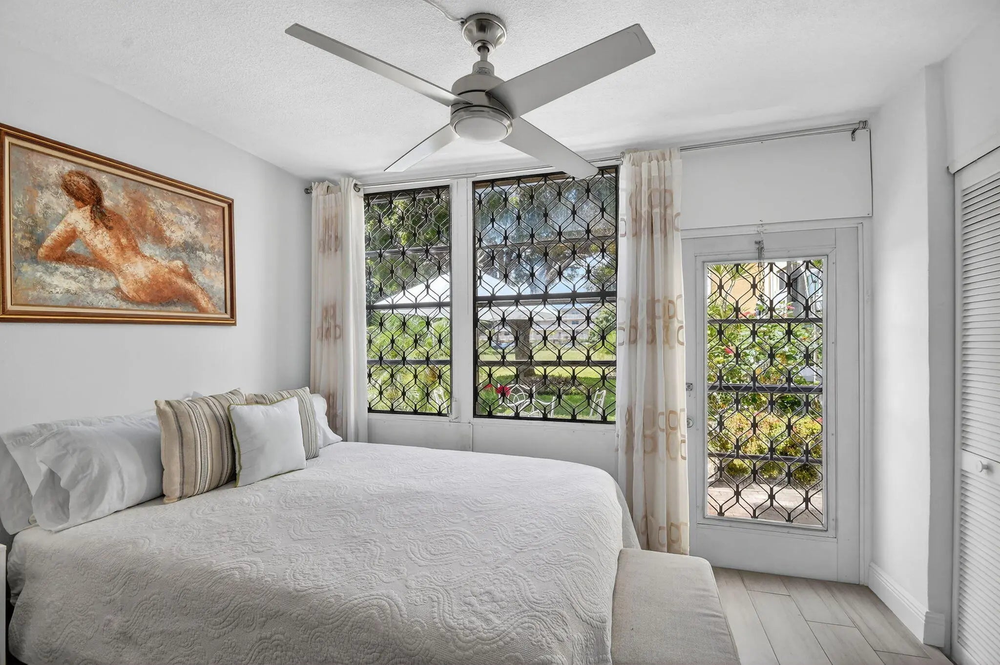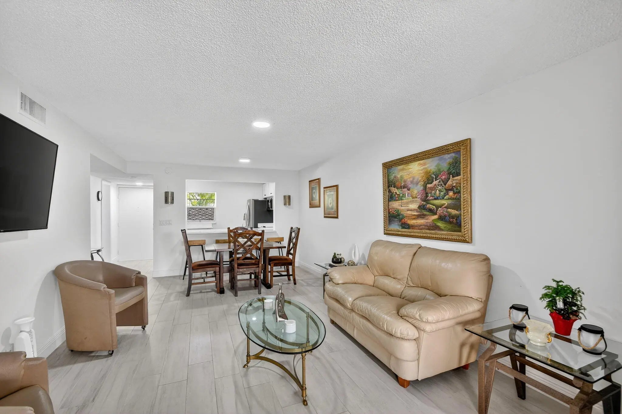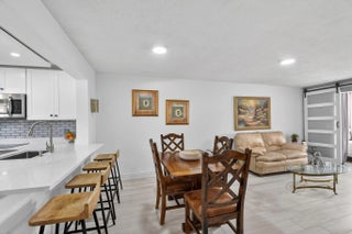 Ground floor, Parking right in front of your door, Updated with a beautiful patio w garden view and private. Completely updated! bedroom + DEN and 1.5 bathroom, with This home offers a bright and open floor plan with beautiful and serene garden views and a BBQ Area. Beautiful brand new kitchen featuring shaker cabinets, sleek quartz countertops with extra space for barstools area, new SS appliances and LED lights. New neutral porcelain wood-looking tile throughout the whole unit. Remodeled bathrooms, Fresh Paint. Concrete roof, New barn doors dividing Living room from the the lFlorida/Porch area. fantastic 55+ community with two clubhouses, two pools , Spa, Theater, Gym, Tennis/Pickeball courts, HOA includes Cable, Water, Building insurance, Pest control,