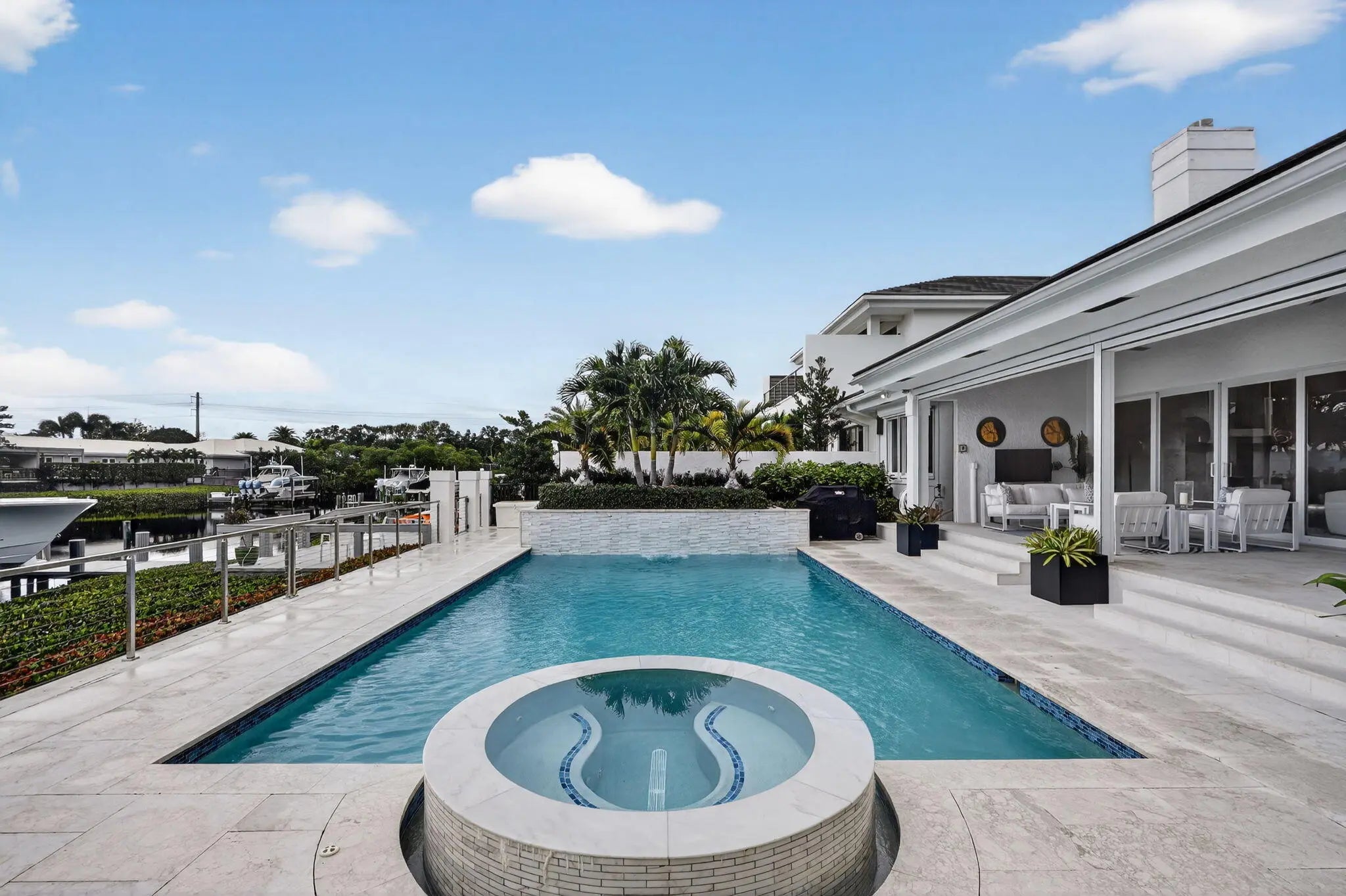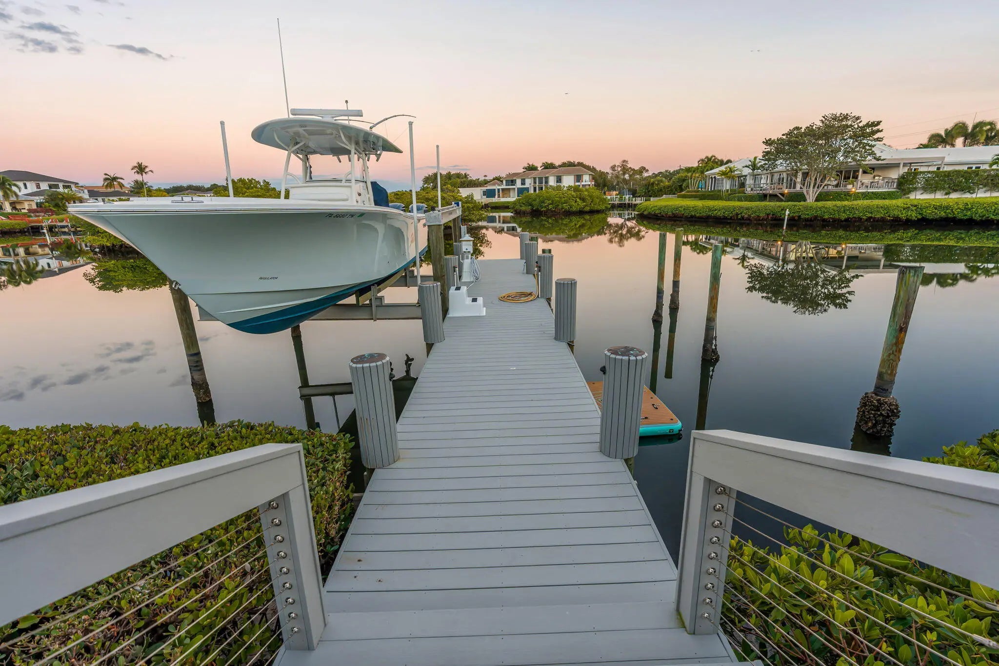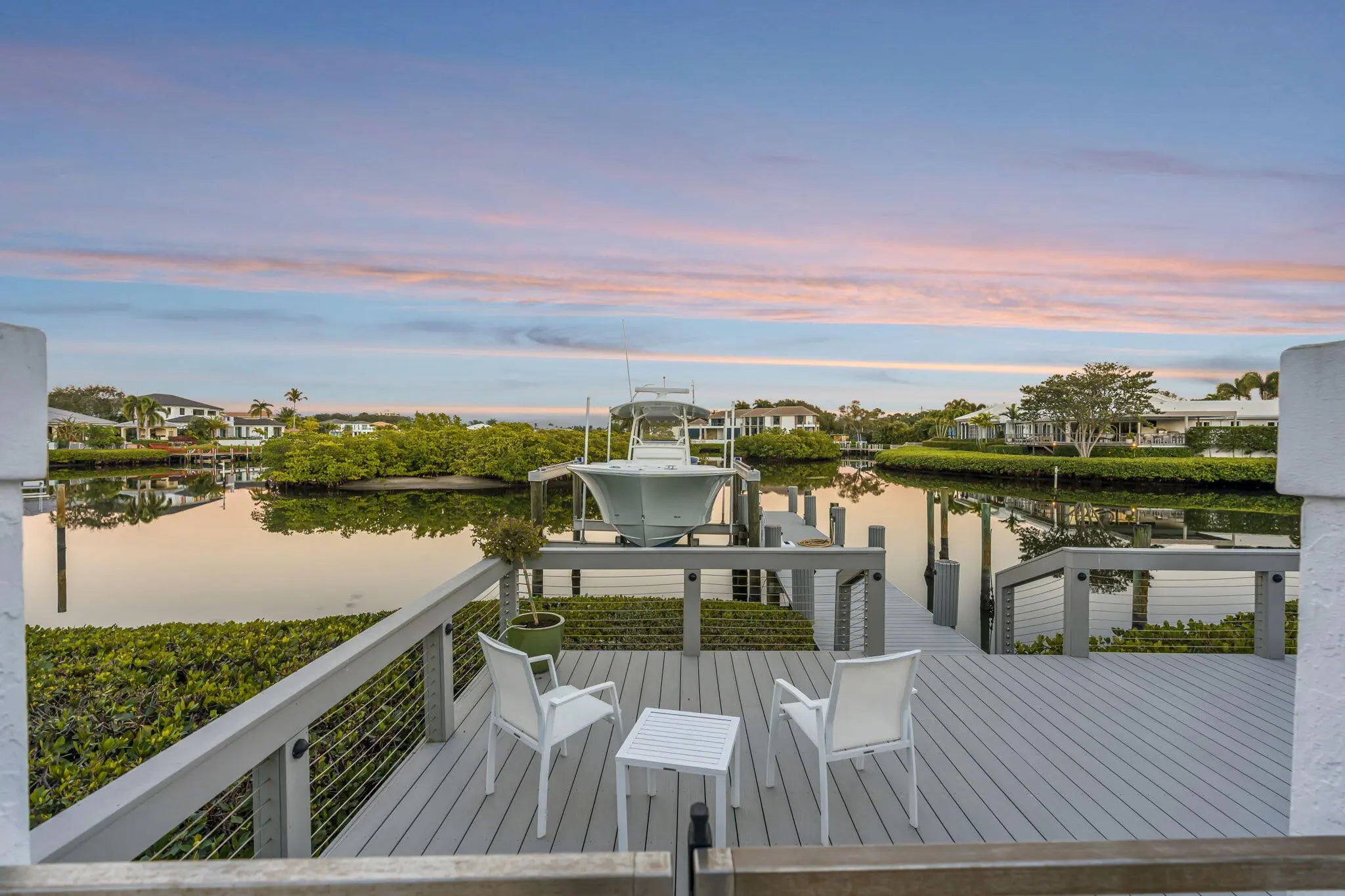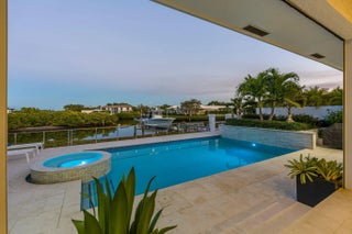 Comprehensively upgraded waterfront 3BR/3BA residence, each bedroom en suite, w/significant capital improvements completed 2022-2025. New roof (2023/2024). Newly constructed dock w/upland seating area, full-service pedestal (water/power/lighting) & 24K lb boat lift. Renovated saltwater pool & spa finished with new patio pavers & cable rail system. Retractable screens create seamless indoor-outdoor living. Complete reimagining of hardscape and landscaping w/new irrigation & architectural lighting. New driveway & statement front entry. Exterior paint '23. Custom interior bar w/built-in cabinetry. HVAC replaced '25 & whole attic dehumidification system installed. Private dockage w/direct access to open water, complemented by 45 holes of championship golf & the full luxury club amenities. While information is believed to be accurate, it is provided without warranty and is subject to errors, omissions, prior sale, or withdrawal without notice. All measurements and representations should be independently verified.