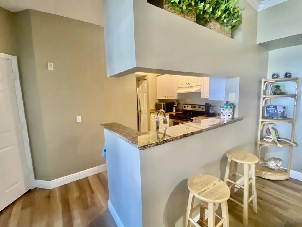 Secure your perfect off-season escape with this beautifully appointed turnkey rental in the heart of the Sunshine State! This inviting 2-bedroom home features a vibrant, colorful coastal interior that creates a warm and cheerful atmosphere throughout. Fully stocked and move-in ready, all you need to bring is your bathing suit before heading to the beach just a half mile away. The primary bedroom offers a comfortable queen bed, while the second bedroom features two lounge chairs that easily convert into beds, providing flexible sleeping space. Enjoy peaceful mornings with coffee on your private balcony overlooking stunning intracoastal views, and spend afternoons poolside grilling while watching boats and yachts pass by. High-speed internet is included.. The amenity-rich clubhouse offers pickleball, tennis and basketball courts, billiards, and a relaxing jacuzzi. Located in a quiet, gated community close to waterfront dining and just minutes from popular shopping, restaurants, and beaches. This home also includes a designated garage parking space. Off-season rental available June 1 - December 1.