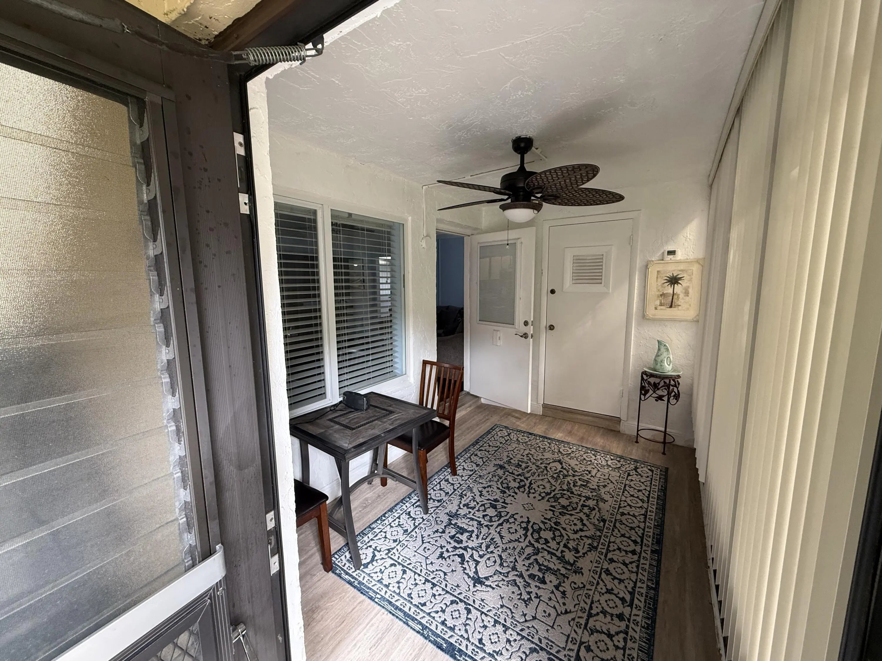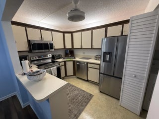 This move-in ready first-floor corner condo offers 2 bedrooms and 1.5 baths, combining comfort and convenience. The home features impact windows, window coverings, crown molding, and has been meticulously maintained throughout. The well-appointed kitchen is fully equipped and functional, while the spacious laundry room includes a pantry and additional cabinetry for extra storage. A fantastic opportunity to enjoy easy Florida living