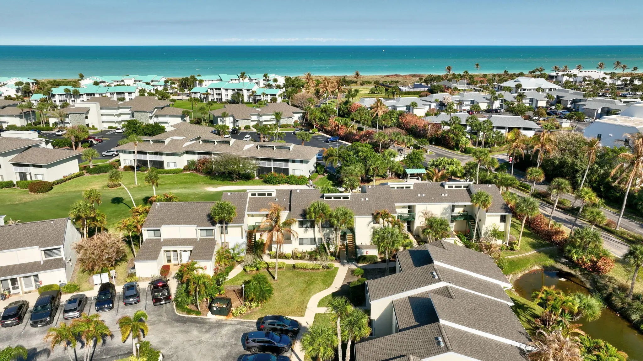 Beautiful first-floor corner unit in the resort-style community of Ocean Village. This inviting condo features a desirable split-floor plan, offering privacy and comfort for residents and guests alike. Enjoy tranquil pond views from your living space and relax on your private patio overlooking the lush golf course — the perfect setting for morning coffee or evening unwinding. Experience the laid-back coastal lifestyle on Hutchinson Island, where pristine beaches and ocean breezes await. And when you're ready for dining, shopping, and entertainment, take a short drive to vibrant downtown Fort Pierce and indulge in a variety of cuisine and local charm.