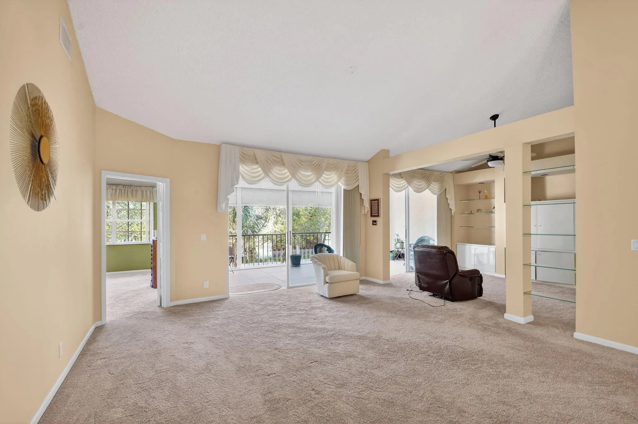 Lovely 2 bedroom, 2 bath residence with soaring vaulted ceilings and peaceful water views, located in the desirable Briarwood community at Indian Spring, a non-mandatory Country Club. Enjoy tranquil mornings and relaxing evenings from your enclosed balcony with preferred eastern exposure. The split-bedroom floor plan offers ideal privacy for guests, while the spacious eat-in kitchen features plenty of cabinetry and a large pantry. A full-size washer and dryer add everyday convenience, and both bathrooms have been beautifully updated with stylish finishes. Ideally situated just minutes from shopping, dining, golf courses, and pristine beaches, this home offers the perfect blend of comfort, space, and convenience in a resort-style setting. Briarwood at Indian Spring provides residents with access to pools, a clubhouse, and a variety of social activities in a secure and vibrant 55+ community. Don't miss this opportunity to enjoy the best of the South Florida lifestyle.