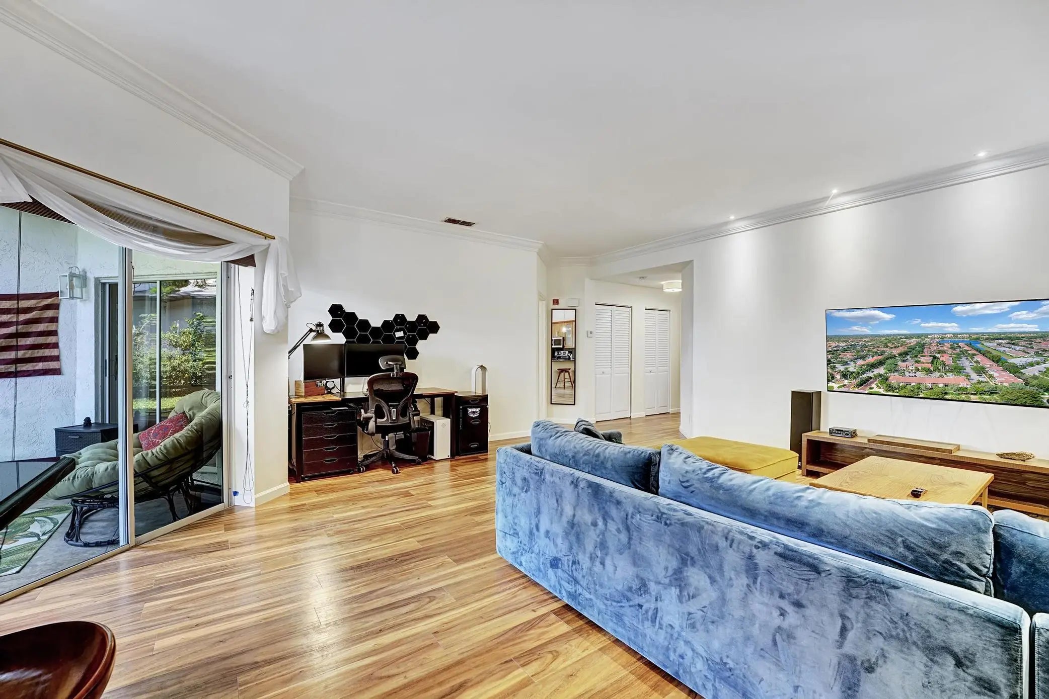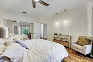 Pristine, renovated in 2024, ground floor 2-bed, 2-bath condo, minutes from Downtown Mizner & the beach! Tranquill surroundings and manned gate! New flooring throughout (high-end waterproof laminate), fully renovated high-tech bathrooms (imported tile, timer-operated fans, superior waterproofing). Eggshell ceilings, crown moldings, recessed lights in the living room. Impressive closet space and a walk-in closet in the master bedroom. There is outside storage and paved space for equipment, etc. Sizable patio in the back, grills permitted. 2023 AC and 2024 dishwasher, new Samsung washer/dryer. New roof 2023, 38 gallon water boiler 2025. Assigned to Verde K-8 school, top 10 in PB County! Don't miss this renovated move-in-ready home in the prestigious location with A-rated Schools