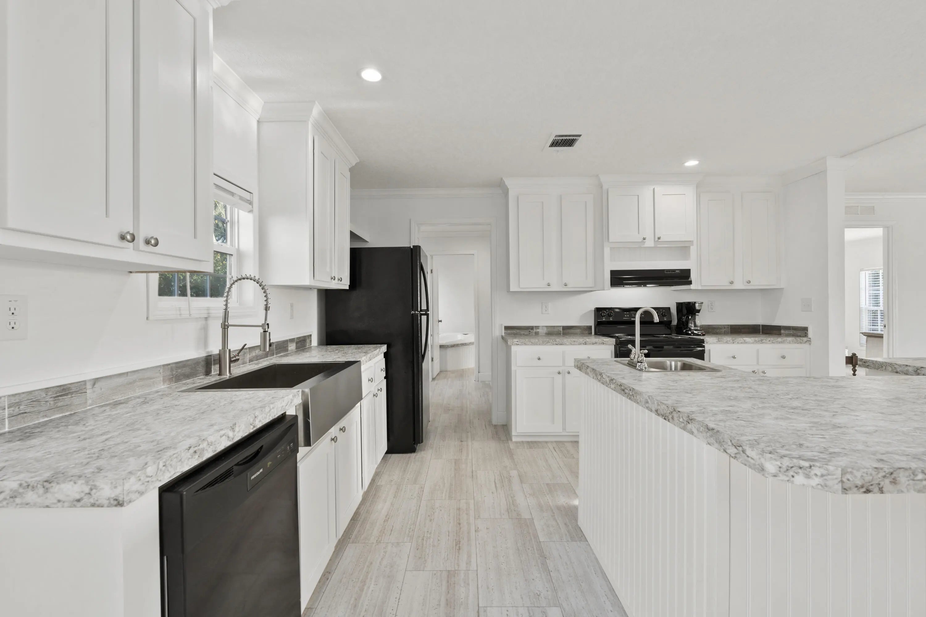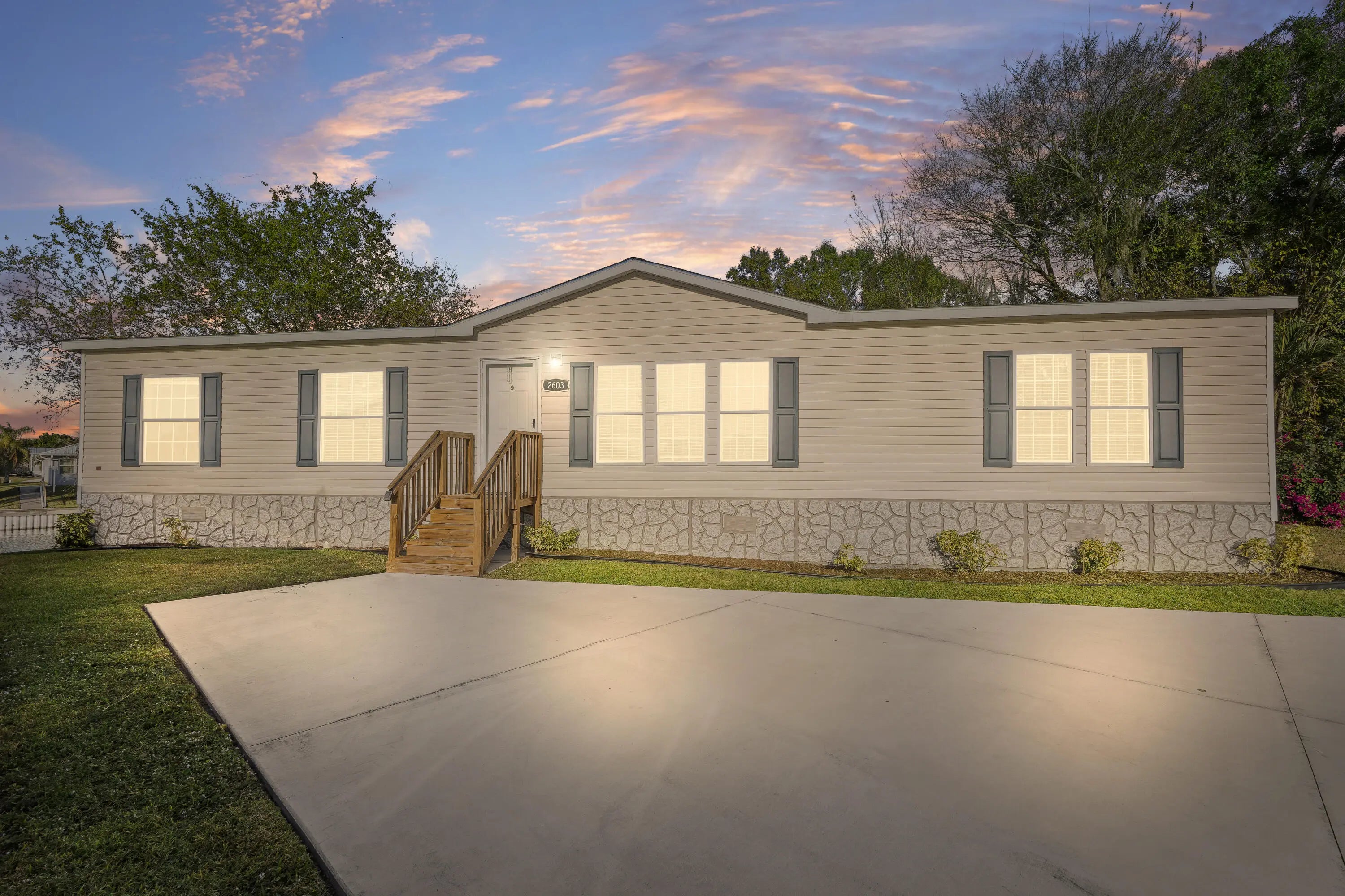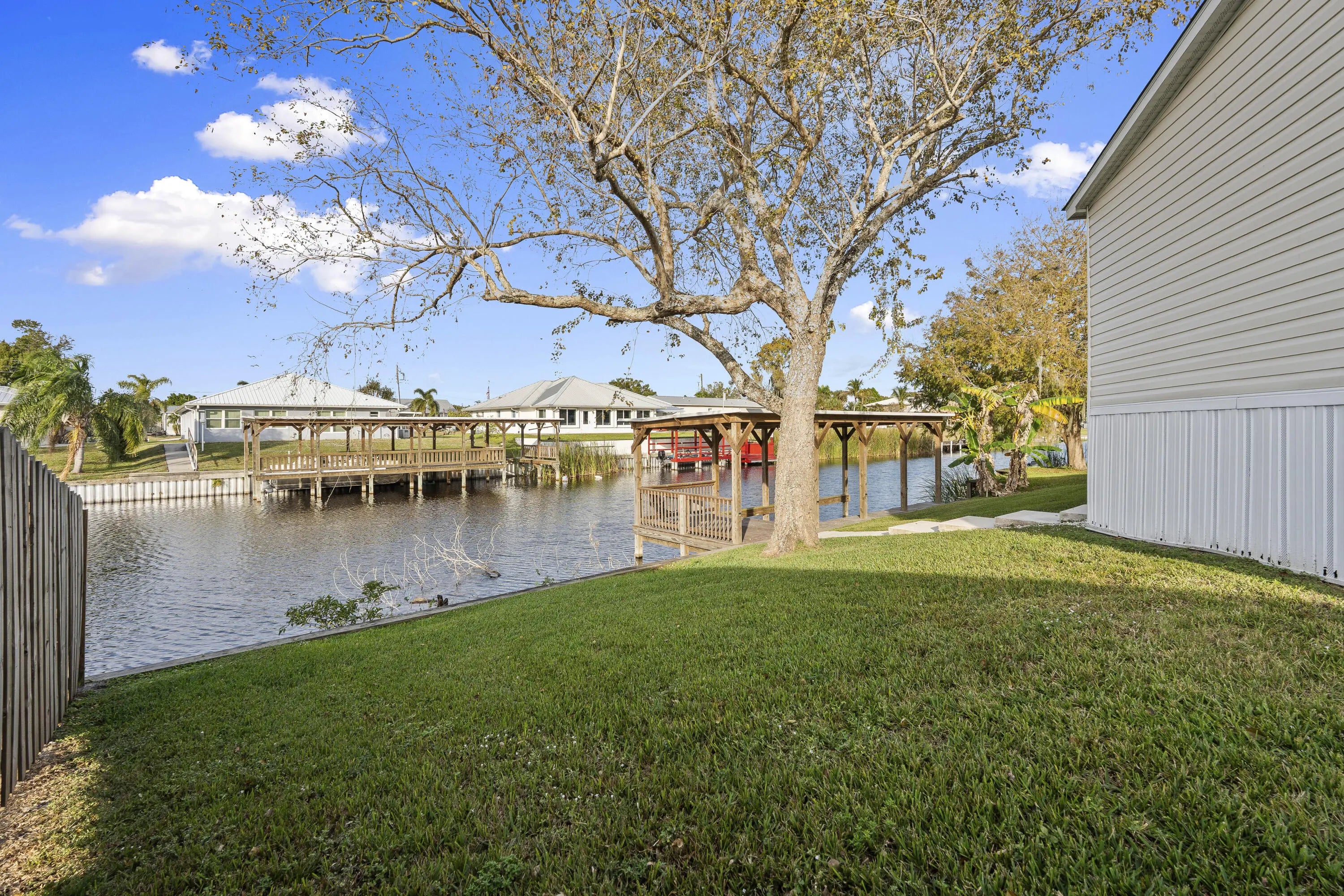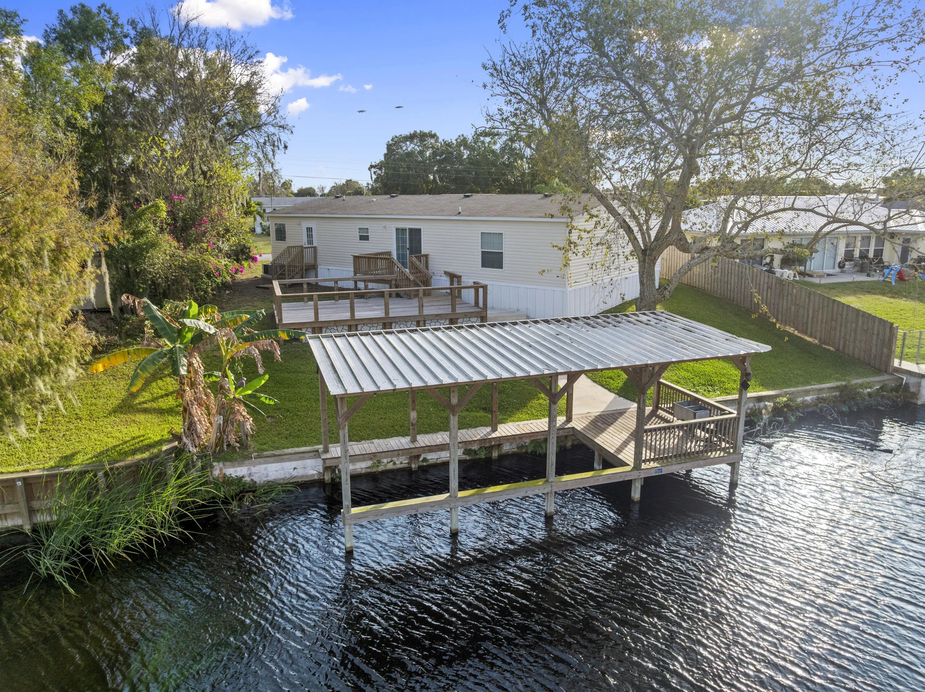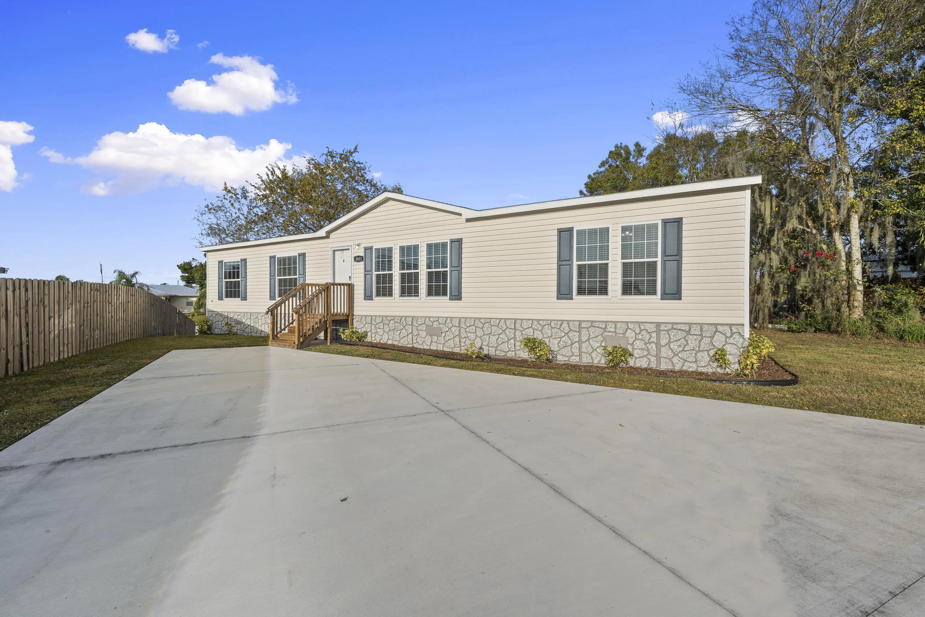 2023 4Bed 2Bath Newer Manufactured Home located on Taylor Creek Isles with Lake Okeechobee Access. 75' on Taylor creek with 30' Covered Boat House, dock & concrete seawall. Large 13'x24' pressure treated wood deck is great for entertaining. Kitchen features White cabinets with apron sink, crown mold, High hat led lighting, Island breakfast bar with prep-sink, black appliance package. Special features include Open concept, split bedroom floor plan, crown molding, window treatments, Primary suite offers walk-in closet, carpet floors & crown molding. Main bath has dual sinks, large soaking tub & shower with glass doors. This home was built to wind zone 3 better than required building code. Large concrete driveway & sidewalk to boat dock. 2023 Roof, 2023 A/C & 2023 Water Heater.