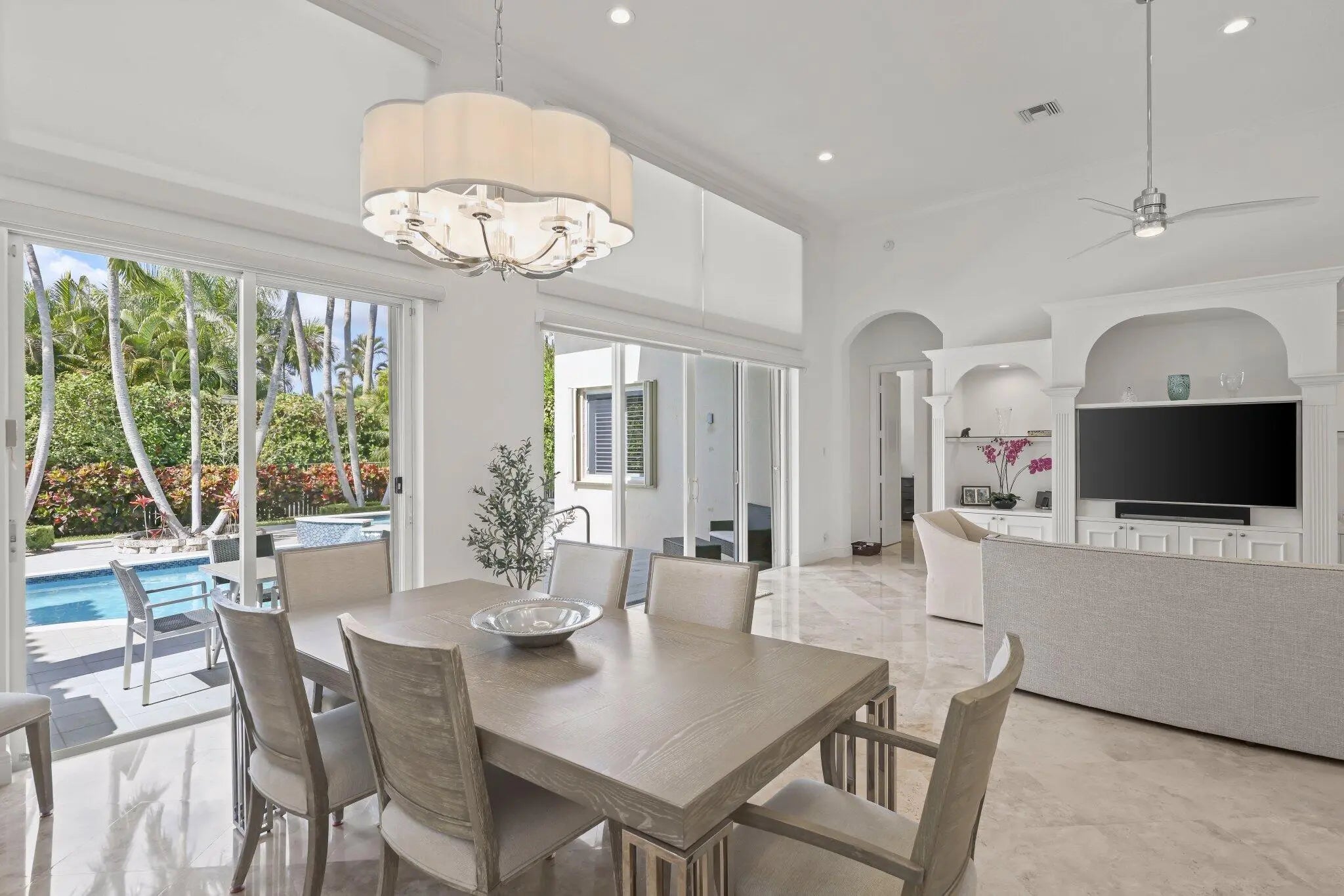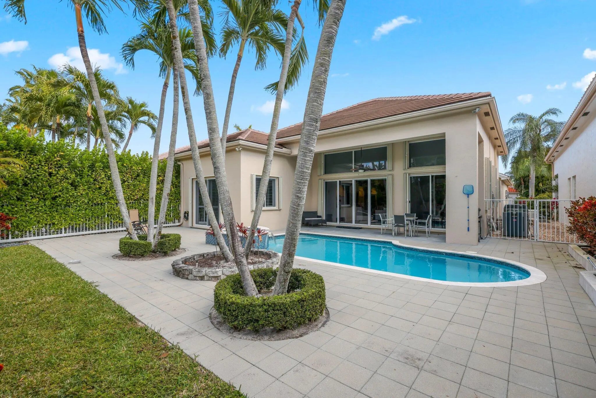 This elegant one-story residence located in Boca Grove Country Club offers 3 Bedrooms/3.5 Baths plus an office and den in a thoughtfully designed split floor plan. Open living areas showcase a great room with custom wall unit overlooking a lushly landscaped, private backyard retreat. The chef's kitchen features a five-burner gas cooktop, stainless steel appliances and quartz counter tops. The spacious primary suite includes dual closets and a luxurious bath, while two additional guest bedrooms offer ensuite baths. Enjoy a heated saltwater pool and spa with an expansive patio ideal for entertaining or relaxing outdoors. A full house generator and three year old roof provide added peace of mind. Ideally located near fine dining, great shopping and houses of worship.