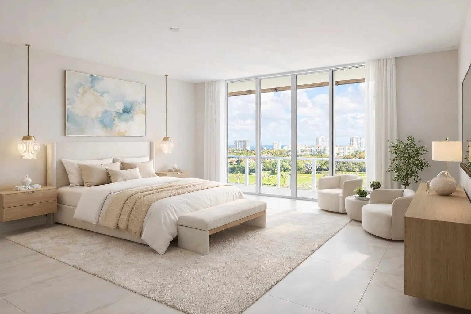 Elevated penthouse living at ALINA Residences in the heart of downtown Boca Raton. This exceptional 3-bedroom plus den, 3½-bath residence offers 11-foot ceilings, private elevator entry, and refined modern design throughout. The east-facing layout captures gorgeous ocean views from the primary suite, complete with a private morning bar for effortless starts to the day. Finishes include large-format porcelain tile floors, quartz countertops, and a chef's kitchen with premium Gaggenau appliances. A pet-friendly, full-service 5-star building featuring a dedicated dog park and resort-style amenities, just moments from the beach, dining, and culture.