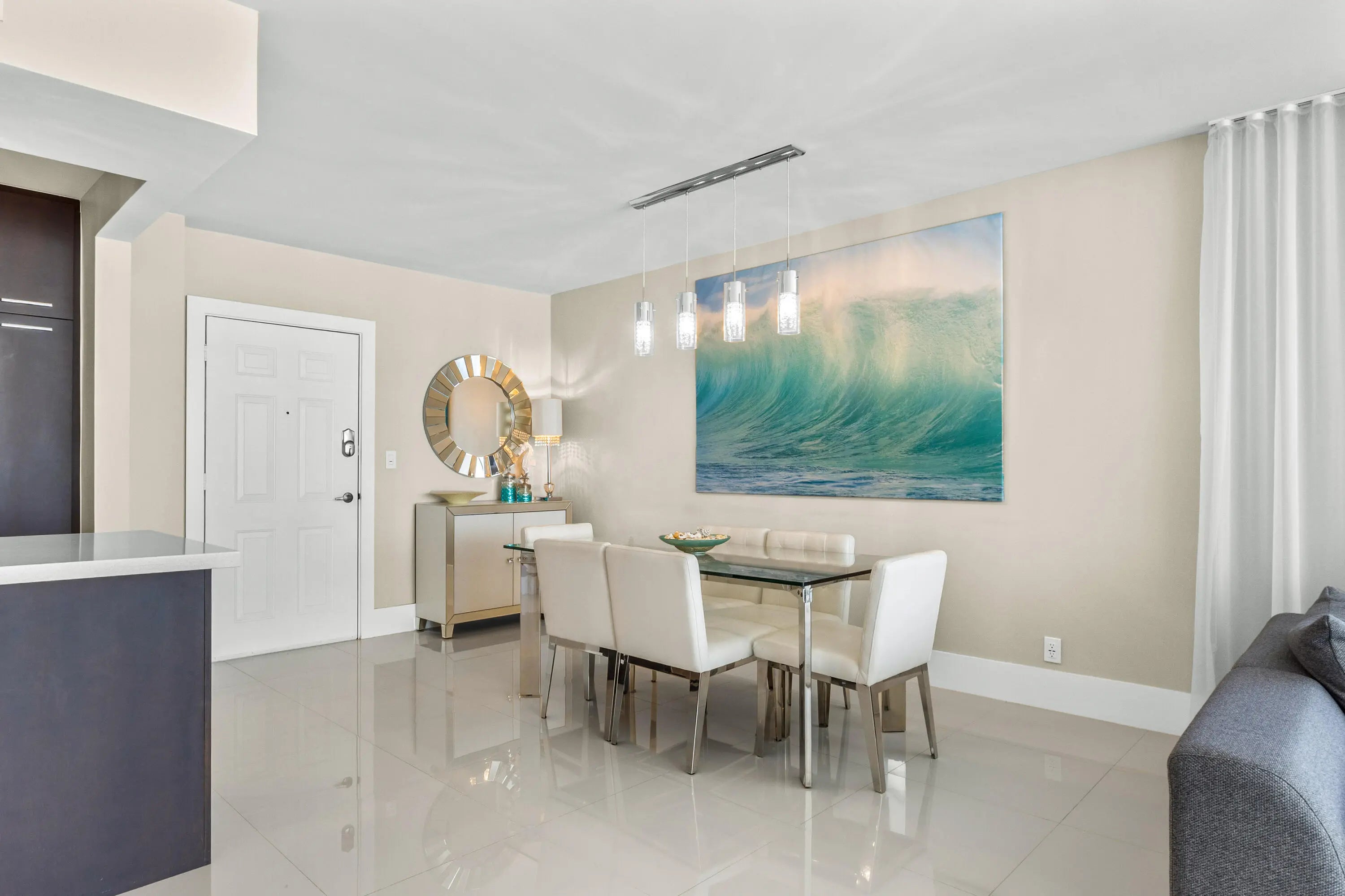 SPACIOUS 2-BEDROOM, 2-BATH HIGH-FLOOR CORNER RESIDENCE - COMPLETELY RENOVATED! Bright and expansive oceanfront corner unit featuring an oversized wraparound balcony with breathtaking direct ocean and Intracoastal views. Enjoy spectacular sunrises over the Atlantic and stunning sunsets from the comfort of your private balcony, true South Florida coastal living at its finest. Fully renovated with an open-concept kitchen showcasing quartz countertops, custom cabinetry, and high-end finishes throughout. Custom built-ins and a private in-unit laundry closet add both style and convenience. Ideally located just steps from the iconic Hollywood Beach Broadwalk, dining, shopping, and entertainment. Welcome to The Wave Lifestyle, one of the most exclusive luxury beachfront buildings offering exceptional value. Resort-style amenities include a newly remodeled oceanfront pool deck surrounded by lush palm trees and fountains, an infinity-edge pool, a waterfall Jacuzzi, a state-of-the-art fitness center overlooking the ocean, complimentary beach and pool service, 24-hour valet, on-site restaurant, and mini market. Experience luxury coastal living at its finest.