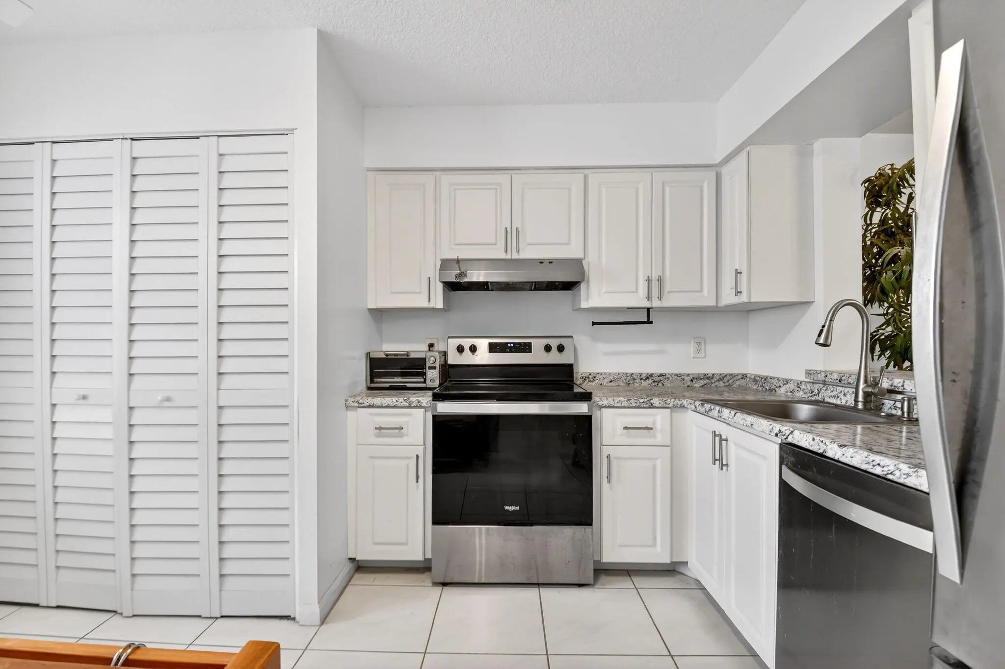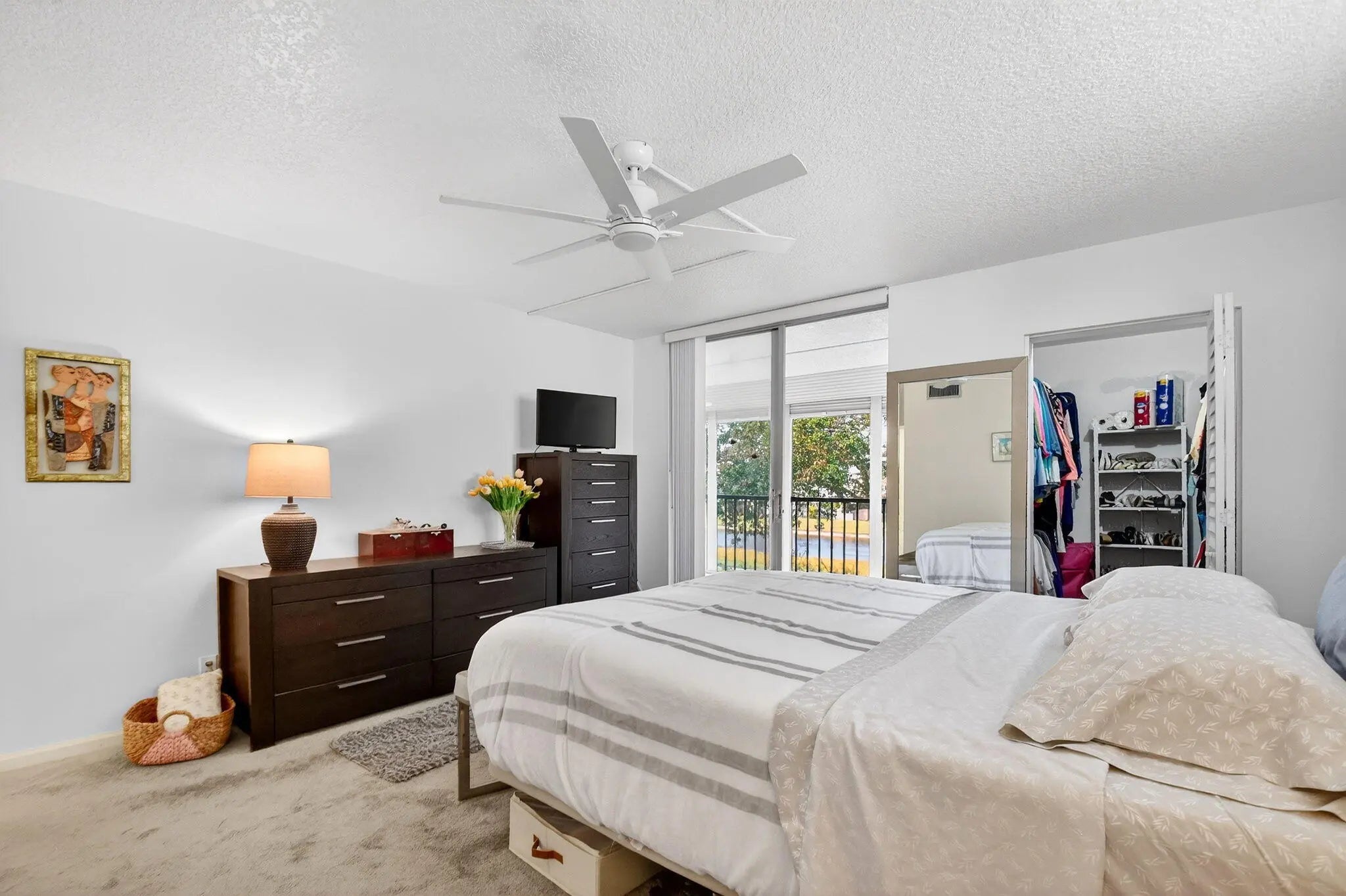 Last price reduction. Corner 2/2 condo (lots of natural light!) a view of water, trees and a fountain invites you to quietly relax in your covered, screened-in balcony. Beautifully upgraded with newer kitchen cabinetry, newer s/s appliances, a newer electric panel, newer washer/dryer, newer bathroom vanities, newer comfy carpet in the bedrooms and no popcorn. Durable and waterproof (unlike laminate) 18'' ceramic tile is underfoot in the living area Other features include newer ceiling fans, hurricane accordion shutters on the front and pull down shutters on the balcony. Amazing location of 55+ Deauville is practically a straight line to downtown Delray, the turnpike and the Delray Marketplace. Amenities are less than a 5 minute walk away. No special assessments. Cash only please. Amenities include a new clubhouse for gathering with friends and neighbors, a community pool, tennis, pickleball and shuffleboard.