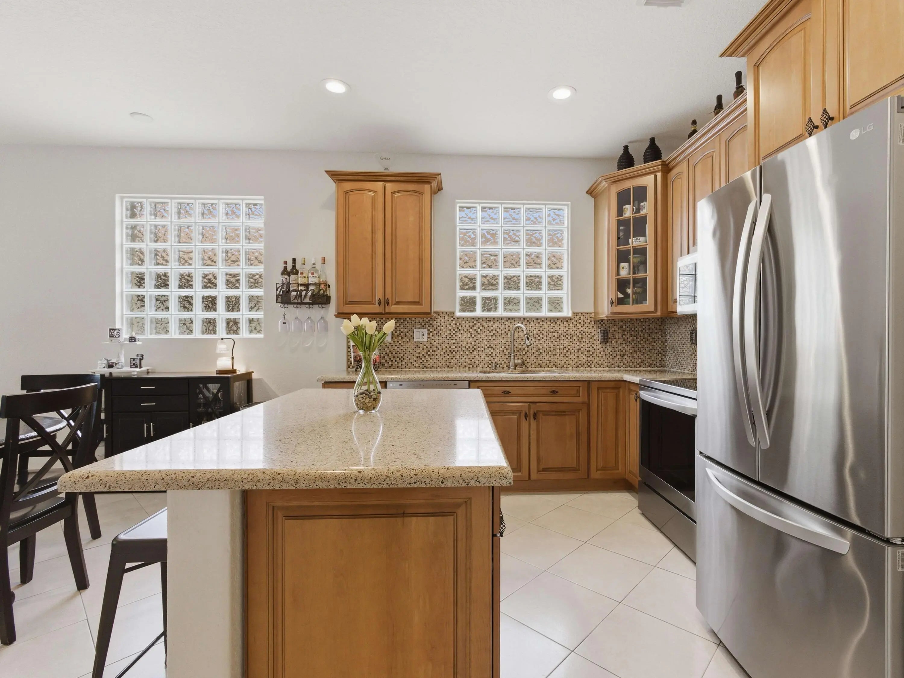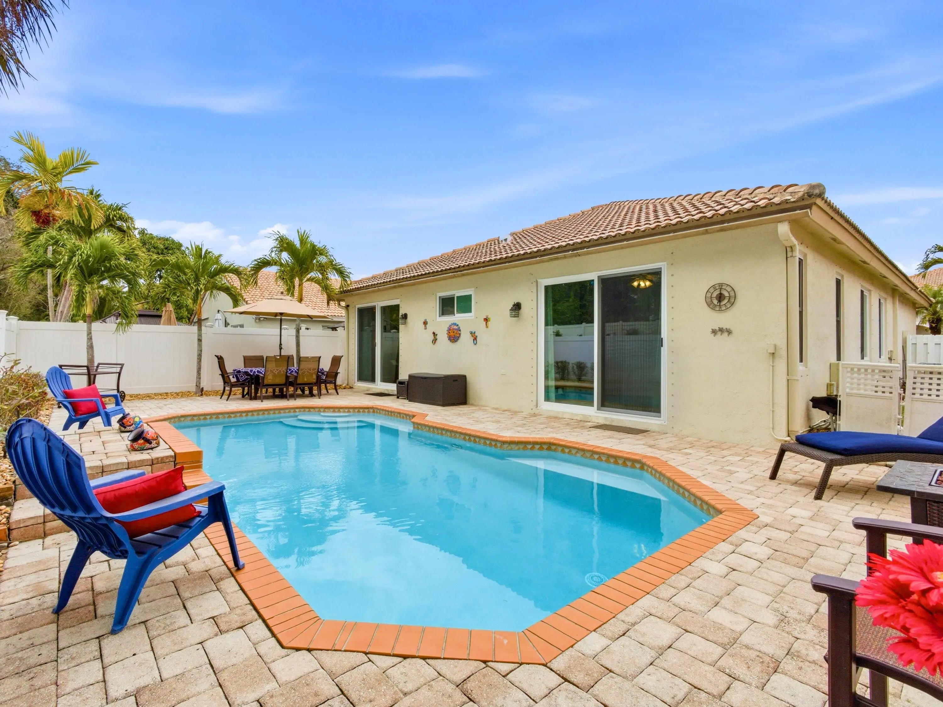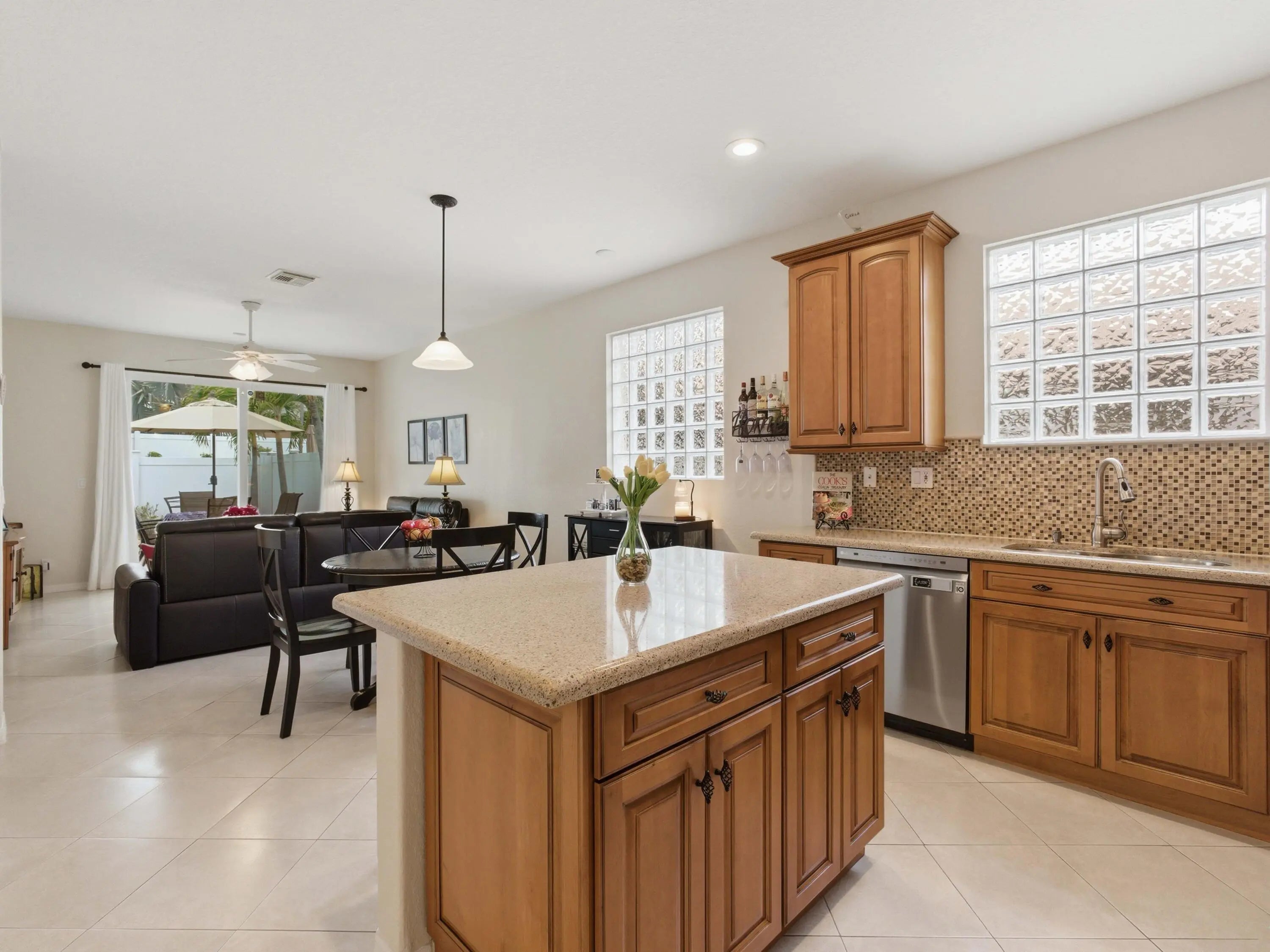 Step into a home where pride of ownership shines in every detail, impeccably clean, beautifully maintained, and nestled within a desirable GATED COMMUNITY that offers both privacy and peace of mind. The welcoming front door opens to a lovely living and dining room combo, where natural light fills the space and an ELEGANT ARCHED WALL NICHE creates the perfect focal point for your favorite décor. The layout flows effortlessly into the beautifully renovated kitchen, a true showpiece featuring BRAND NEW STAINLESS STEEL APPLIANCES, rich WOOD CABINETRY with glass accents, a LAZY SUSAN, PULL OUT POT DRAWERS, a spacious PANRY, a center ISLAND with sleek SILESTONE COUNTERTOPS highlighted by an elegant tile backsplash, the ideal setting for everyday living and memorable gatherings. The adjacent comfortable family room invites you to relax, while stylish GLASS BLOCK WINDOWS in the main living areas provide enhanced insulation, privacy and perfect natural light. And for extra value and security, all WINOWS AND DOORS ARE IMPACTED RATED AND HURRICANE PROOF. FRESH INTERIOR PAINT AND VYNIL FENCE THROUGHOUT. The generously sized bedrooms offer comfort for everyone, and the primary suite is your personal retreat, completist sliding doors that showcase a stunning POOL VIEW. The UPDATED BATHROOMS add a modern touch, with the master bath featuring DUAL SINKS, a ROMAN TUB, and a separate shower for a spa-like experience. Throughout the home, you'll find TILE FLOORING and timeless Spanish lace texture, creating a clean, elegant, and cohesive look. Step outside to your own private oasis, an inviting POOL DIAMOND BRITE RESURFACED in 2026 for a sophisticated outdoor experience. ADDITIONAL HIGHLIGHTS are a NEWER 2019 A/C for a perfect climate and BRAND NEW SMOKE DETECTORS CONNECTED TO A FIRE ALARM. Ideally located just minutes from major shopping, dining, and entertainment, with fast, easy access to main roads and highways, giving you the perfect balance of convenience and exclusivity within a secure gate setting. This is more than a home, it's a lifestyle.