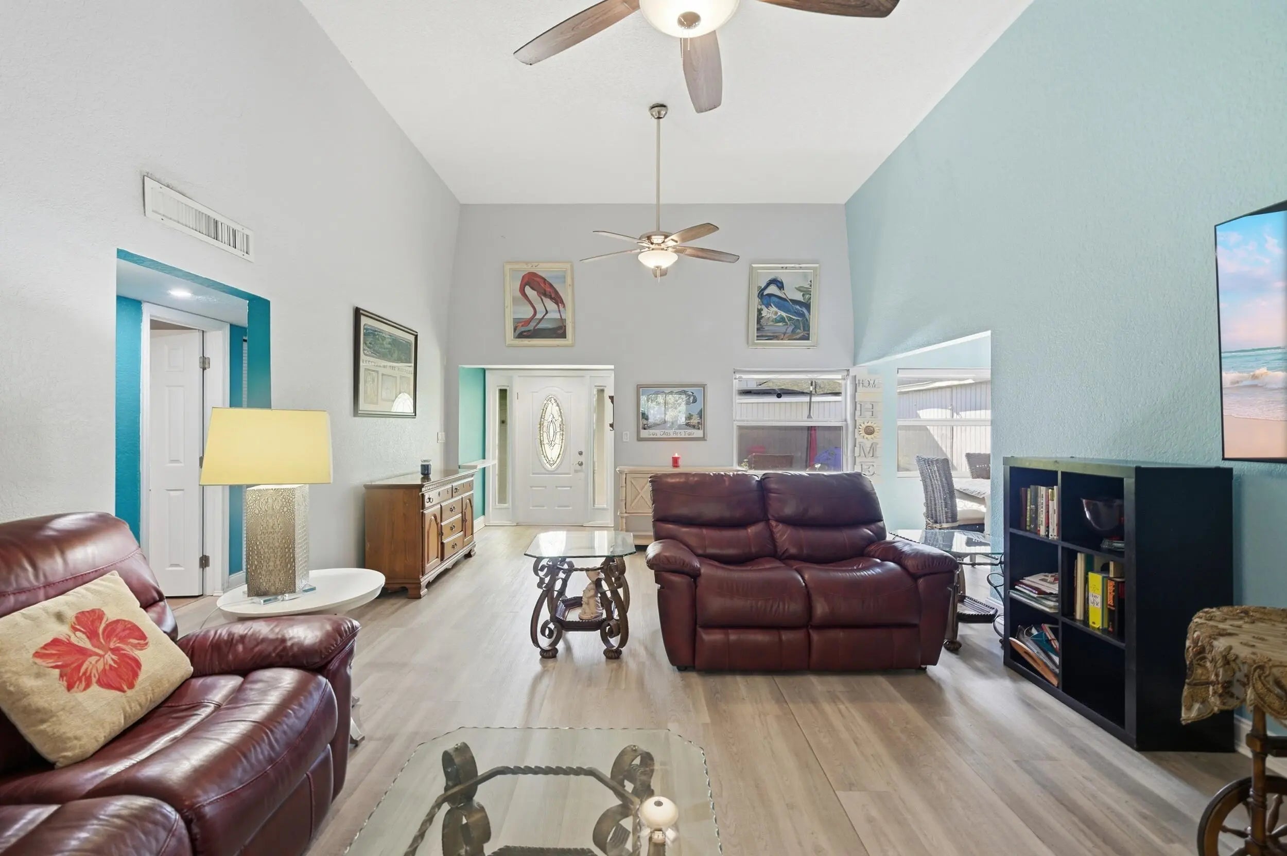 Located in the desirable Woodlands community, this CBS home offers comfort, space, and great potential. Enjoy a new 2025 roof, laminate floors throughout, an updated kitchen with quartz countertops and stainless steel appliances. The primary suite features a newer bathroom with subway tiled walls and three walk-in closets, the second bathroom features some updates. A front open patio offers wraparound storage, or enjoy an oversized screened-in patio in the backyard for relaxing. Additional highlights include impact windows and shutters, oversized laundry room, Florida room with AC split, potential for a 3rd bedroom, and one-car garage. Low HOA of only $129/month. Seller motivated--bring your vision! BRING ALL OFFERS
