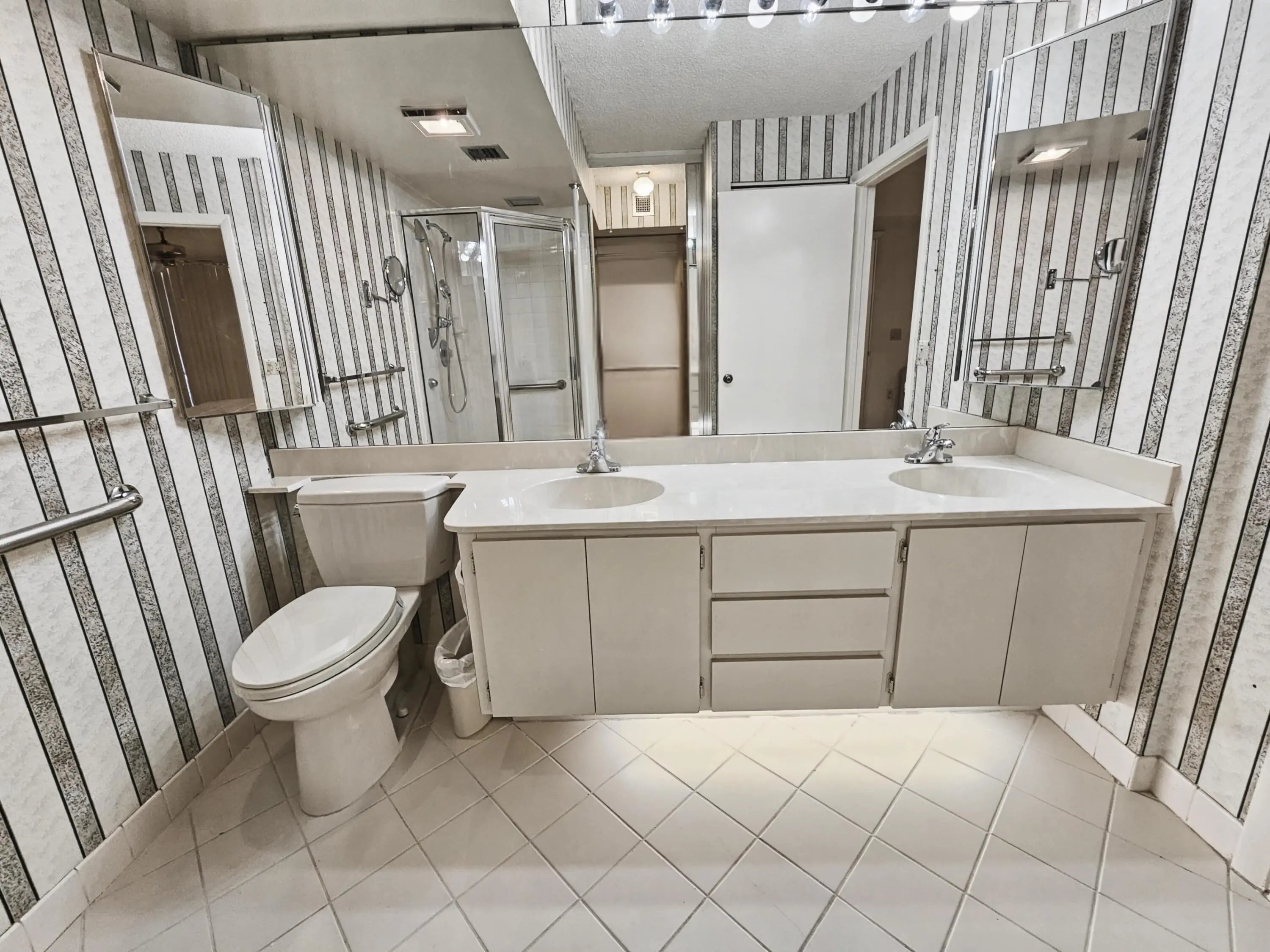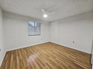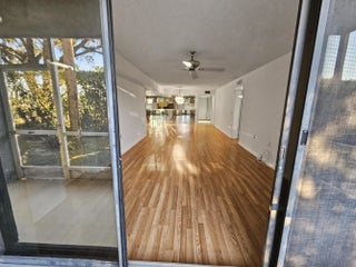Welcome to your serene sanctuary nestled within the vibrant Villages of Palm Beach Lakes - Whitehall community. This spacious, move-in ready, meticulously clean and freshly painted 2-bedroom, 2-bath condo offers the perfect blend of comfort and convenience. Upon arrival, you'll find your assigned parking spot conveniently in front of the building. Take a short walk to the corner unit on the first floor. Step inside to discover a bright, open floor plan seamlessly connecting the dining room, kitchen, and living room. The well-appointed kitchen boasts stainless-steel appliances, ample cabinet space and a pantry for additional storage. The living and dining are open and inviting. Slide open the patio doors to reveal your own private, screened patio that backs up to Bear Lakes Golf Course. A large laundry room, complete with a washer and dryer, offers additional space perfect for a home office, bonus room, or extra storage. Across the hall from the kitchen, you'll find a spacious guest room and a full bathroom featuring a shower/tub combo with a vanity and large mirror. Indulge in your private retreat within the oversized master bedroom, complete with a walk-in closet, substantial vanity with new fixtures, and a walk-in shower. The master bedroom also offers a private, screened patio. This home ensures comfort with ceiling fans, promising efficiency in cooling costs. Blinds have been installed on the kitchen and guest bedroom windows, while floor-to-ceiling blinds cover the patio windows. Wood plank flooring covers the main living areas of the home with tile in the kitchen, hallway, and bathrooms. The condo has been freshly painted and everything is very clean. Accordion shutters wrap the entire condo providing a peace of mind during storms. As the owner of this Whitehall condo, you'll enjoy numerous amenities including 4 heated saltwater pools, a fitness center, clubhouse, reading/game room, stocked fishing pond, and even a convenient location to wash your vehicle. Centrally located, this property is only a short drive to Tanger Outlets (2.7 miles), world renowned Palm Beach and Worth Avenue (6 miles), Palm Beach International Airport (6.7 miles), Ballpark of the Palm Beaches (3.4 miles), trendy SoSo District (5.3 miles), Downtown West Palm Beach & Cityplace (4.6 miles), Brightline Train Station (4.9 miles), Belgrove Hotel and the Dutchman's Golf Pipe Golf Club (4.1 miles) and so much more! This easy access makes this condo an ideal home or vacation sanctuary. Residents have the added benefit of access to three parks featuring saltwater pools, playgrounds, exercise trails, general-purpose fields, as well as facilities for bocce ball, racquetball, tennis, and pickleball. Meticulously cared for and ready for a new owner, this property welcomes you to a lifestyle of comfort and convenience. Make this condo your new home - your haven of tranquility awaits!