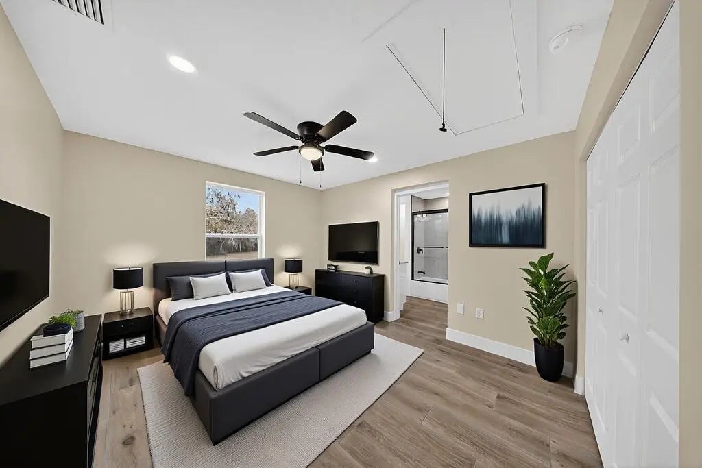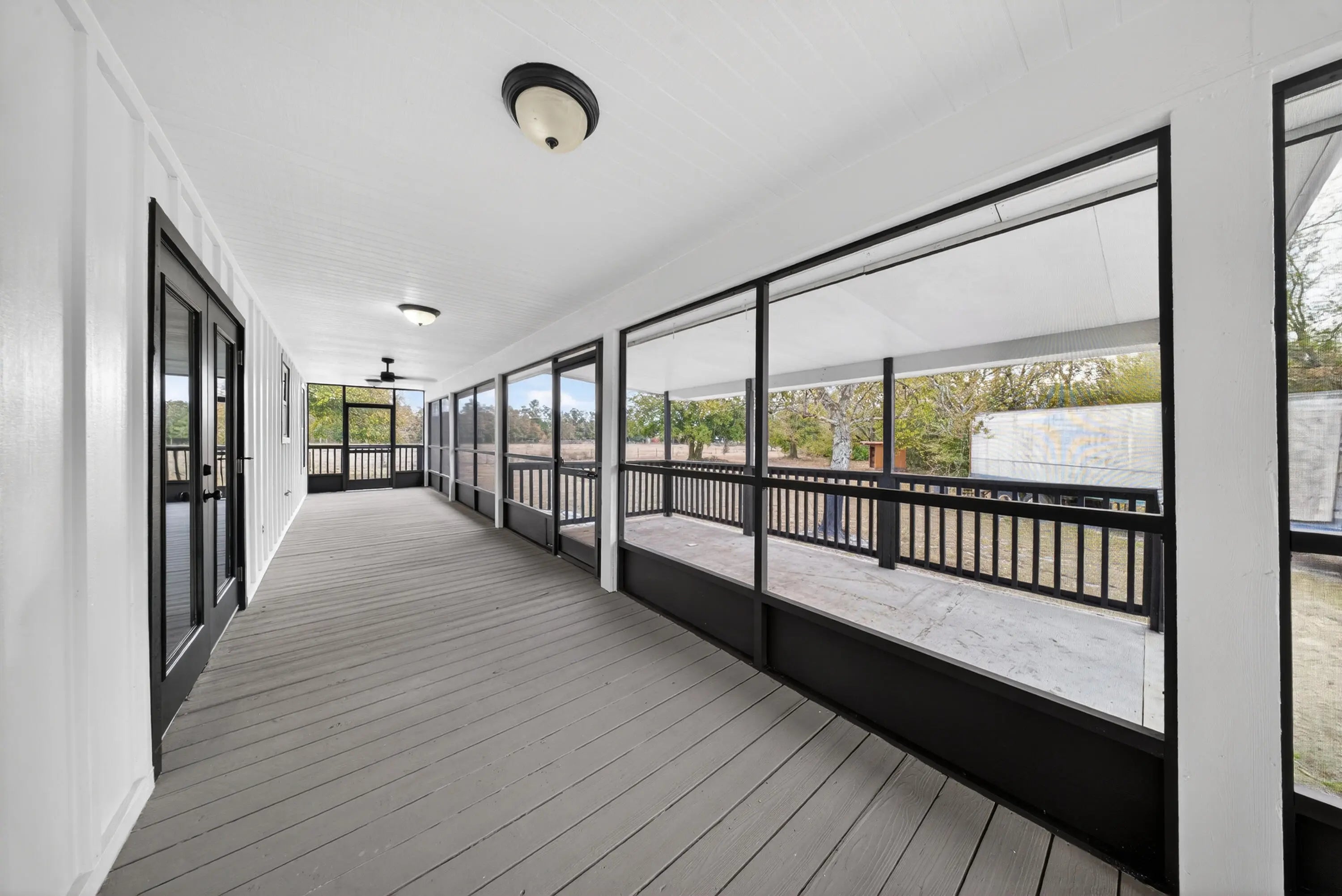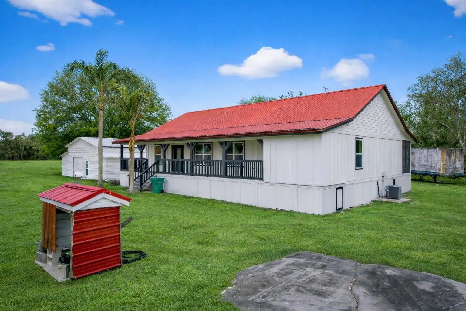 Welcome to your private country retreat on over 3 beautifully maintained acres in desirable Okeechobee! This fully updated 4-bedroom, 3 full bathroom home offers the perfect blend of modern upgrades, functional space, and peaceful rural living. Step inside to discover a bright, open-concept layout featuring brand new tile floors throughout, new drywall, fresh interior paint, and all-new modern lighting that creates a clean, contemporary feel. The spacious kitchen is the heart of the home, showcasing new quartz countertops throughout, sleek white cabinetry, stainless steel appliances, and an oversized island perfect for entertaining or everyday living. The thoughtfully designed floor plan includes two private en-suites, ideal for multi-generational living or guest flexibility, plus a convenient laundry/mud room for added functionality. Outdoor living truly shines here. Enjoy Florida living year-round on the expansive 3/4 wrap screened-in porch, perfect for relaxing while taking in the peaceful surroundings. An additional open rear porch provides even more space for grilling, gatherings, or sunset views. The home also features partial Hardie board siding for added durability and curb appeal. Property highlights continue with a large multipurpose garage/workshop, ideal for hobbies, storage, or equipment, along with wide open acreage offering endless possibilities for recreation, gardening, animals, or future improvements. Major system upgrades provide peace of mind, including; a new A/C system, new water heater, new well pump, new septic system, hurricane impact windows throughout and SO MUCH MORE! With its long private approach, mature trees, and generous cleared land, this property offers the space and freedom that's increasingly hard to find, all while delivering a fully move-in-ready home. Don't miss this rare opportunity to own a beautifully renovated home on acreage in Okeechobee!