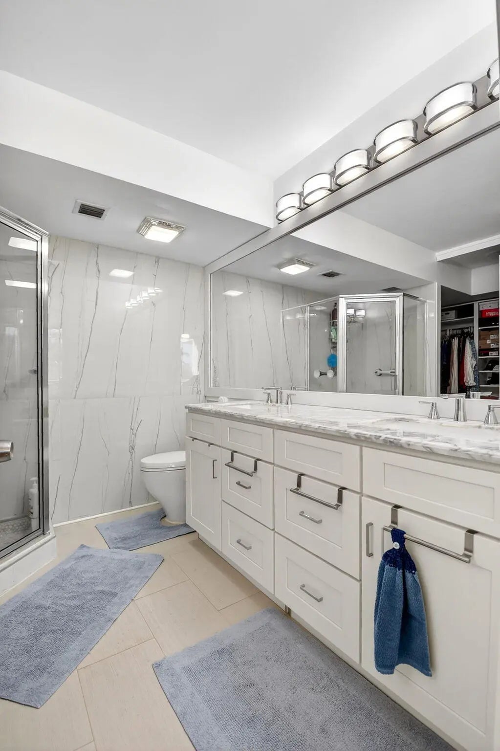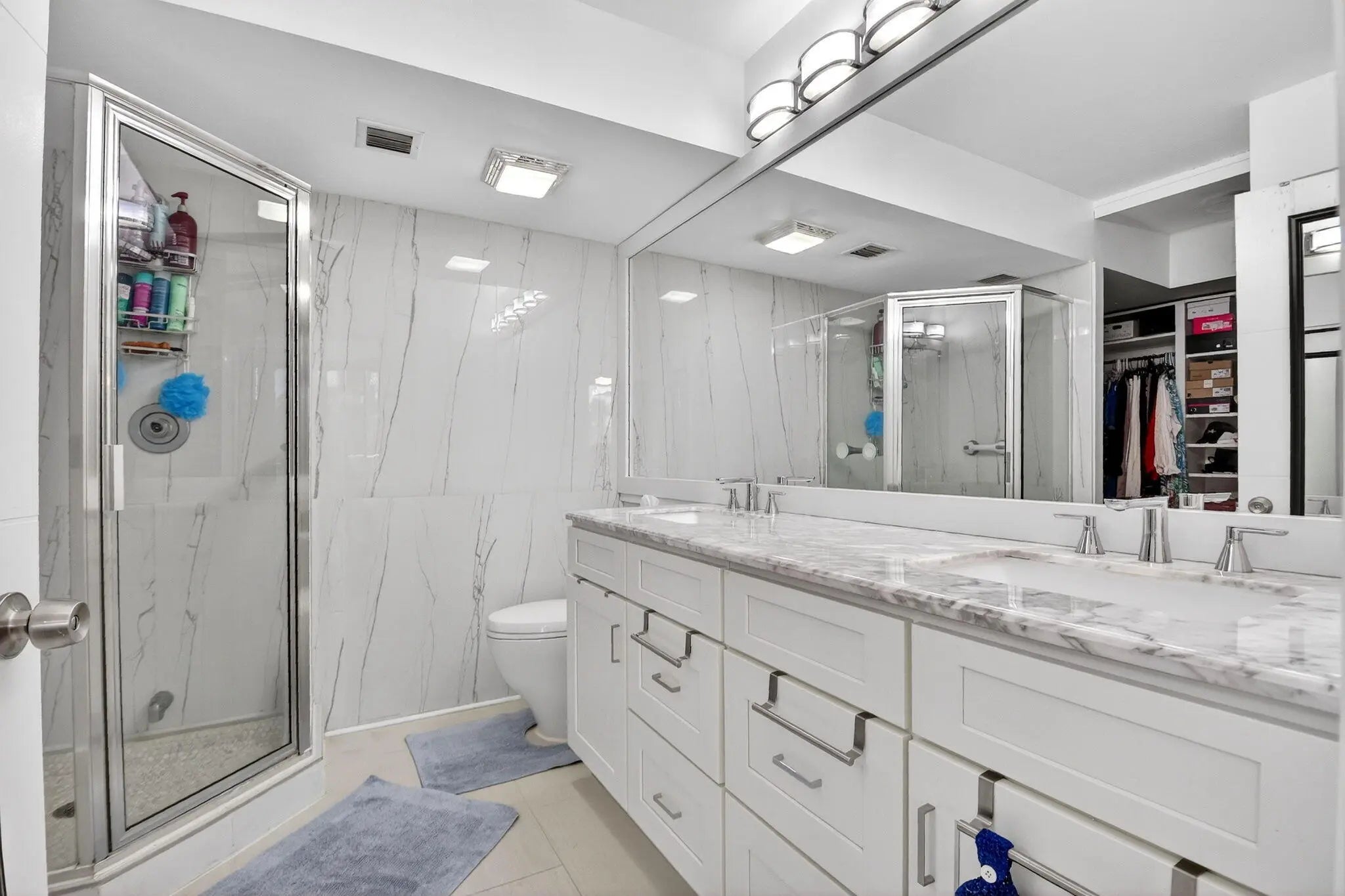 Spacious 3rd floor renovated and move in ready 2 bedroom, 2 bath condo overlooking the Whitehall community pool. Long balcony with 2 entrances, new HVAC, luxury vinyl plank flooring, neutral colors, modern, updated kitchen with white shaker style cabinets and stainless steel appliances. With 1437 sq ft of living space, there is an extra large dedicated laundry room, part of which can be used as extra storage or an office space. Central location, close to shopping, restaurants, I-95 and PBIA.