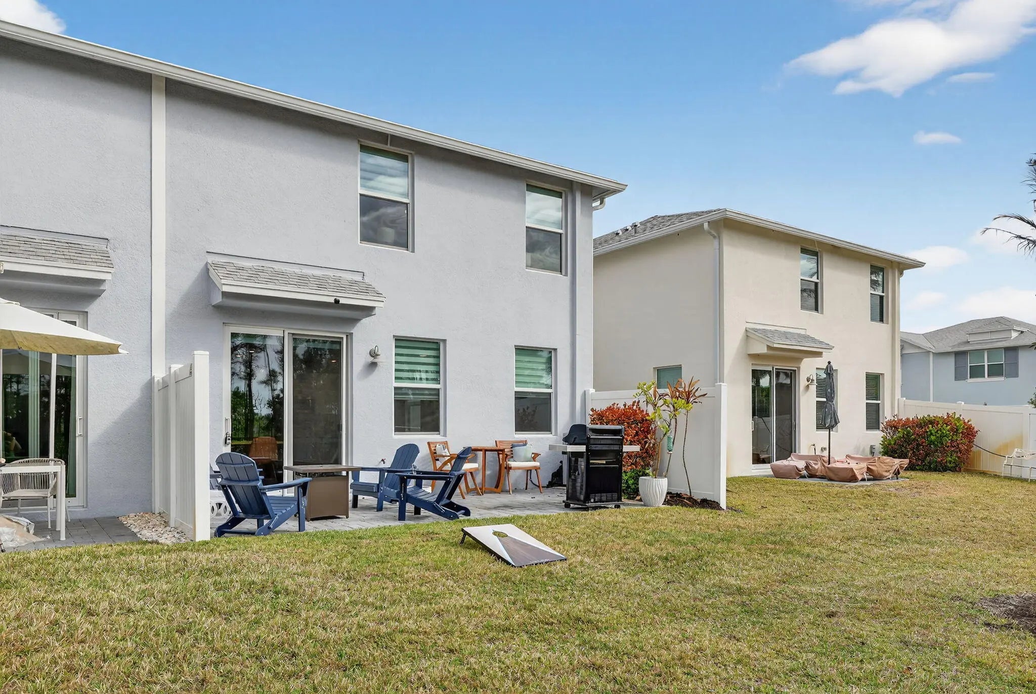 Fully furnished and backing directly to the preserve for peaceful views and added privacy, this beautifully upgraded 3BR/2.5BA townhome (built 2022) is move-in ready in gated Osprey Preserve. Bright open-concept living with stainless steel kitchen, spacious dining and living areas, and an extended paver patio with added vinyl privacy fence—perfect for relaxing or entertaining. Upstairs features three generous bedrooms including a serene primary suite with walk-in closet and spa-style bath. Universal electric vehicle charger included. Community pool, sidewalks, lawn care included. Minutes to beaches, dining, and vibrant downtown Jensen Beach.