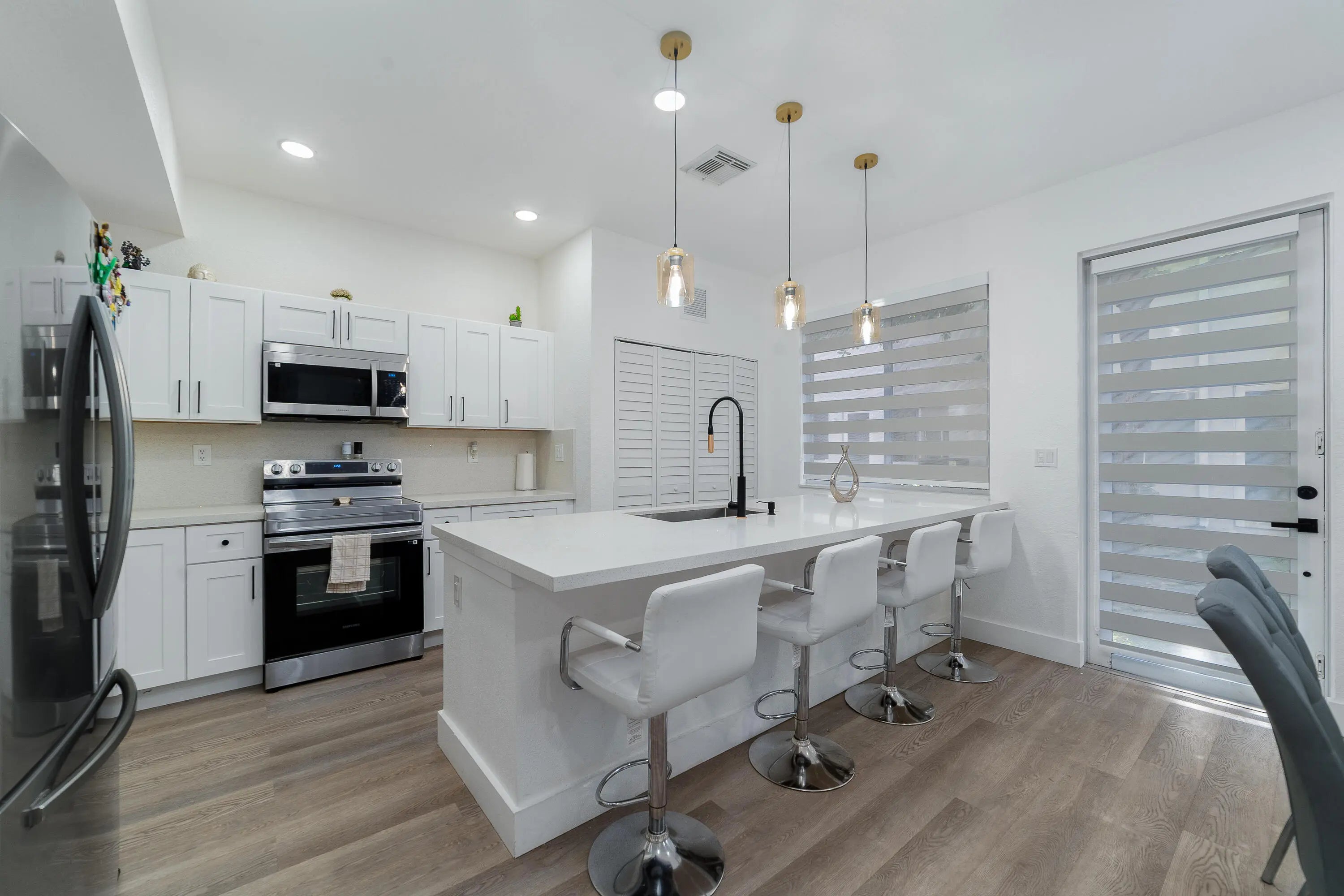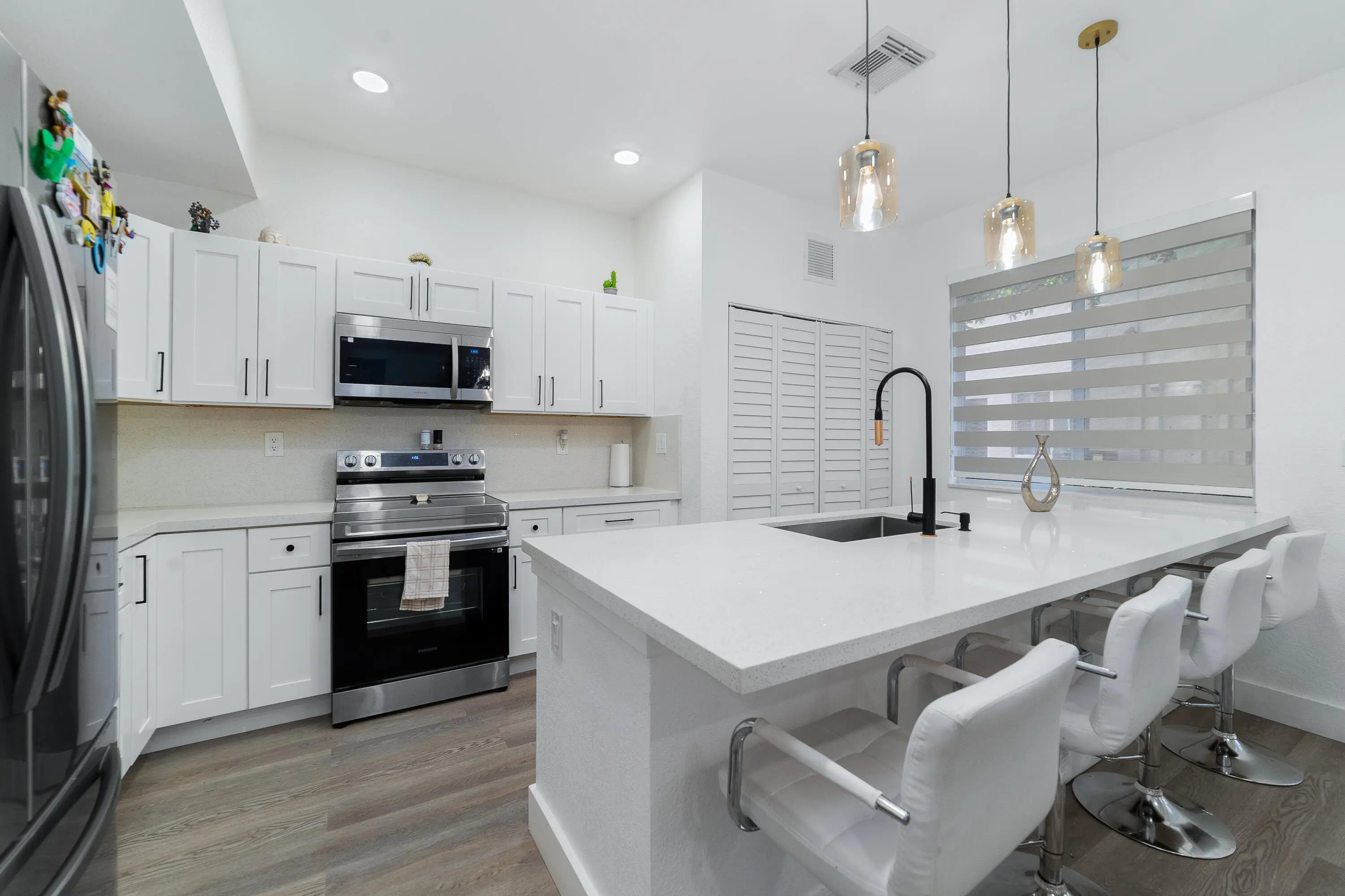 Check out this beautifully renovated two-story 4/2.5 townhouse in the peaceful, gated Majorca Isles III community in Miami Gardens. It features four bedrooms, two and a half bathrooms (with a half bath on the first floor), a one-car garage, and extra parking on a brick driveway for two cars. The kitchen is all new, with wooden cabinets, granite counters, and stainless-steel appliances. There's also a new washer and dryer. Instead of carpet, you'll find easy-to-maintain laminate floors throughout. The community offers great amenities, all for a low HOA fee. Ready to move in, this townhouse is the best deal in the neighborhood.