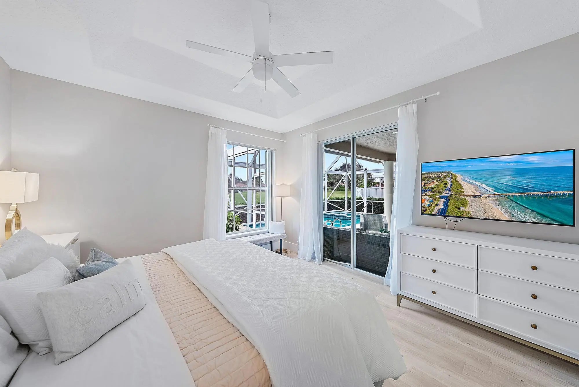 Fully furnished, designer decorated & renovated home w/PREMIER GOLF membership privileges!! This beautifully updated home offers a private enclosed Lanai w/heated pool & spa w/direct golf course views & gorgeous sunsets. Sleeps up to 10 people. 3 bedrooms, office/den area, 2.5 baths, upper lounge area w/sleep sofa, 2 car garage. Furnished outdoor patio area. Close to clubhouse, golf starter areas, tennis/gym. Includes use of golf cart! Enjoy country club living at it's best- Three 18-hole Golf Courses, 20-acre practice area, 4 restaurants, Club House, great pools, fitness ctr w salon/spa, 16 tennis & 7 pickleball courts w/24hr gated security. Offered for the full 2026-2027 season. Impeccably clean and thoughtfully maintained, this home reflects true pride of ownership.