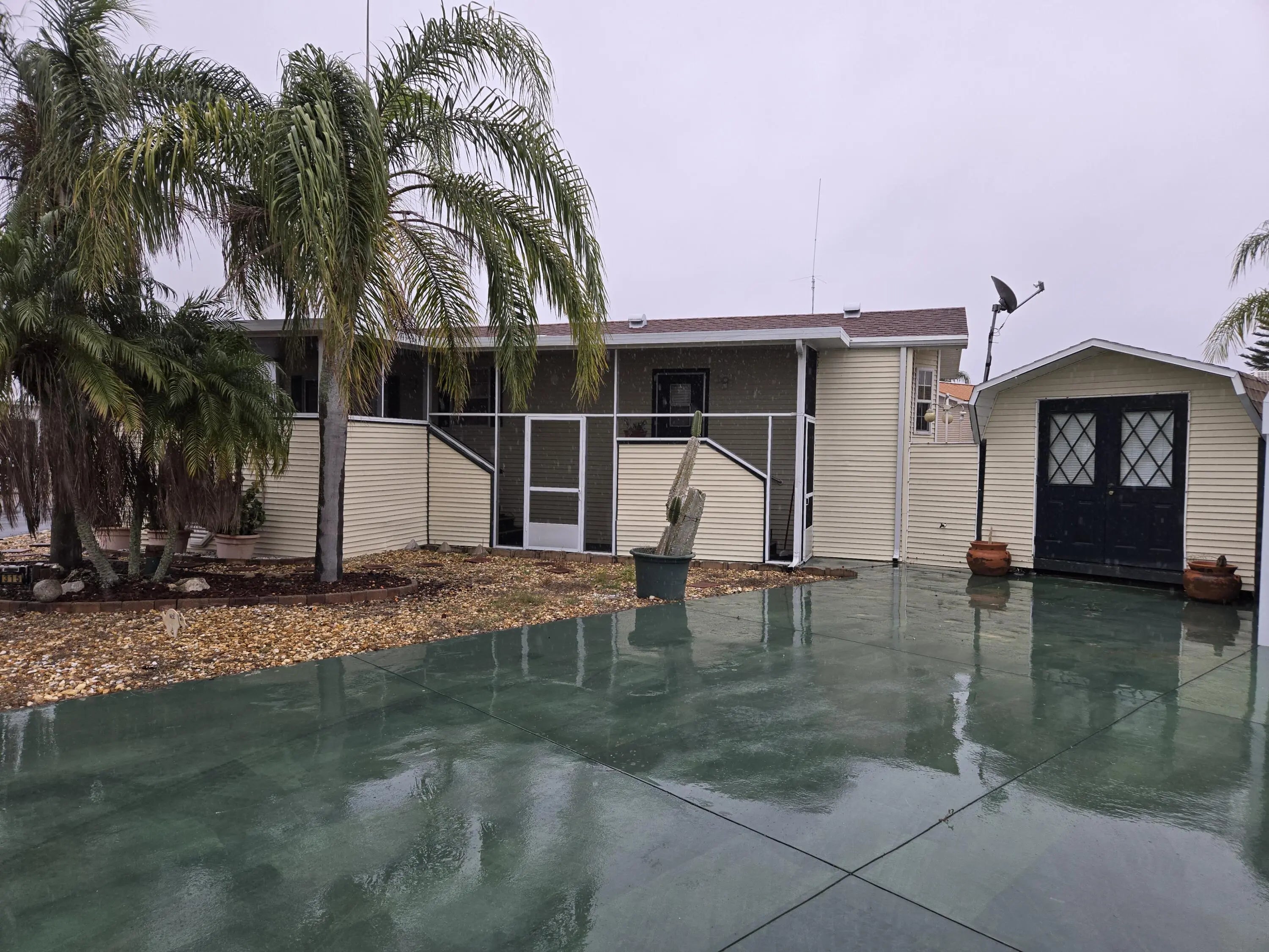 BIG O RV RESORT-55+ Community-Beautiful 2003 1 bd 1 ba Park Model w/640 living sf & 1,766 total sf; situated on 2 lots! Newer AC. Home has ceiling fans. Window Treatments on windows. Built-in cabinets provide ample storage throughout the home. The 11x12 screened porch allows for enjoying the fresh air. This double lot features a 16x10 shed with washer/dryer hookup; or a great space for workshop. A 25x12 carport is perfect for a vehicle or golf cart. Resort offers boat ramp & fish cleaning station for fishing enthusiasts. Clubhouse, Laundry, Pool, Bocce Ball & Dog-Walk are just a few of the amenities available. Community offers active lifestyle with a laid-back atmosphere. HOA includes water, sewer & Trash services. Don't miss out on what the Big O has to offer! Measure for room accuracy